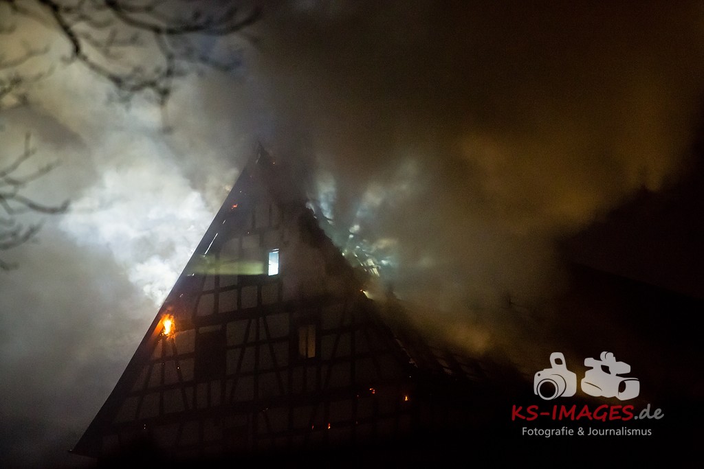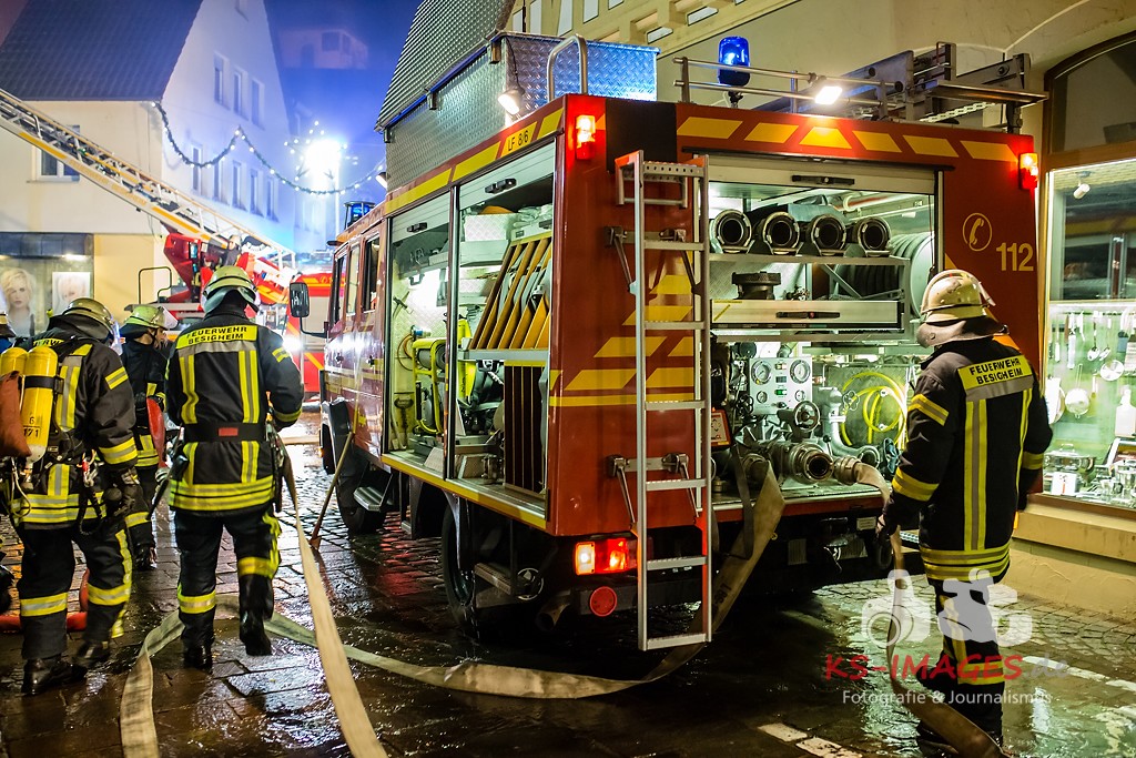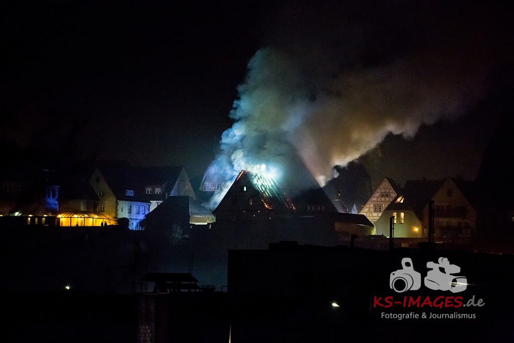 Fotostrecke: Großbrand in der Altstadt Besigheim – offener Dachstuhlbrand in einem alten Polizeiposten 31.12.2015