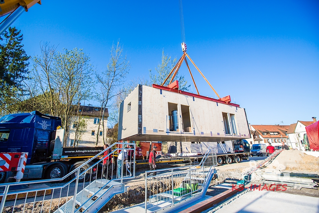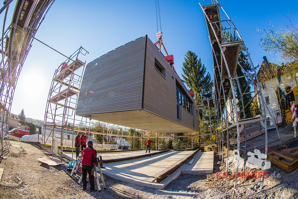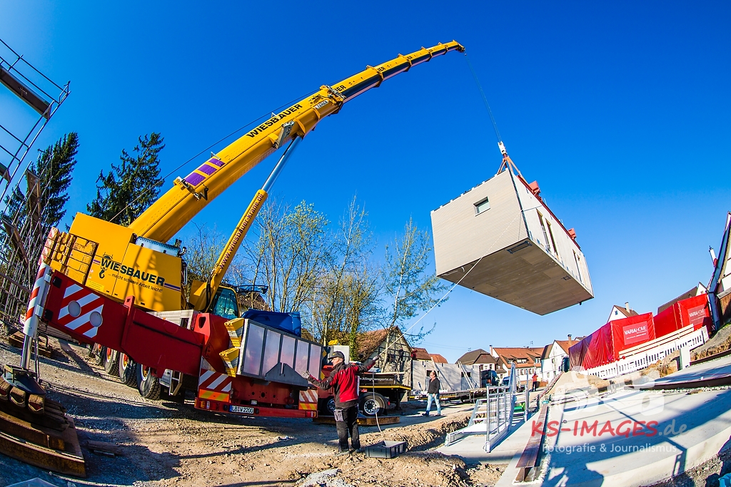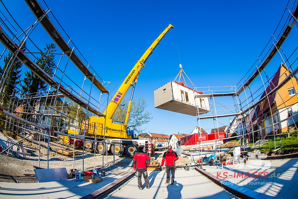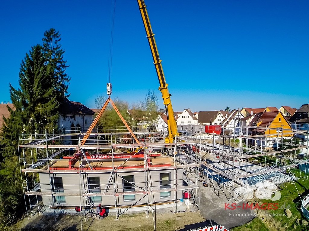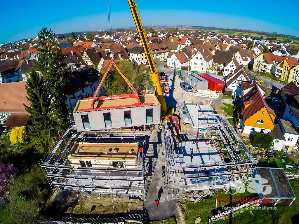 [MIT LUFTAUFNAHMEN] Fotoreportage: VariaHome Wohncontainer für Asylbewerber werden in Murr aufegaut 28.03.2017