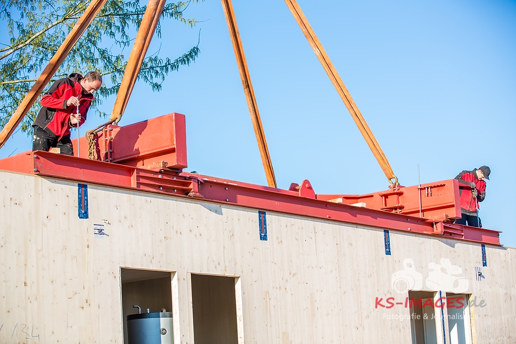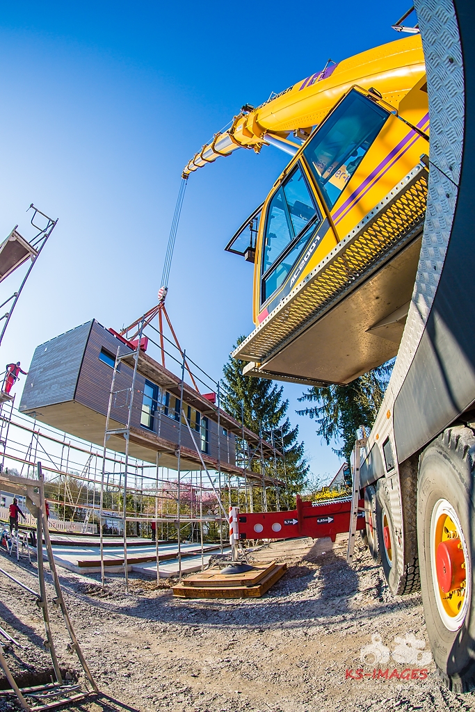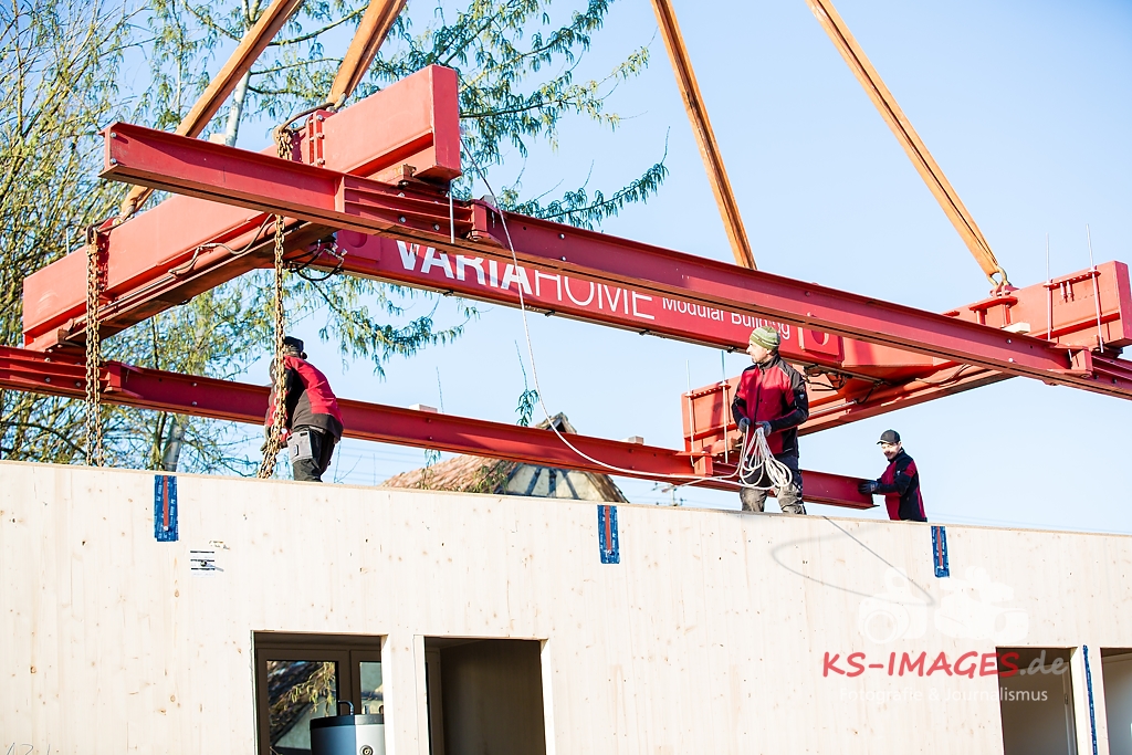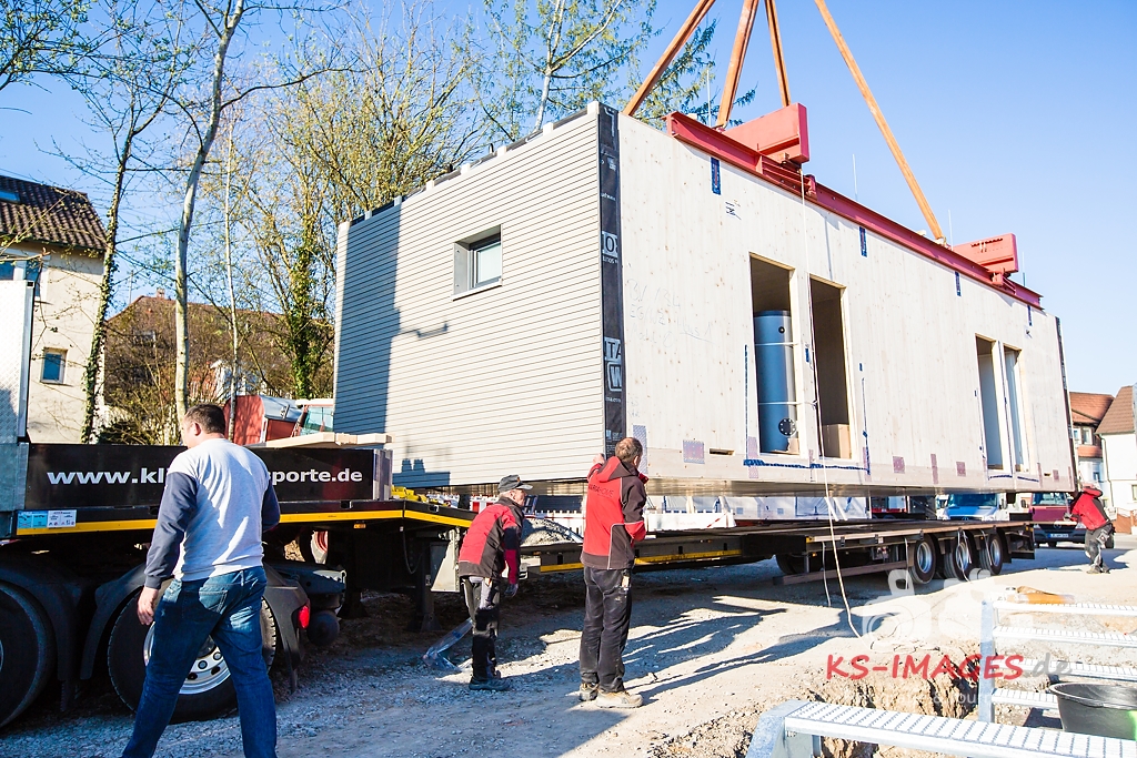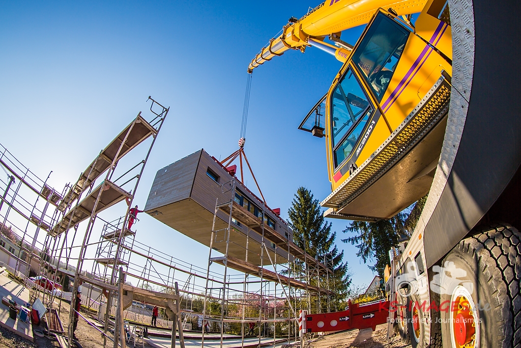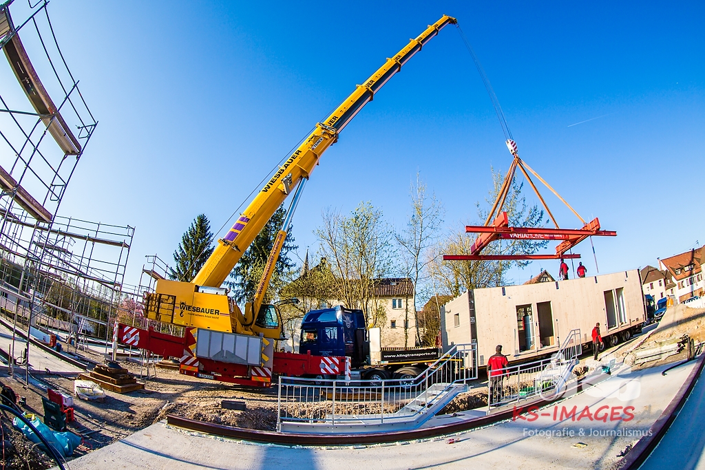 [MIT LUFTAUFNAHMEN] Fotoreportage: VariaHome Wohncontainer für Asylbewerber werden in Murr aufegaut 28.03.2017