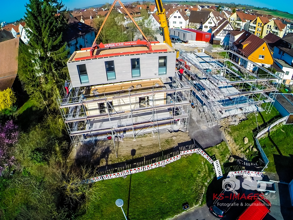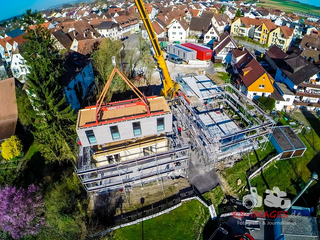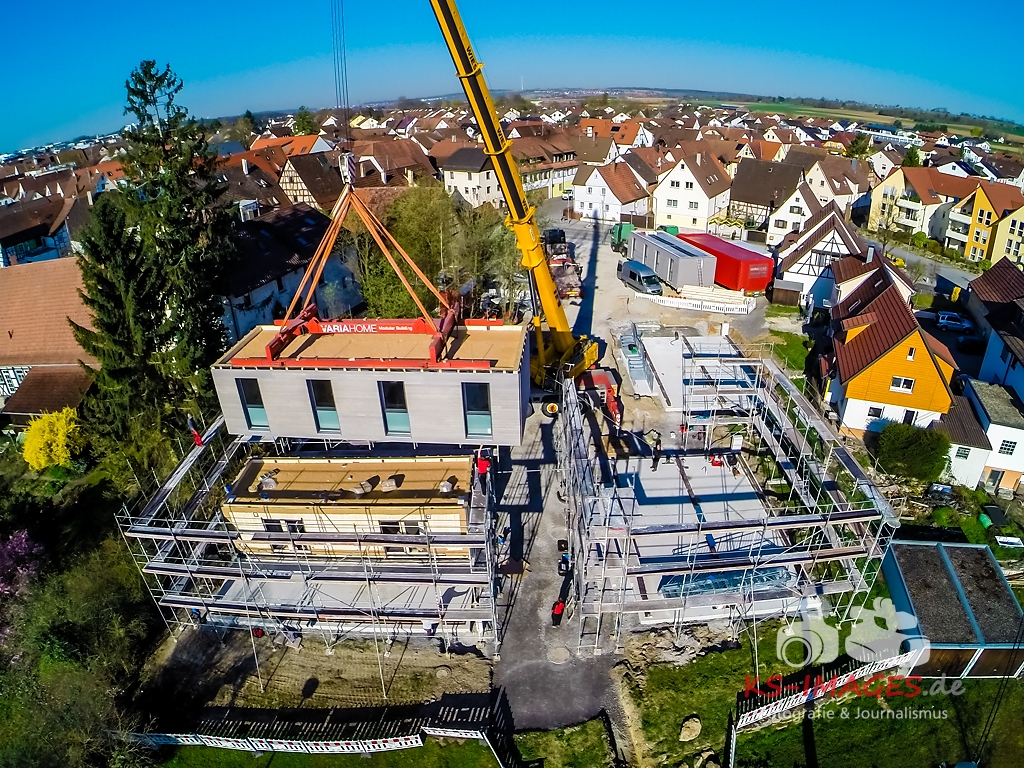 MURR: Am Morgen des 28.03.2017 wurde eine von 3 Wohnanlagen der Firma VariaHome in der Hindenburgstraße in Murr aufgebaut. Wir haben den aufbau mit Kamera und Kopter dokumentiert. Einen Bericht zu dieser Reportage finden Sie bei der Marbacher-Zeitung.