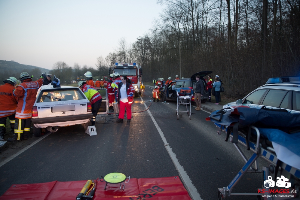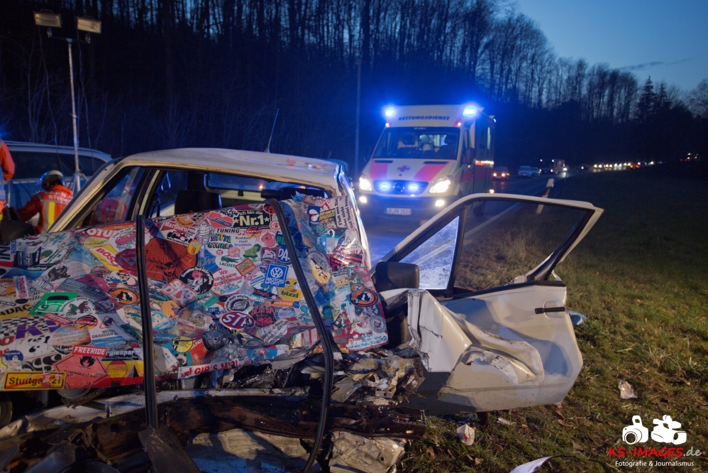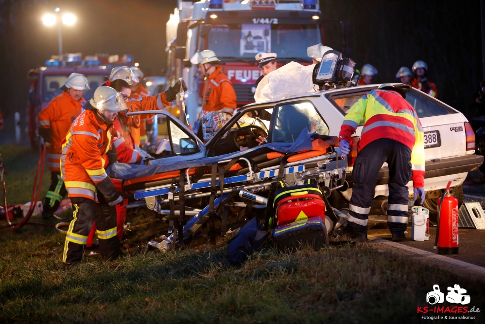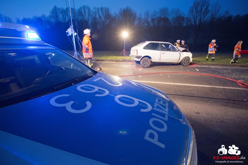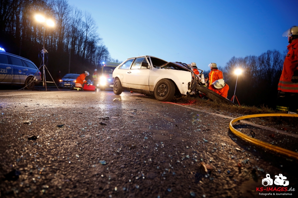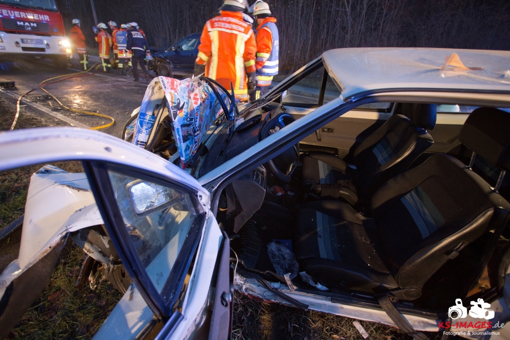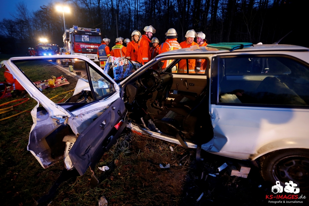 Geschwindigkeit auf feuchter Fahrbahn ins Schlingern, kam auf die Gegenfahrbahn und kollidierte dort mit einem Skoda Yeti, welcher von einer 35- jährigen gelenkt wurde. Durch den Zusammenstoß kam der Polo von der Fahrbahn nach rechts ab und kam entgegen der Fahrtrichtung im Grünstreifen zum Stehen. Der Fahrer des Polos wurde bei dem Unfall eingeklemmt und musste durch die Feuerwehr Steinheim befreit werden. Schwerverletzt wurde er mit dem Rettungsdienst in ein Krankenhaus gebracht. Die Fahrerin des Skodas wurde bei dem Unfall leicht verletzt, musste jedoch vorsorglich auch ins Krankenhaus gebracht werden. Aufgrund der Unfallaufnahme und der Bergung der Fahrzeuge, war die Landesstraße bis gegen 19.00 Uhr voll gesperrt. Der Rettungsdienst war mit zwei Fahrzeugen und einem Notarzt sowie die Feuerwehr Steinheim mit drei Fahrzeugen und 30 Mann vor Ort. Bei dem Unfall entstand ein Sachschaden in Gesamthöhe von zirka 18.000 Euro.