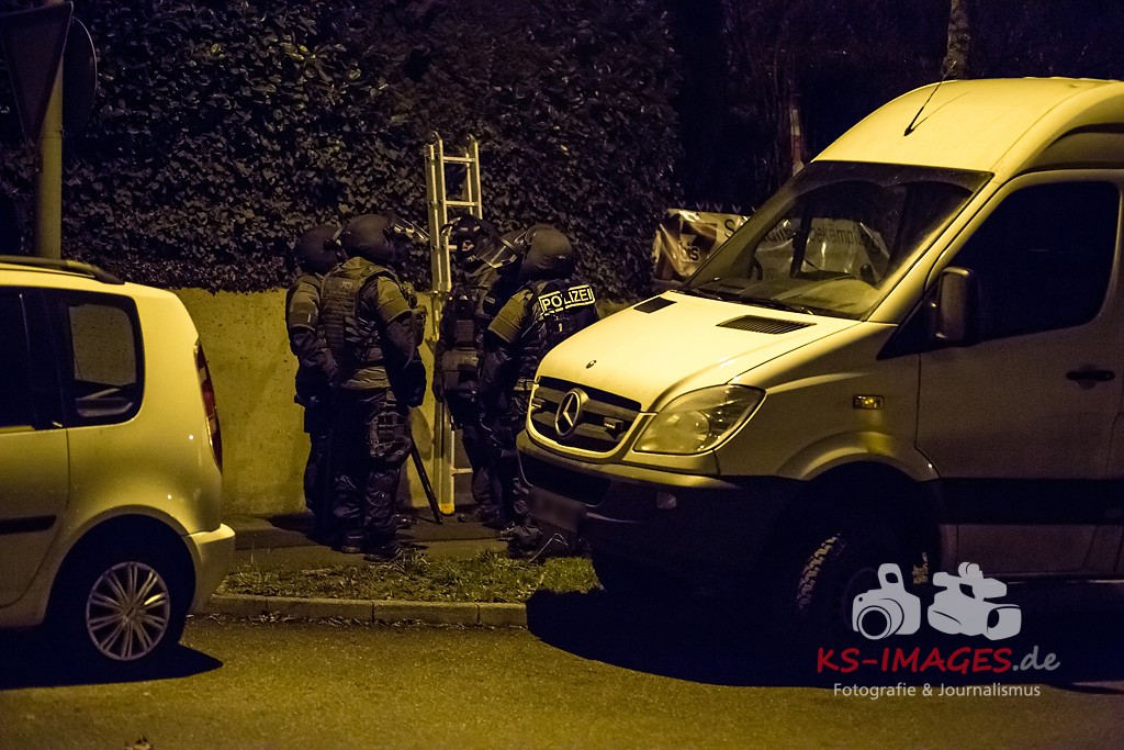 KORNWESTHEIM: Ein maskierter und mit einer Schutzweste bekleideter Mann löste am Freitagabend einen größeren Polizeieinsatz aus. Der 19-Jährige wurde gegen 21:15 Uhr von einem Nachbarn dabei beobachtet, wie er in seiner Kornwestheimer Wohnung mit einer Langwaffe hantierte. Während mehrere Streifenwagenbesatzungen den Bereich des Wohnhauses zunächst abgesperrt hatten, wurden zur Überprüfung der Wohnung Spezialkräfte eines Einsatzkommandos hinzugezogen. Kurz vor Mitternacht gelang es den Einsatzkräften schließlich Kontakt mit dem 19-Jährigen aufzunehmen, woraufhin er vor dem Haus widerstandslos festgenommen werden konnte. Bei der anschließenden Durchsuchung wurden in der Wohnung mehrere Softairwaffen aufgefunden. Eine tatsächliche Gefährdung Dritter bestand zu keiner Zeit, weshalb die vorläufige Festnahme des 19-Jährigen nach Beendigung der polizeilichen Maßnahmen wieder aufgehoben wurde.