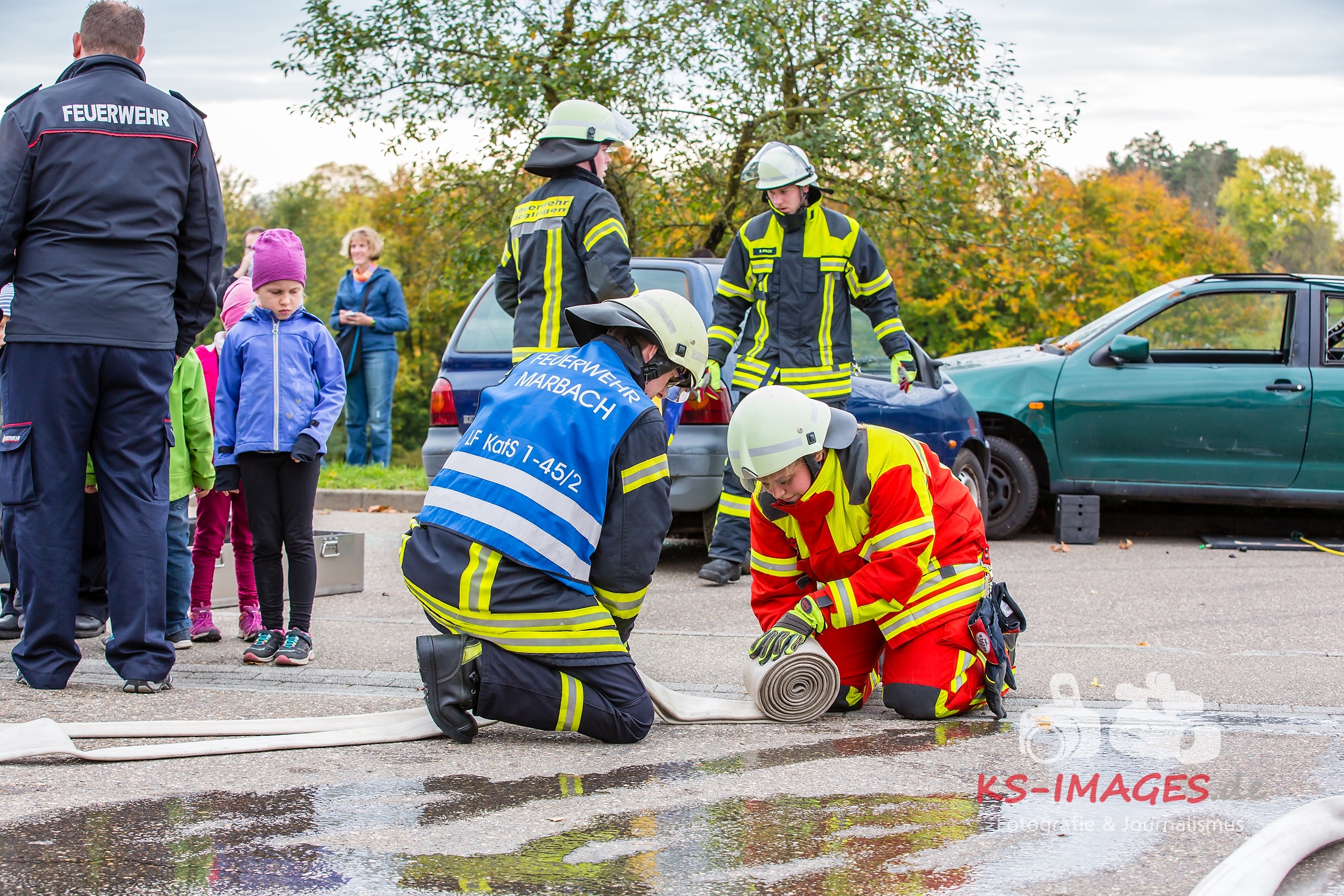 MARBACH: Am Samstag den 21.10.2017, fand die praktische Abschlussübung der Grundausbildung im Übungshof der Feuerwache Marbach statt. Die Teilnehmer aus Affalterbach, Benningen, Erdmannhausen, Kornwestheim, Pleidelsheim, Murr, Marbach und von BorgWarner zeigten ihr erworbenes Wissen in einem Lösch- und Hilfeleistungseinsatz. Wir gratulieren allen Lehrgangsteilnehmern zum erfolgreichen Abschluss und hoffen, dass die neuen Feuerwehrkameraden stets gesund von den Einsätzen zurück kommen.