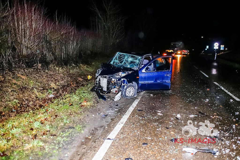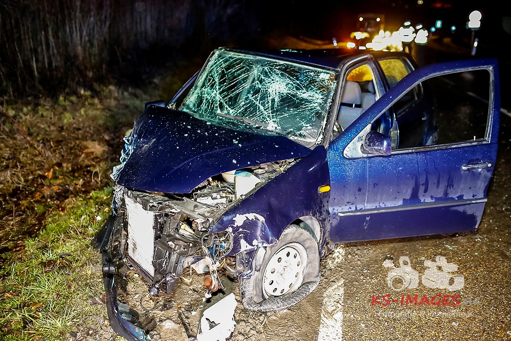 Fotostrecke: Alkoholcrash – 29-jähriger kracht frontal alkoholisiert in den Gegenverkehr – Verursacher schwer verletzt L1138 Freiberg höhe Monrepos 04.02.2016