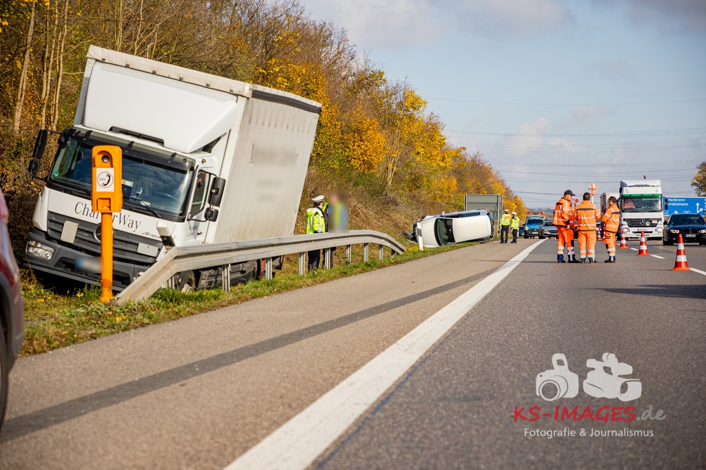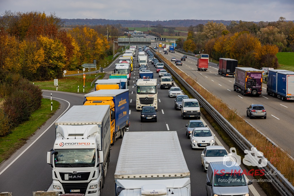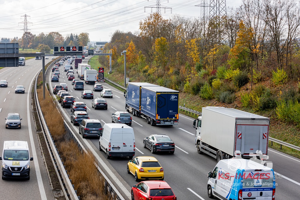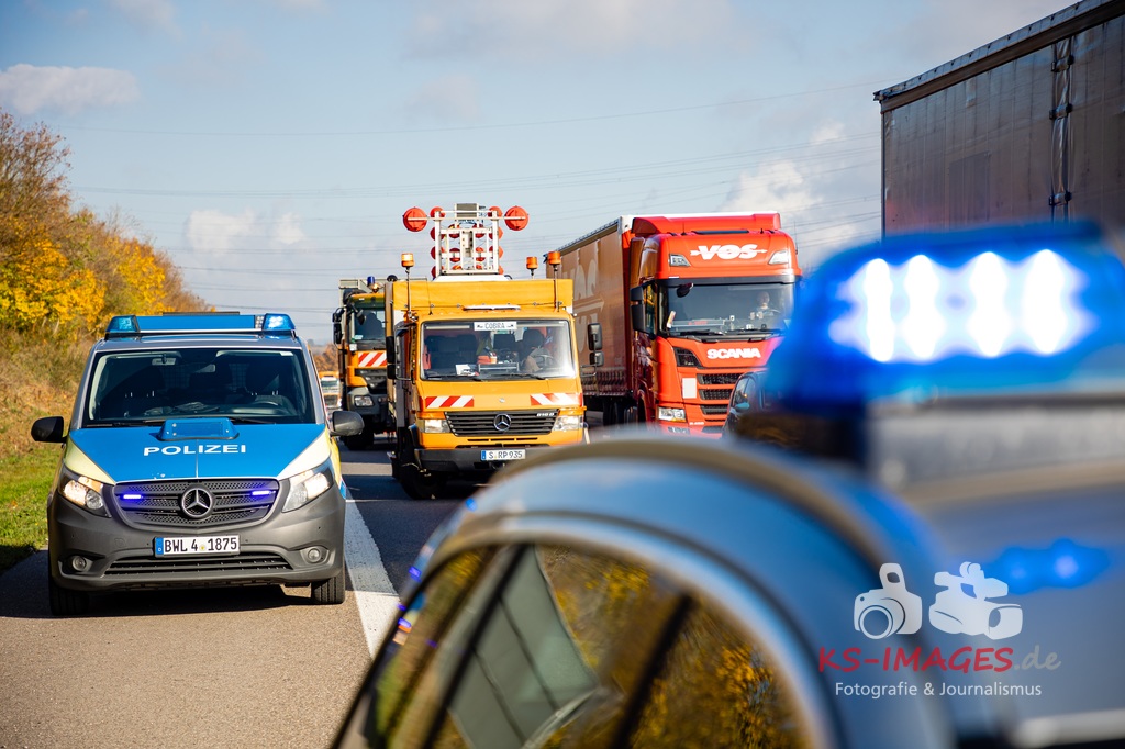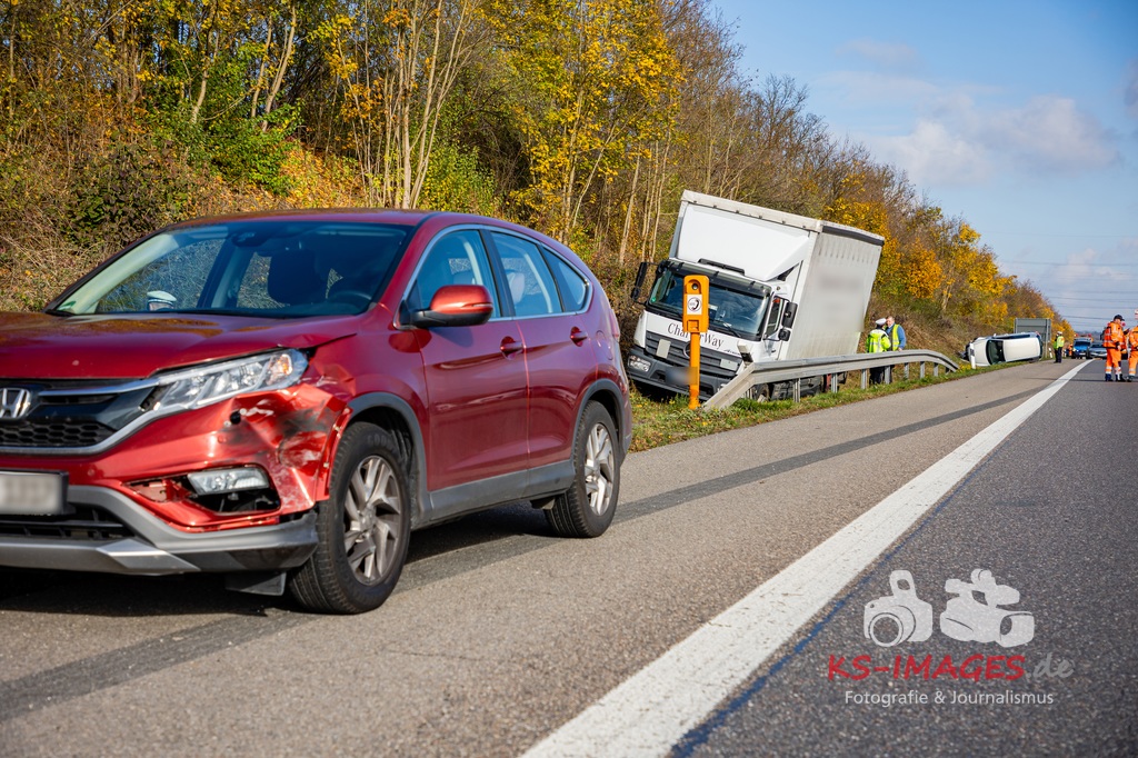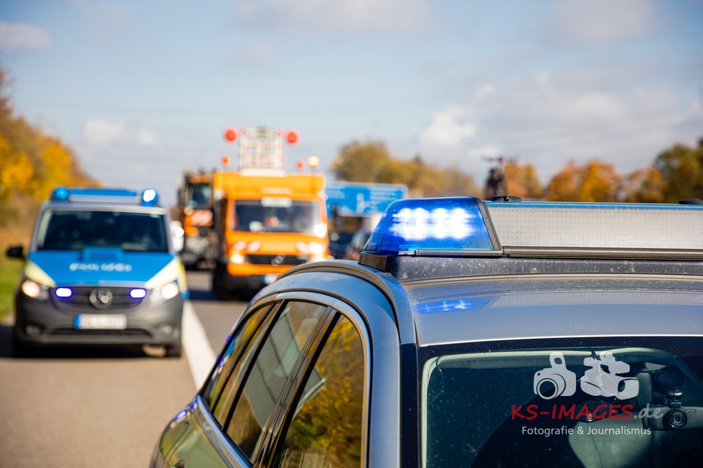 Fotostrecke: BAB 81/Freiberg am Neckar: Unfall zwischen zwei PKW sowie einem LKW führt zu Fahrbahnsperrung 08.11.2021