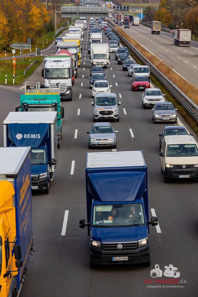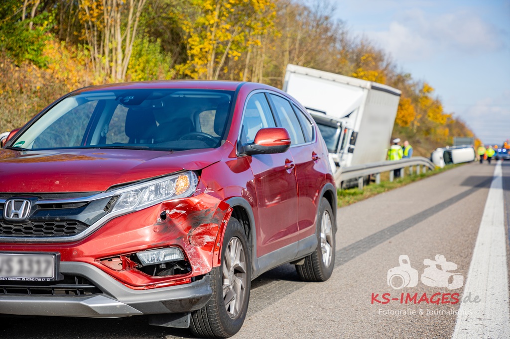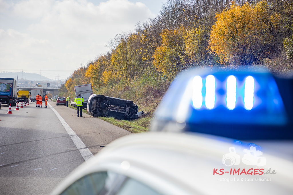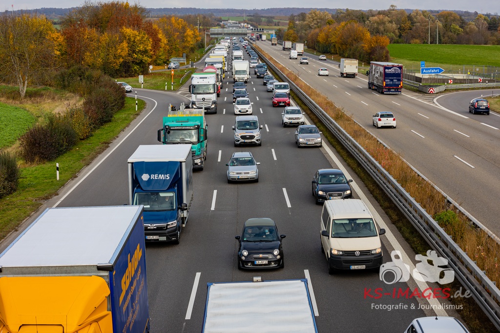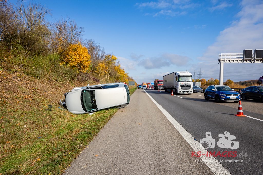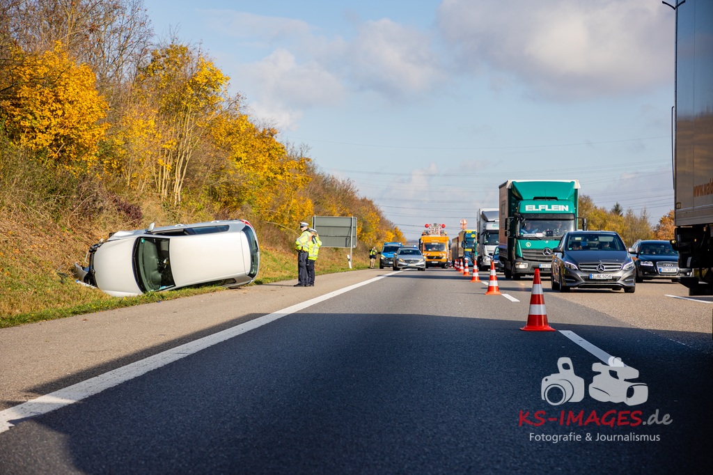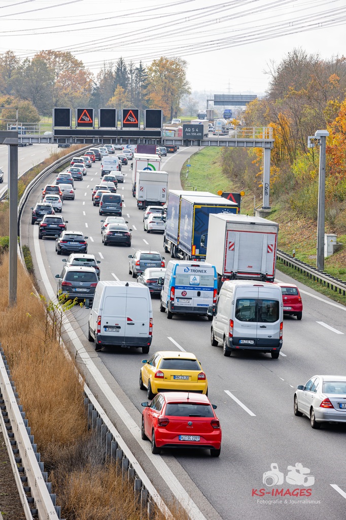 Fotostrecke: BAB 81/Freiberg am Neckar: Unfall zwischen zwei PKW sowie einem LKW führt zu Fahrbahnsperrung 08.11.2021