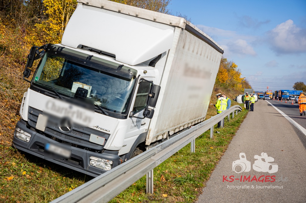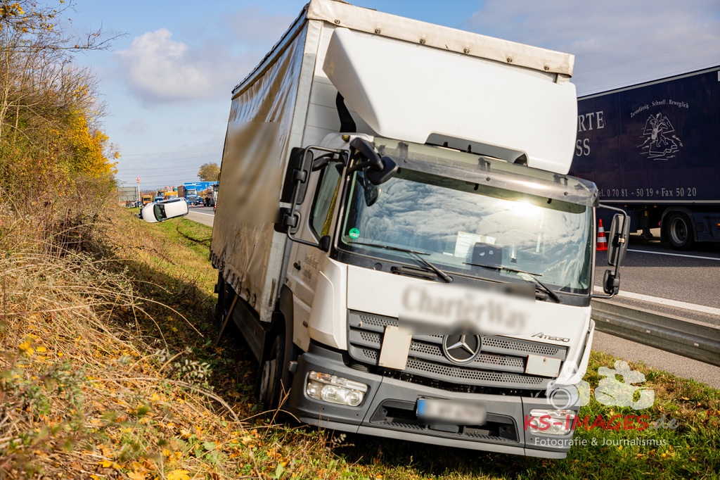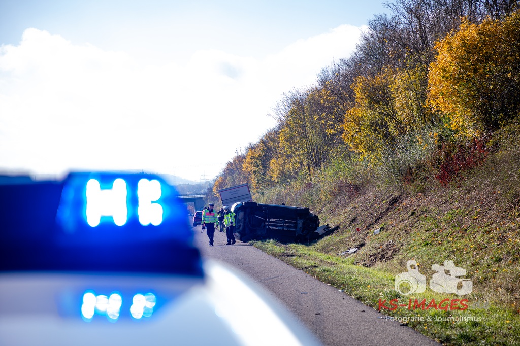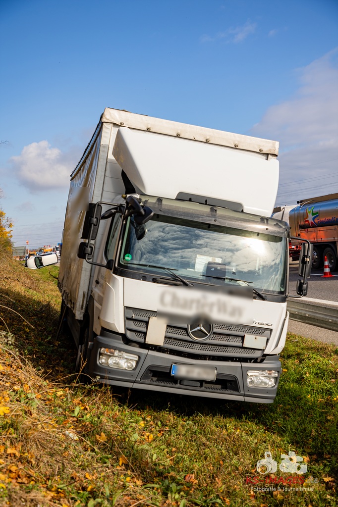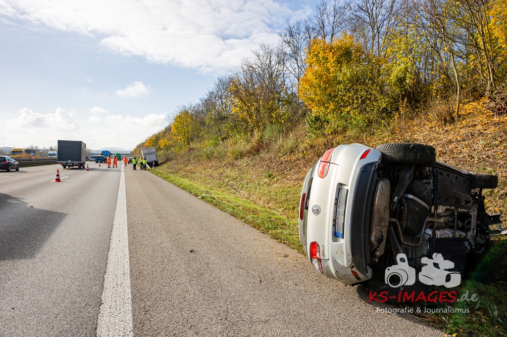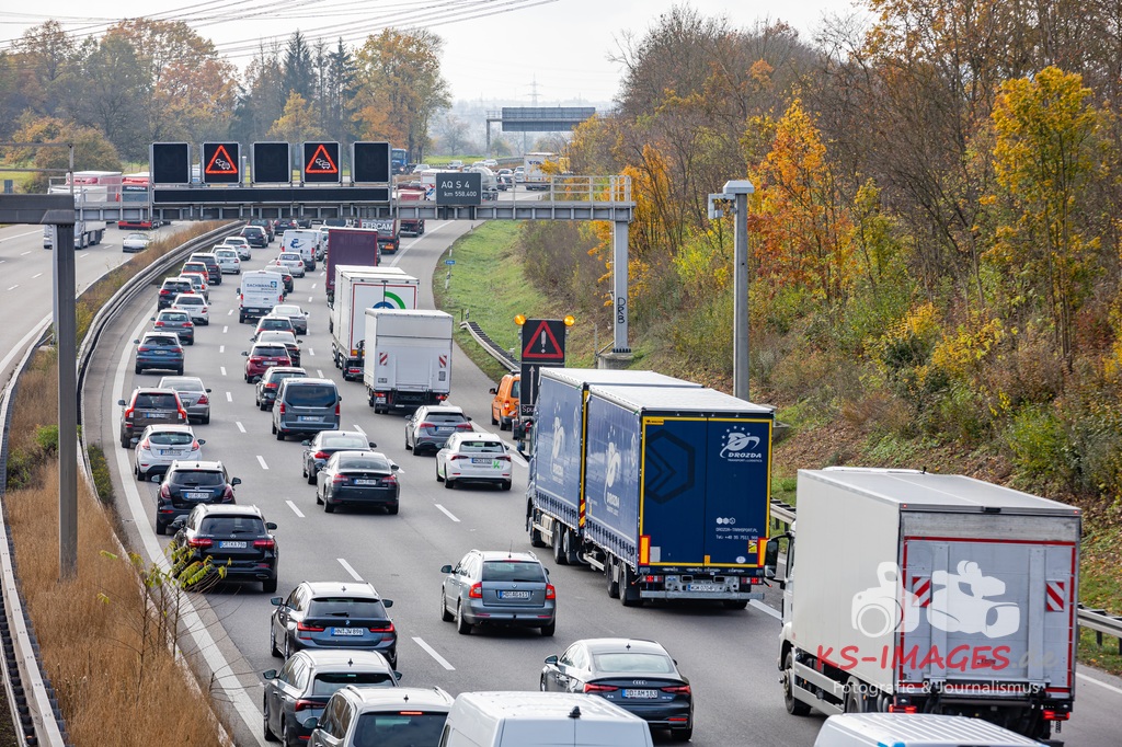 Fotostrecke: BAB 81/Freiberg am Neckar: Unfall zwischen zwei PKW sowie einem LKW führt zu Fahrbahnsperrung 08.11.2021