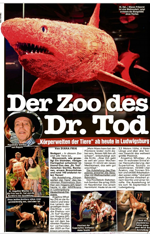 Heute ist es soweit! Am 19. Juni startet Gunther von Hagens’ neue Erlebnisausstellung KOERPERWELTEN der Tiere, die unvergessliche Einblicke in das faszinierende Innenleben von Tieren aus aller Welt gewährt. Drei Monate lang werden auf rund 1.000 Quadratmetern mehr als 100 tierische Exponate zu bestaunen sein, darunter das weltweit größte Plastinat eines Elefanten sowie zahlreiche weitere Giganten aus Steppe, Urwald & Ozean, haltbar gemacht durch die Technik der Plastination. Die Ausstellung führt auf eine anatomische Safari der besonderen Art: Von Kaninchen zu Krake, Ente zu Elefant, Hund zu Hai – nicht nur exotische Highlights sondern auch Tiere aus heimischen Gefilden begeistern kleine wie große Tierforscher.
