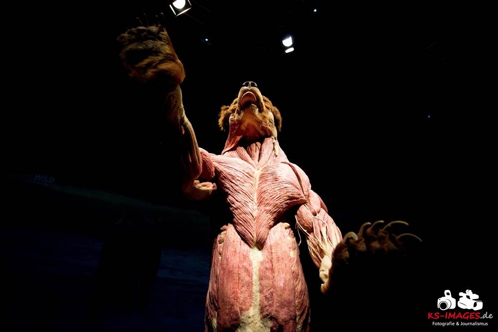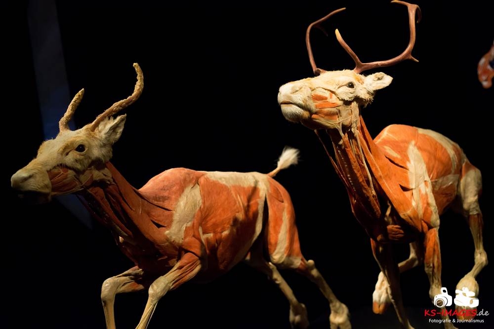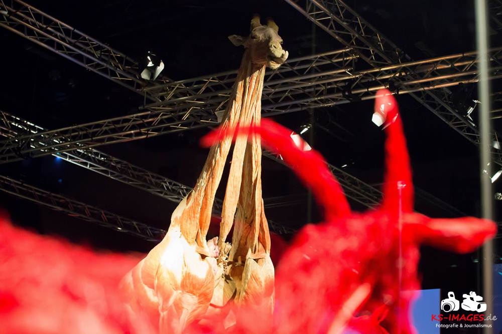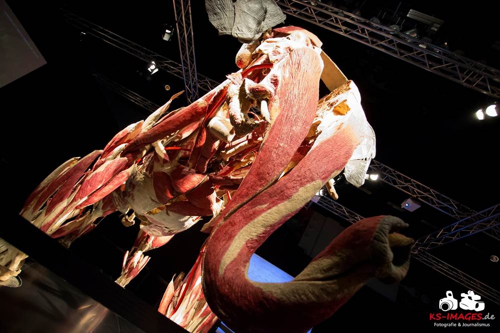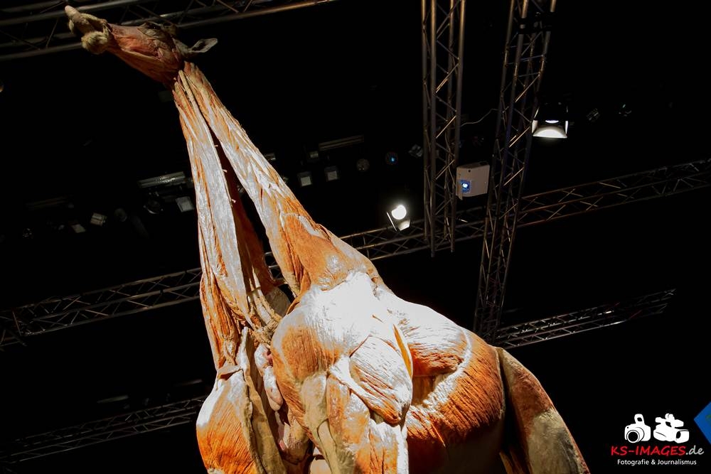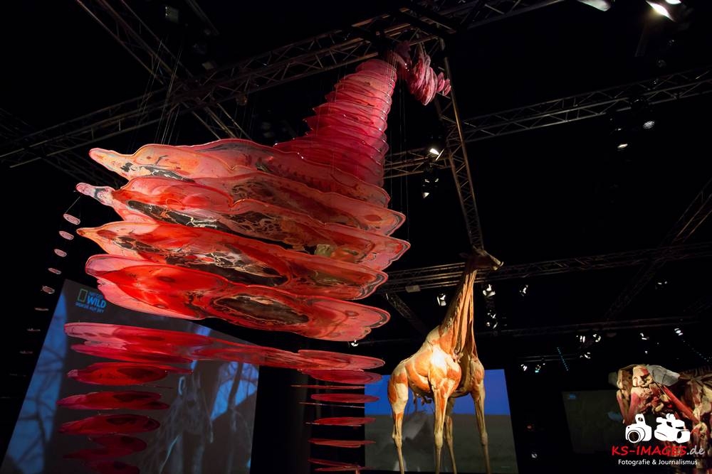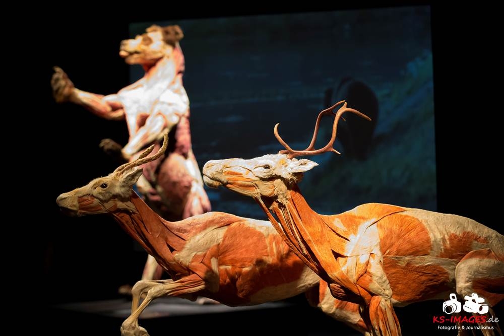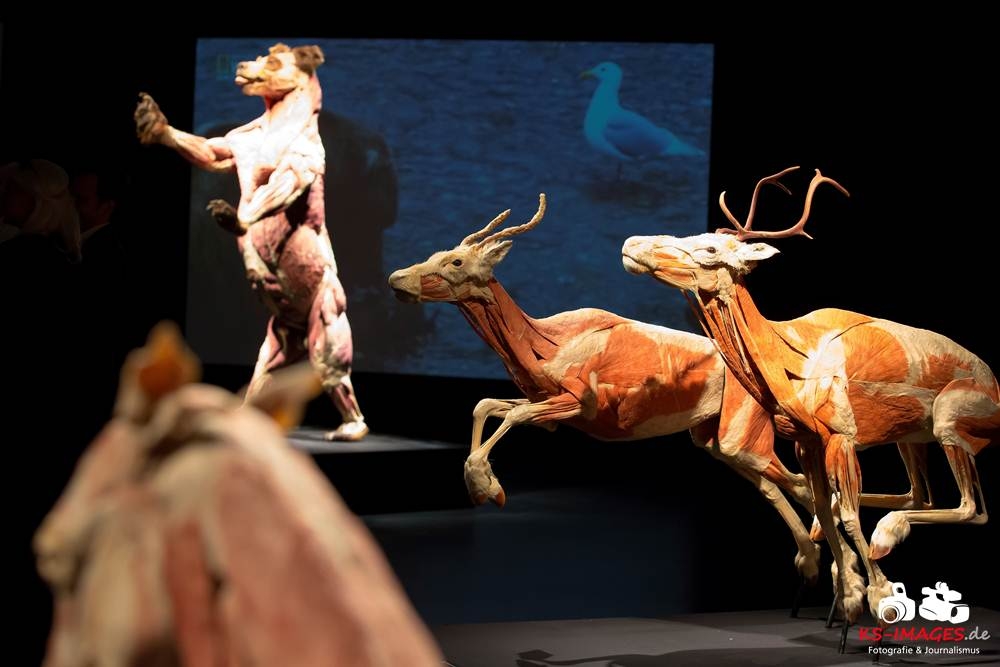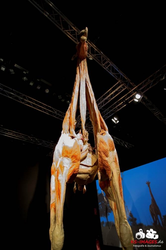 Anschaulicher und detailgetreuer als jedes Fachbuch enthüllen die KOERPERWELTEN der Tiere, was sich unter Haut, Fell und Federn der Tiere tatsächlich verbirgt: vom Knochenbau über Muskulatur und Nervensystem bis zu den Organen. Dazu gibt es spannende Informationen zu Lebensräumen, Verhaltensweisen, Essgewohnheiten und Fortpflanzung der Tiere sowie anatomische Besonderheiten der Natur: der lange Hals der Giraffe, der ¬– wie der Mensch – nur sieben Halswirbel besitzt oder der Elefantenrüssel mit seinen unglaublichen 40.000 Muskeln. Auch die vielen großen und kleinen Gemeinsamkeiten im Vergleich zum menschlichen Körper werden in der Ausstellung anschaulich thematisiert. Perfekt ergänzt werden Gunther von Hagens’ tierische Plastinate durch atemberaubende Tierfilmaufnahmen von NAT GEO WILD. Der Wildlife-Sender von National Geographic zeigt die Exponate in ihrem natürlichen Habitat: findige Braunbären beim Fischfang, hungrige Elefantenherden auf ihren kilometerlangen Wanderungen auf der Suche nach Nahrung und Wasser, Giraffen bei ihrer Lieblingsbeschäftigung – dem Grasen in schwindelerregenden Höhen! Jedes Tier besitzt unverwechselbare Eigenschaften und Fähigkeiten, die es zu einzigartigen Lebewesen auf unserem Planeten machen – wie den Menschen auch.