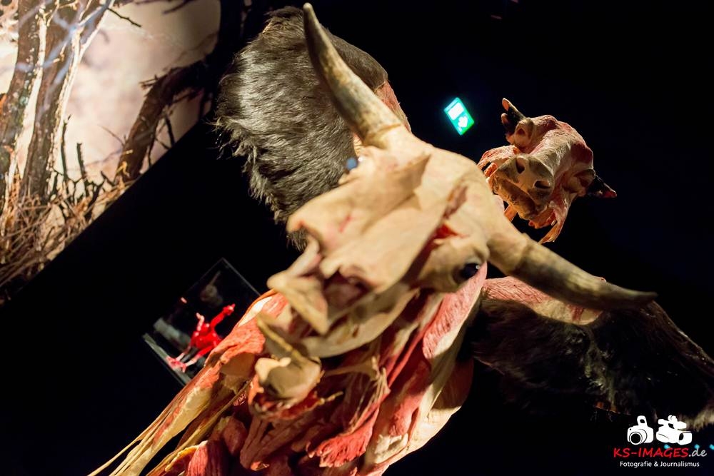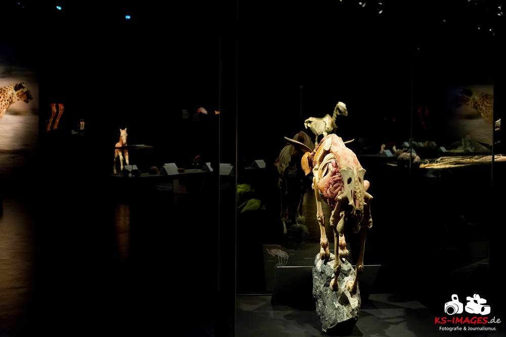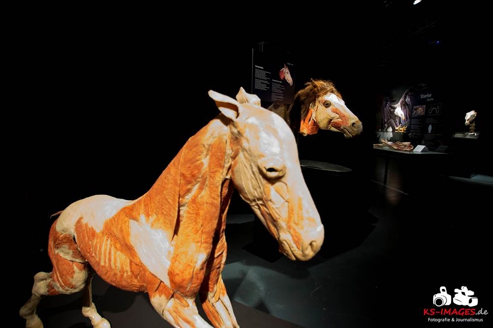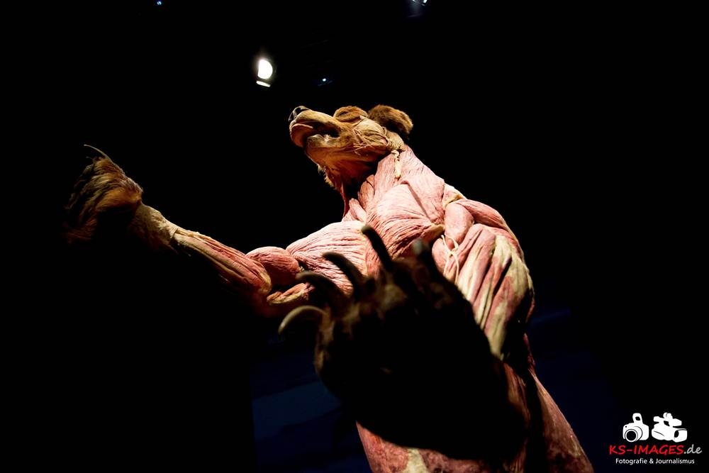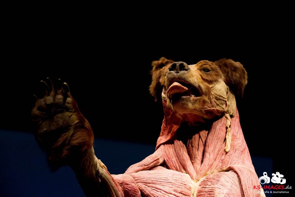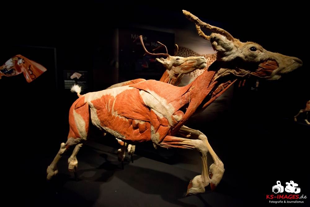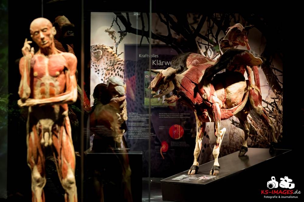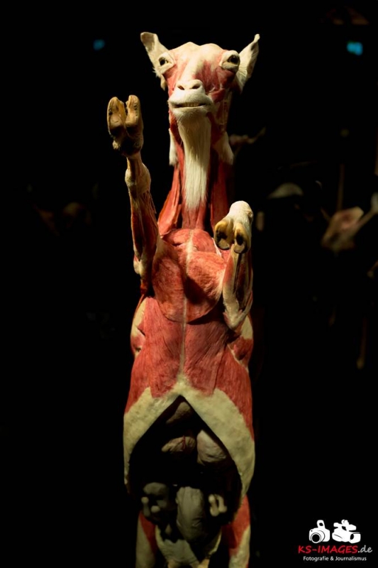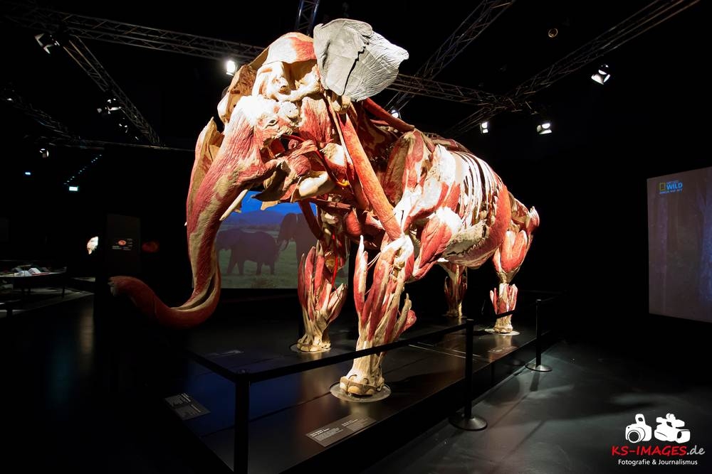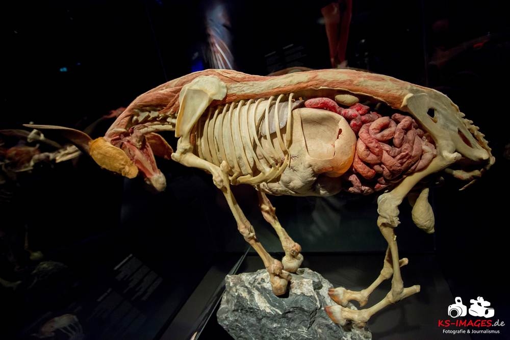 Anschaulicher und detailgetreuer als jedes Fachbuch enthüllen die KOERPERWELTEN der Tiere, was sich unter Haut, Fell und Federn der Tiere tatsächlich verbirgt: vom Knochenbau über Muskulatur und Nervensystem bis zu den Organen. Dazu gibt es spannende Informationen zu Lebensräumen, Verhaltensweisen, Essgewohnheiten und Fortpflanzung der Tiere sowie anatomische Besonderheiten der Natur: der lange Hals der Giraffe, der ¬– wie der Mensch – nur sieben Halswirbel besitzt oder der Elefantenrüssel mit seinen unglaublichen 40.000 Muskeln. Auch die vielen großen und kleinen Gemeinsamkeiten im Vergleich zum menschlichen Körper werden in der Ausstellung anschaulich thematisiert. Perfekt ergänzt werden Gunther von Hagens’ tierische Plastinate durch atemberaubende Tierfilmaufnahmen von NAT GEO WILD. Der Wildlife-Sender von National Geographic zeigt die Exponate in ihrem natürlichen Habitat: findige Braunbären beim Fischfang, hungrige Elefantenherden auf ihren kilometerlangen Wanderungen auf der Suche nach Nahrung und Wasser, Giraffen bei ihrer Lieblingsbeschäftigung – dem Grasen in schwindelerregenden Höhen! Jedes Tier besitzt unverwechselbare Eigenschaften und Fähigkeiten, die es zu einzigartigen Lebewesen auf unserem Planeten machen – wie den Menschen auch.