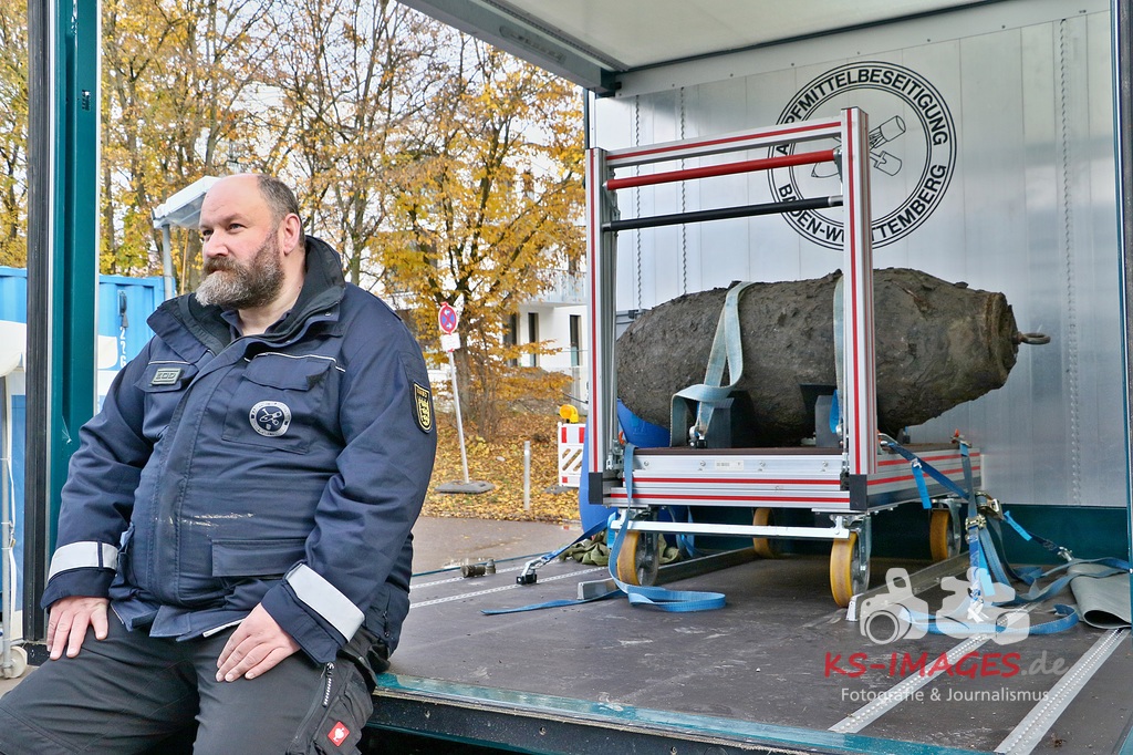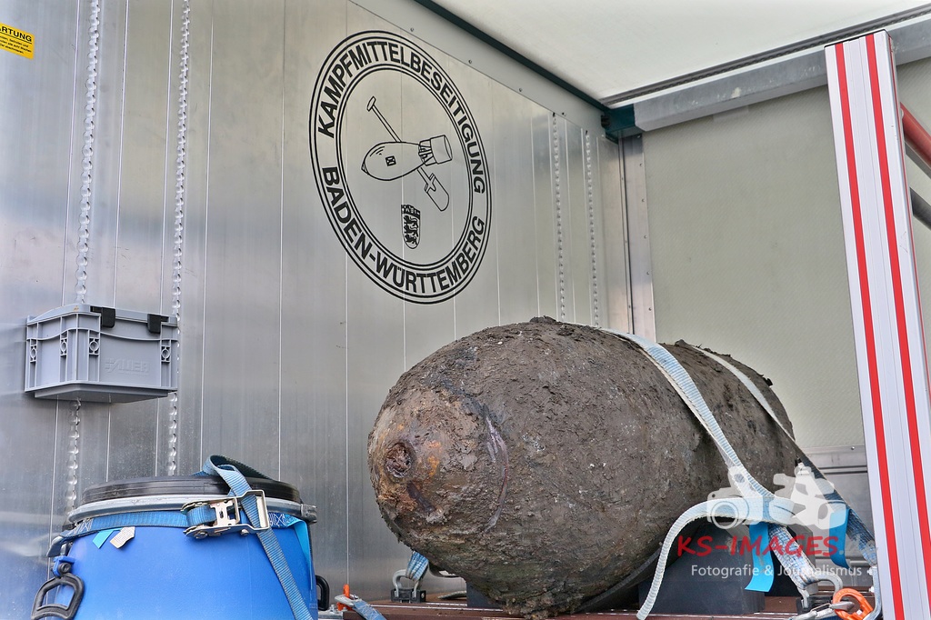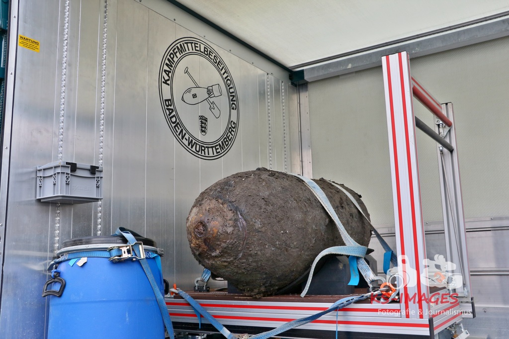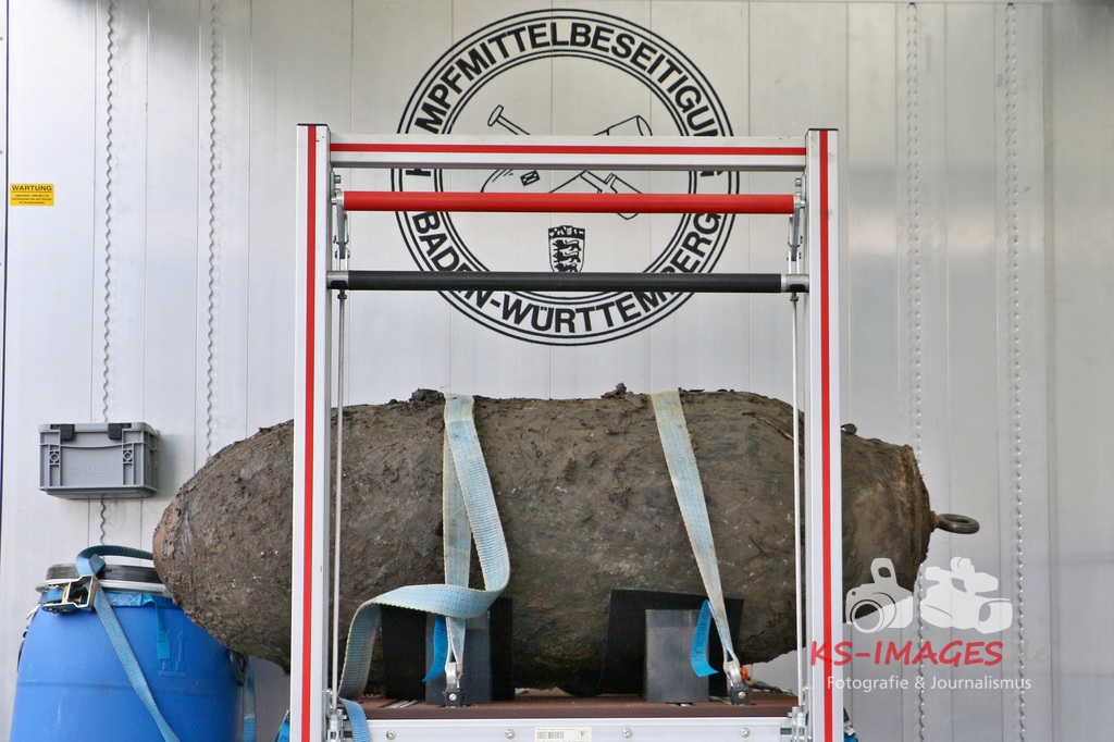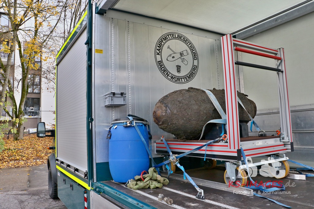 Die in der Stuppacher Straße aufgefundene Fliegerbombe (siehe unsere vorangegangene Pressemitteilung) ist am Freitag (05.11.2021) gegen 13.00 Uhr entschärft worden. Nach der erfolgreichen Entschärfung des Sprengkörpers durch den Kampfmittelbeseitigungsdienst im Regierungspräsidium Stuttgart wurden alle Sperrungen aufgehoben. Die Menschen können nun wieder in ihre Wohnungen beziehungsweise an ihren Arbeitsplatz zurückkehren. Insgesamt waren rund 5.000 Menschen ab 06.00 Uhr morgens aufgefordert worden, den Sicherheitsbereich im Radius von 500 Metern um den Fundort zu verlassen. Zahlreiche hilfsbedürftige Personen mussten mit Fahrzeugen aus dem Sicherheitsbereich gebracht werden. Die Evakuierungs- und Rettungsmaßnahmen waren gegen 12.45 Uhr abgeschlossen. Wie bereits berichtet, soll es sich um eine 500-Kilo-Fliegerbombe aus dem Zweiten Weltkrieg handeln, die am Mittwoch auf einer Baustelle von Arbeitern entdeckt worden war. (Fotos: Andreas Rometsch)