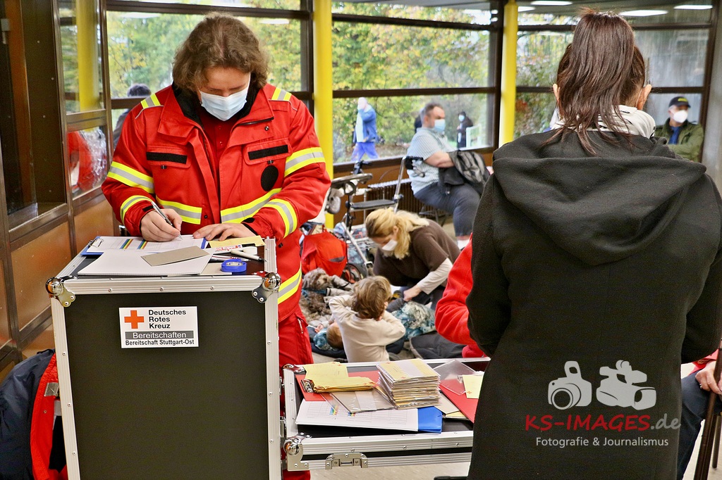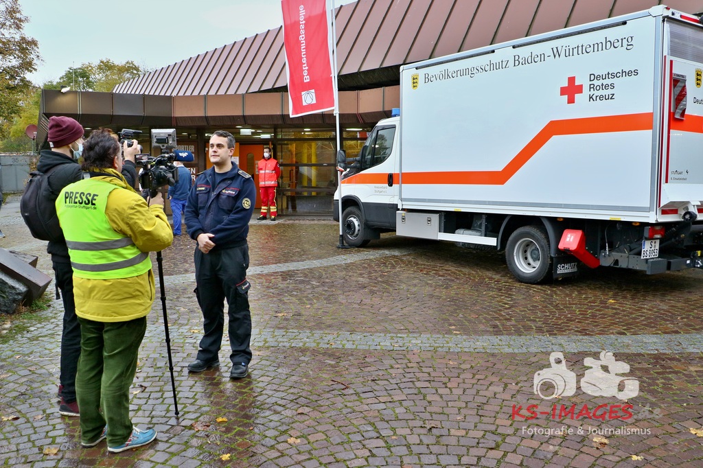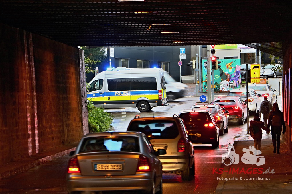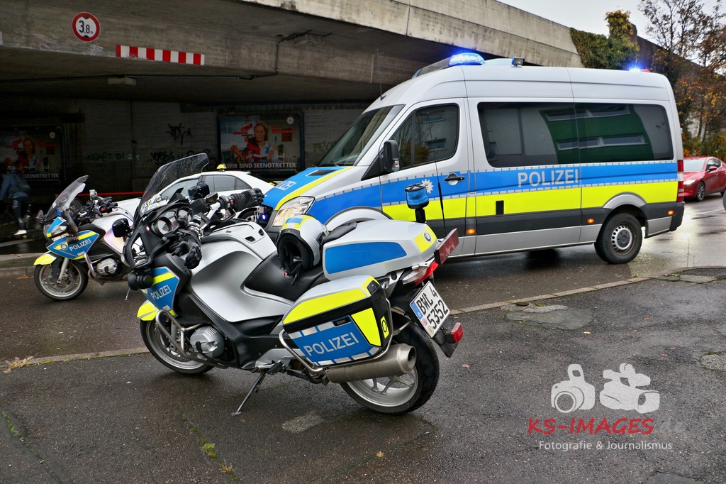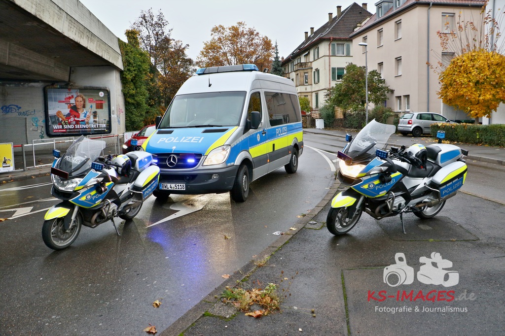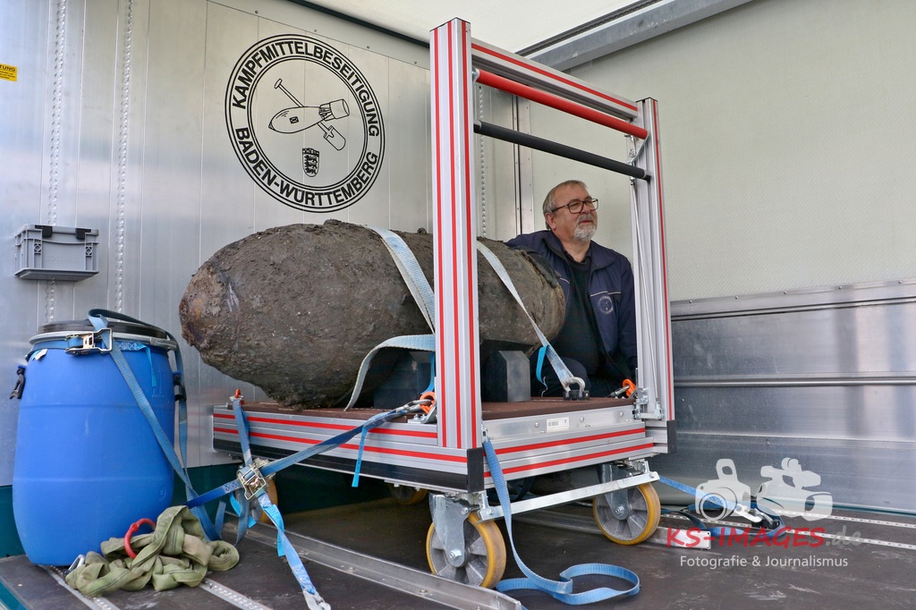 Die in der Stuppacher Straße aufgefundene Fliegerbombe (siehe unsere vorangegangene Pressemitteilung) ist am Freitag (05.11.2021) gegen 13.00 Uhr entschärft worden. Nach der erfolgreichen Entschärfung des Sprengkörpers durch den Kampfmittelbeseitigungsdienst im Regierungspräsidium Stuttgart wurden alle Sperrungen aufgehoben. Die Menschen können nun wieder in ihre Wohnungen beziehungsweise an ihren Arbeitsplatz zurückkehren. Insgesamt waren rund 5.000 Menschen ab 06.00 Uhr morgens aufgefordert worden, den Sicherheitsbereich im Radius von 500 Metern um den Fundort zu verlassen. Zahlreiche hilfsbedürftige Personen mussten mit Fahrzeugen aus dem Sicherheitsbereich gebracht werden. Die Evakuierungs- und Rettungsmaßnahmen waren gegen 12.45 Uhr abgeschlossen. Wie bereits berichtet, soll es sich um eine 500-Kilo-Fliegerbombe aus dem Zweiten Weltkrieg handeln, die am Mittwoch auf einer Baustelle von Arbeitern entdeckt worden war. (Fotos: Andreas Rometsch)
