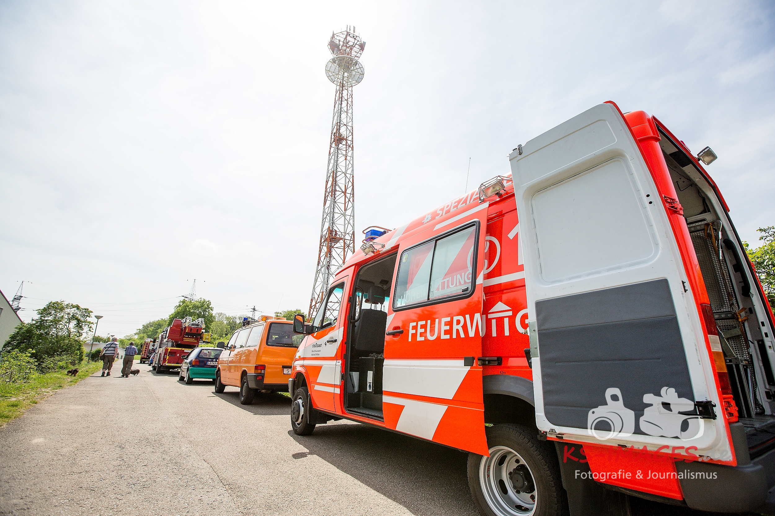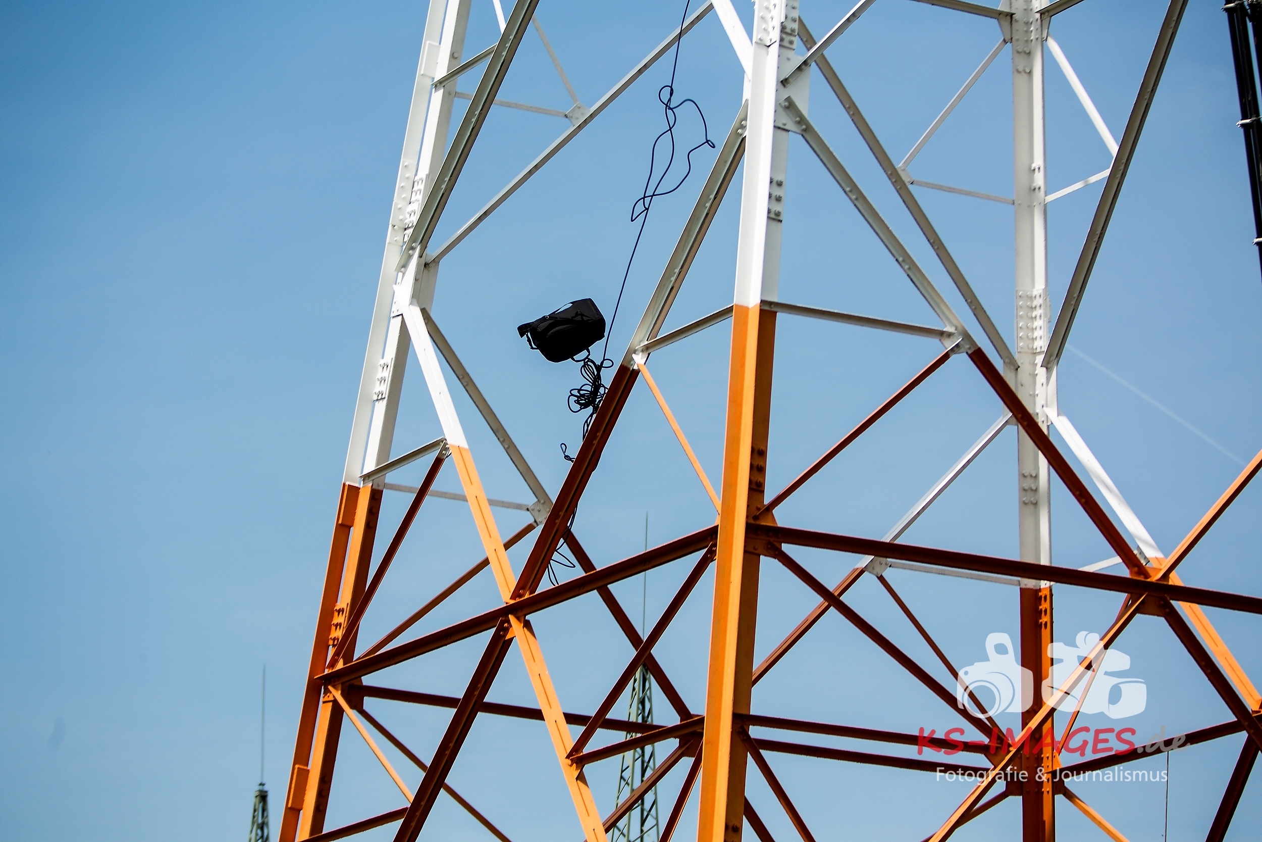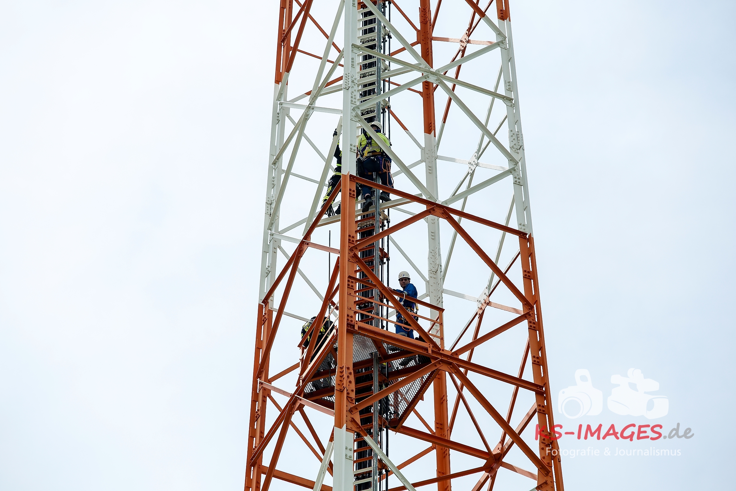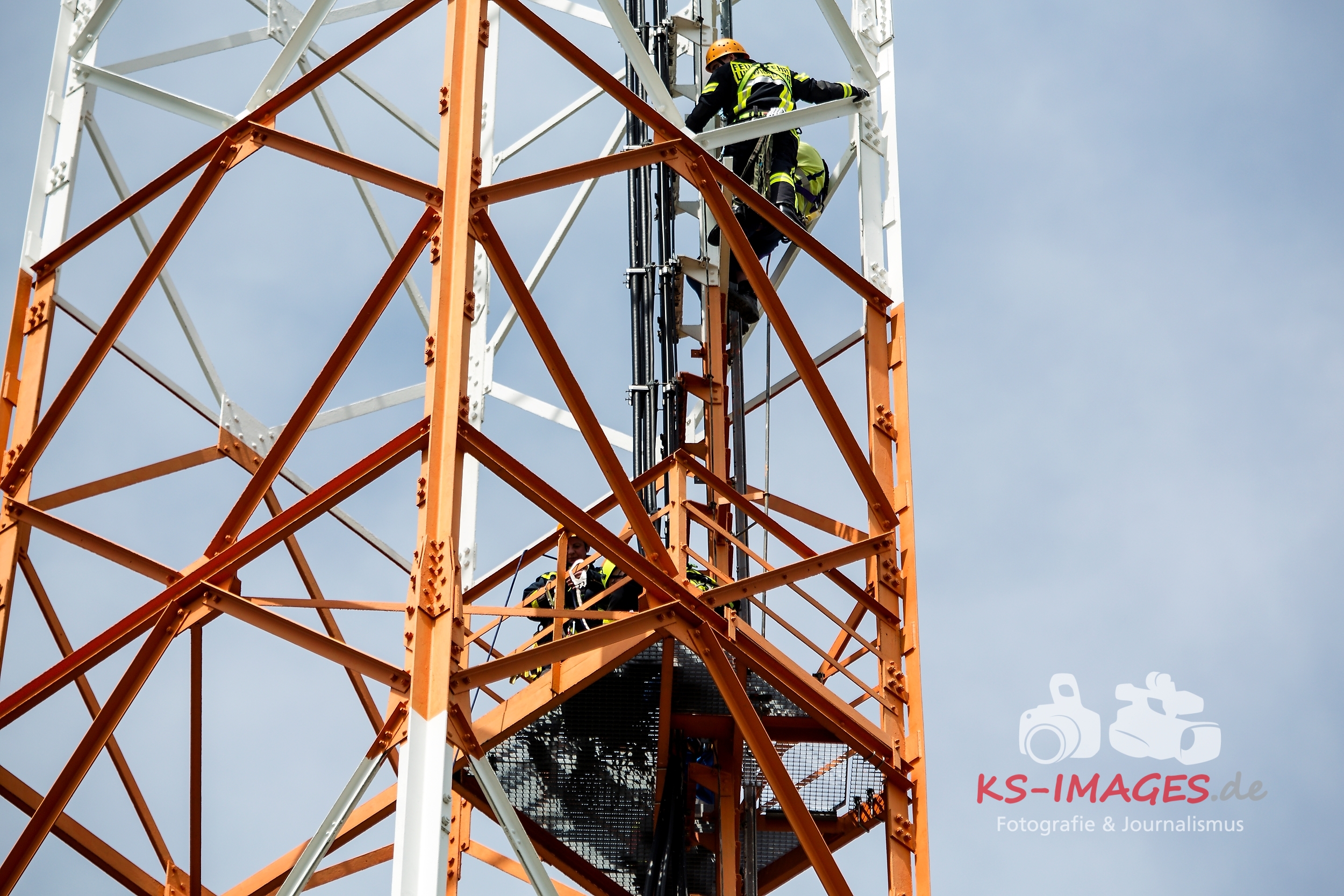 0 LUDWIGSBURG: Am Nachmittag des 11.05.2016 wurde von der Feuerwehr Ludwigsburg der hauptamtlichen Abteilung in Zusammenarbeit mit der Höhenrettungseinheit der Feuerwehr Ludwigsburg an dem rund 70 Meter hohen Funkmast des Umspannwerks Hoheneck der Firma Amprion eine Höhenrettung durchgeführt.