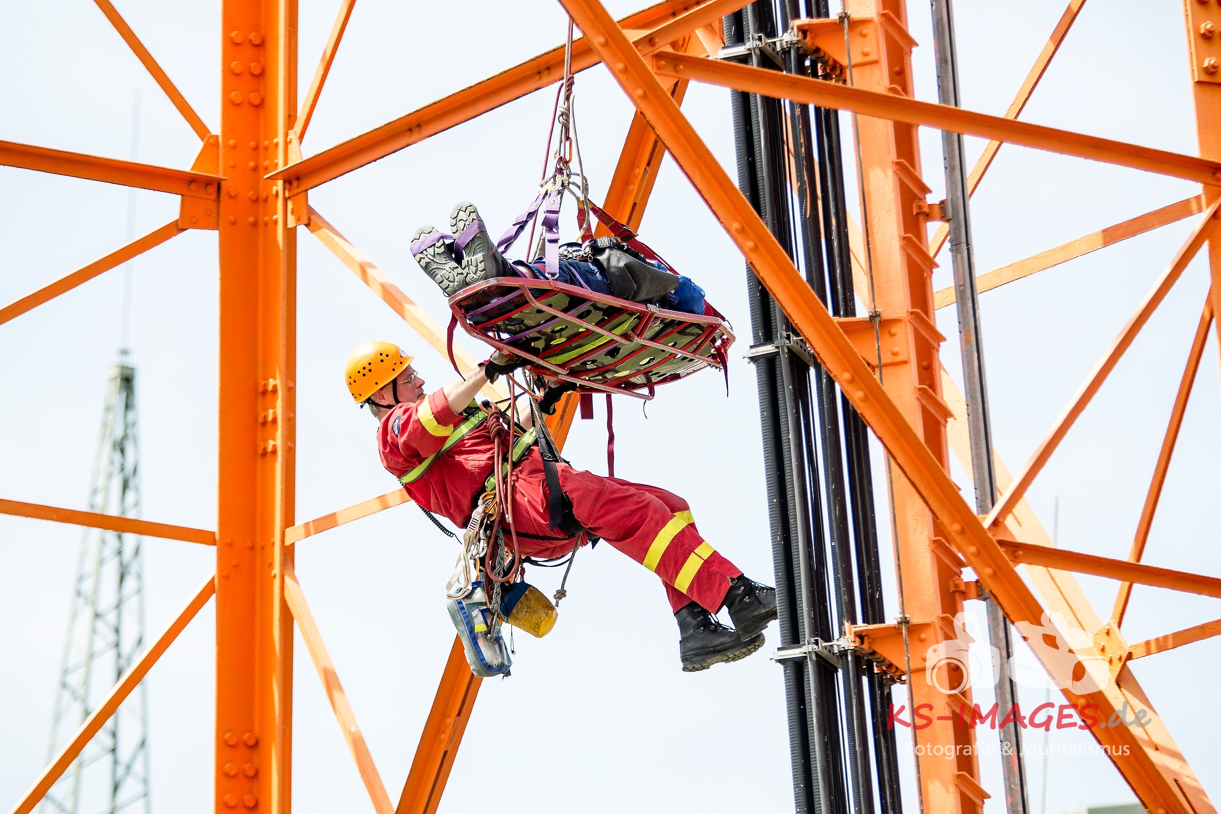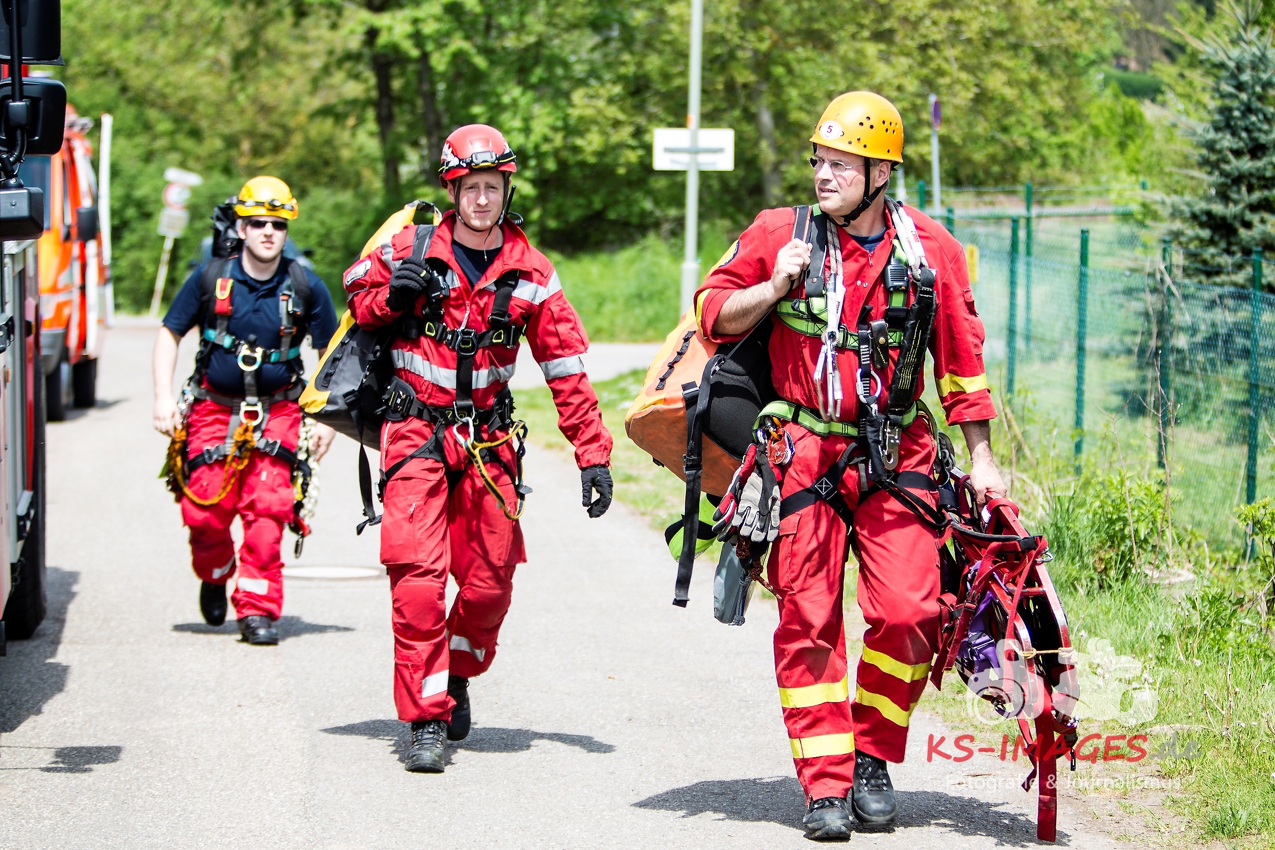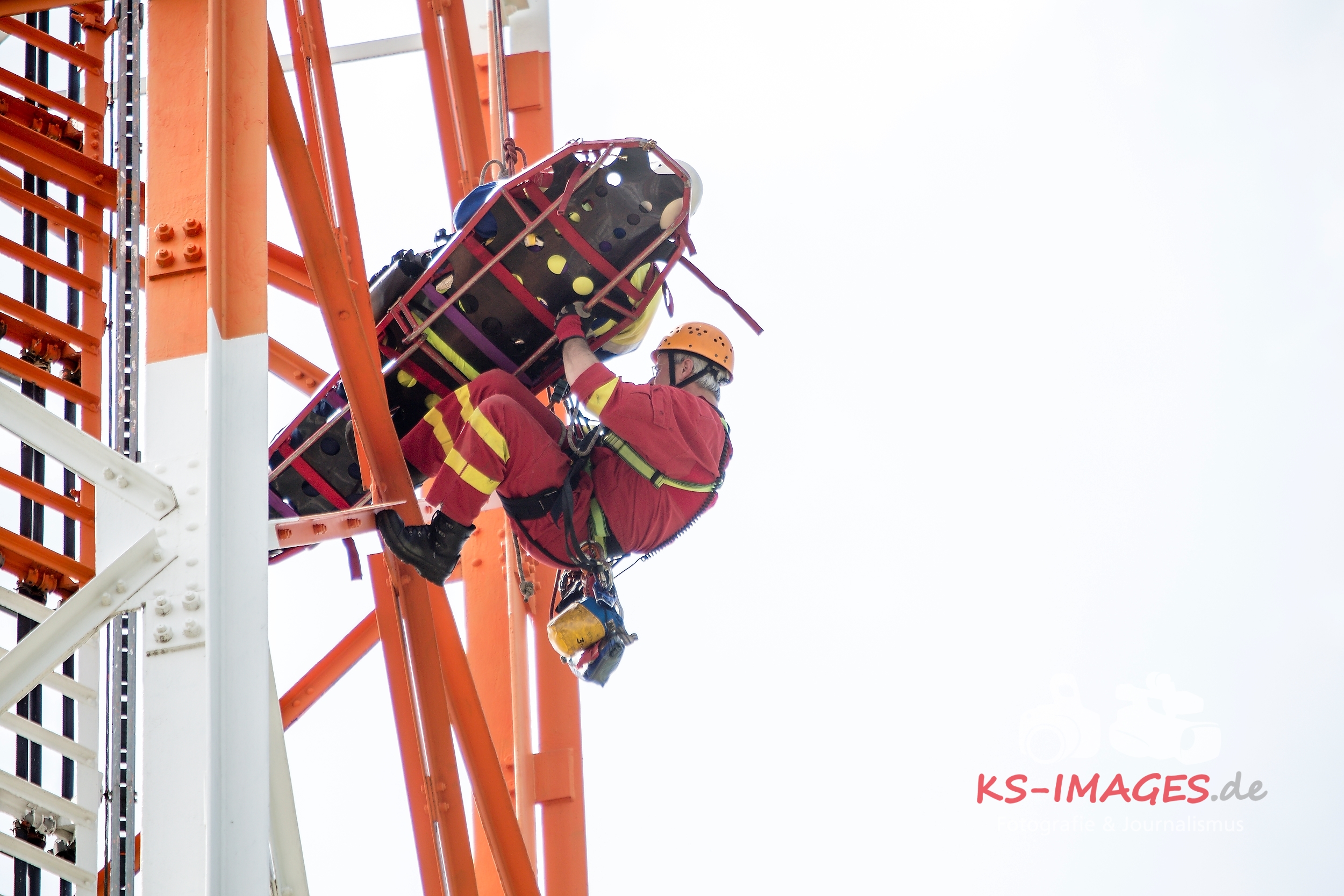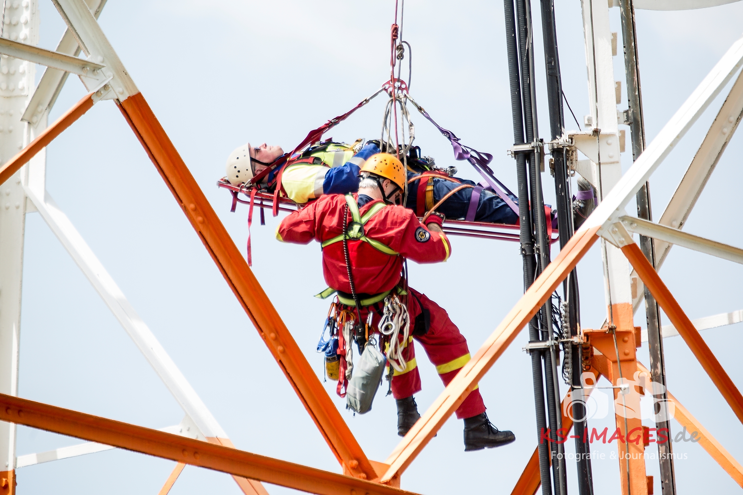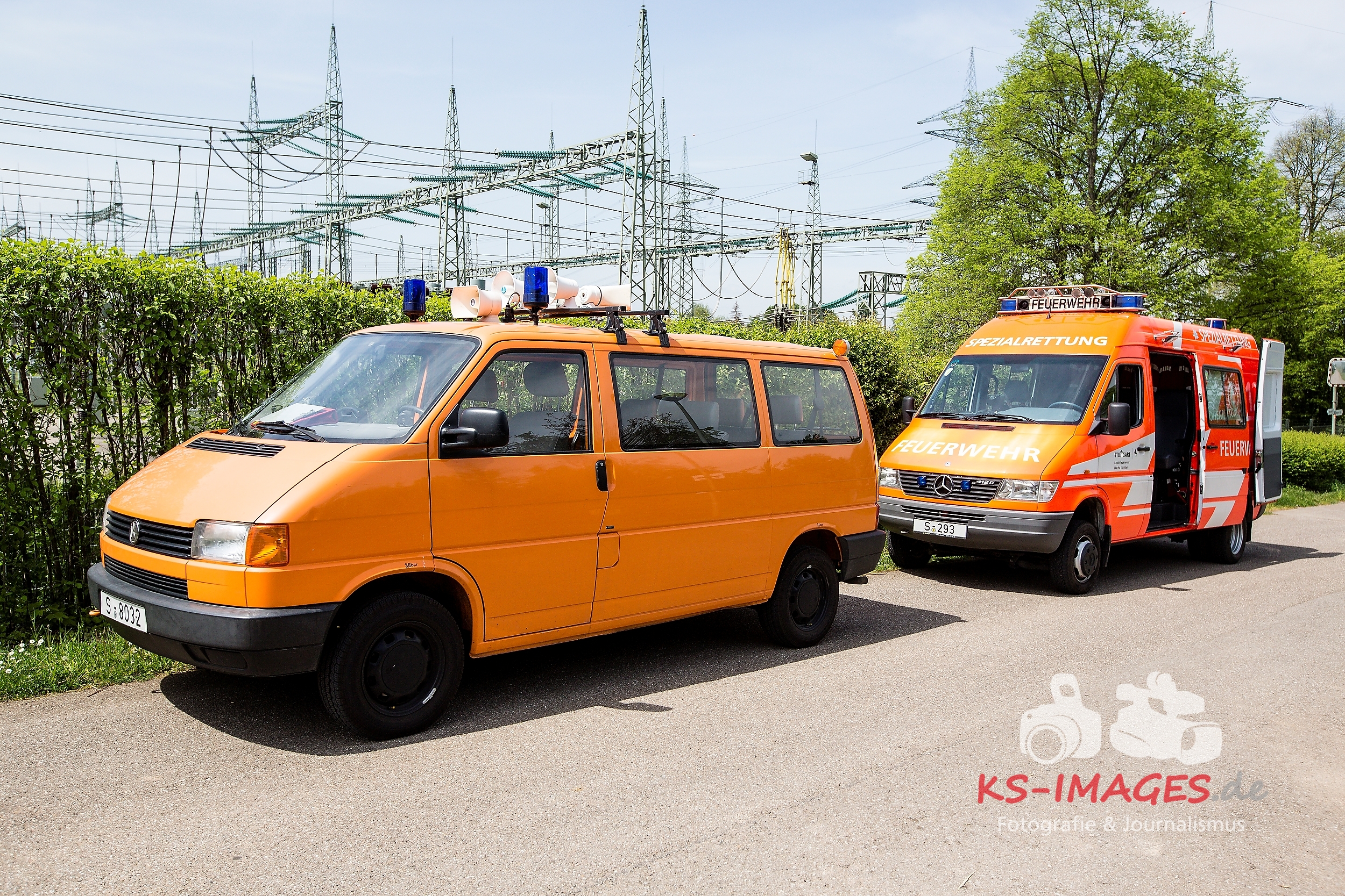 Herr Bläse von der Feuerwehr Ludwigsburg hatte sich zusammen mit der Firma Amprion ein Übung Szenarium auserarbeitet. Es sollte hier die Zusammenarbeit mit der Höhenrettungsgruppe aus Stuttgart geübt werden.