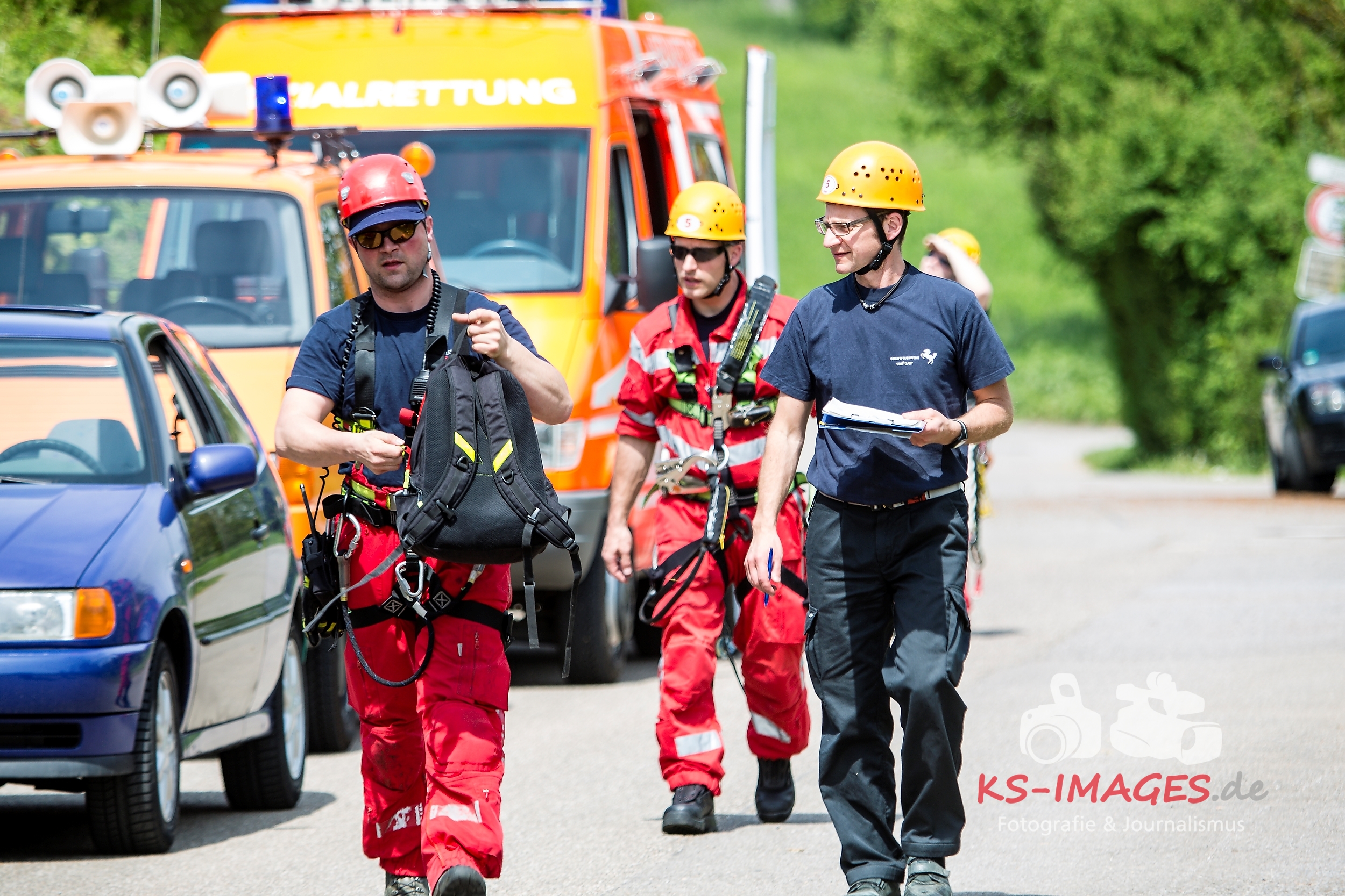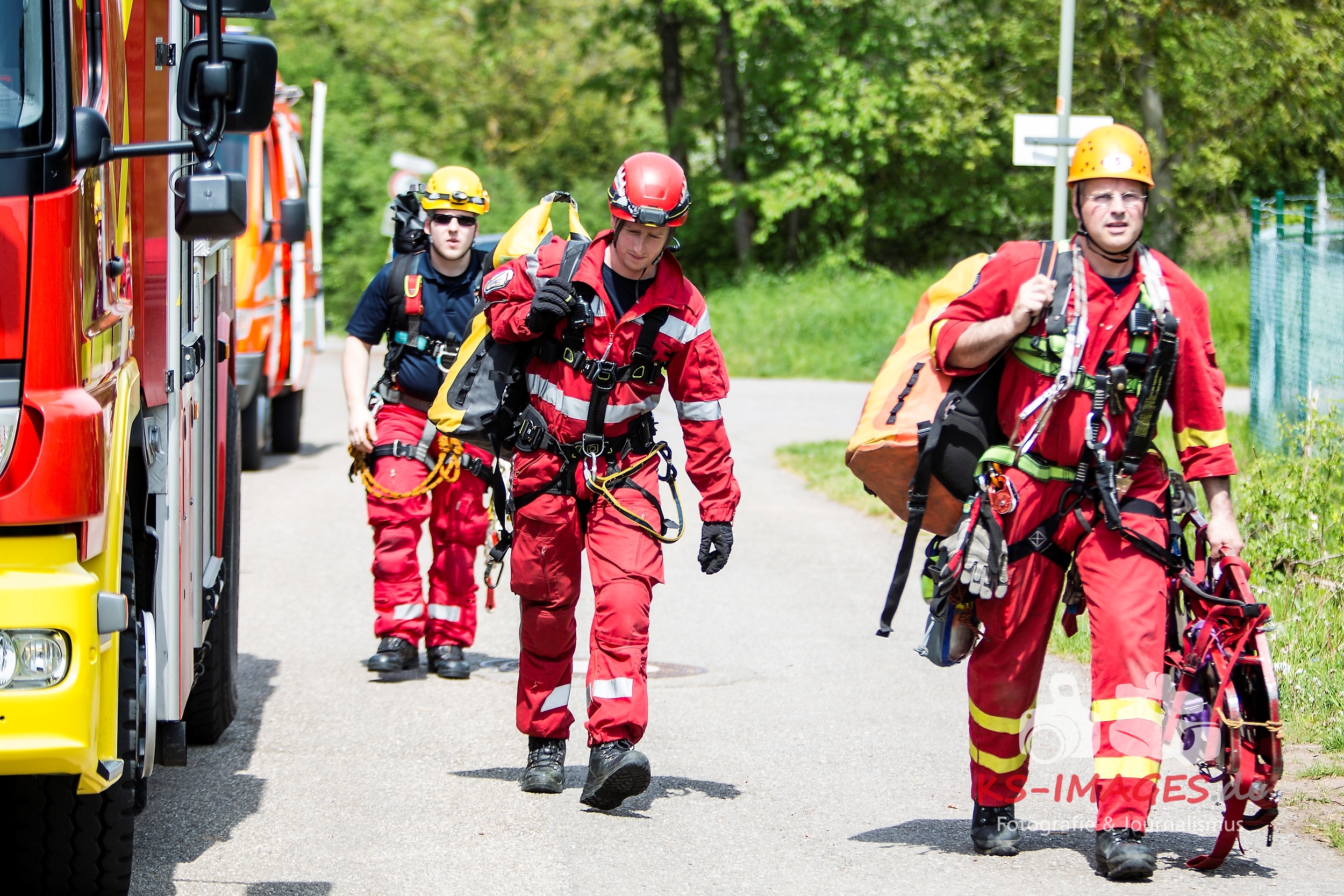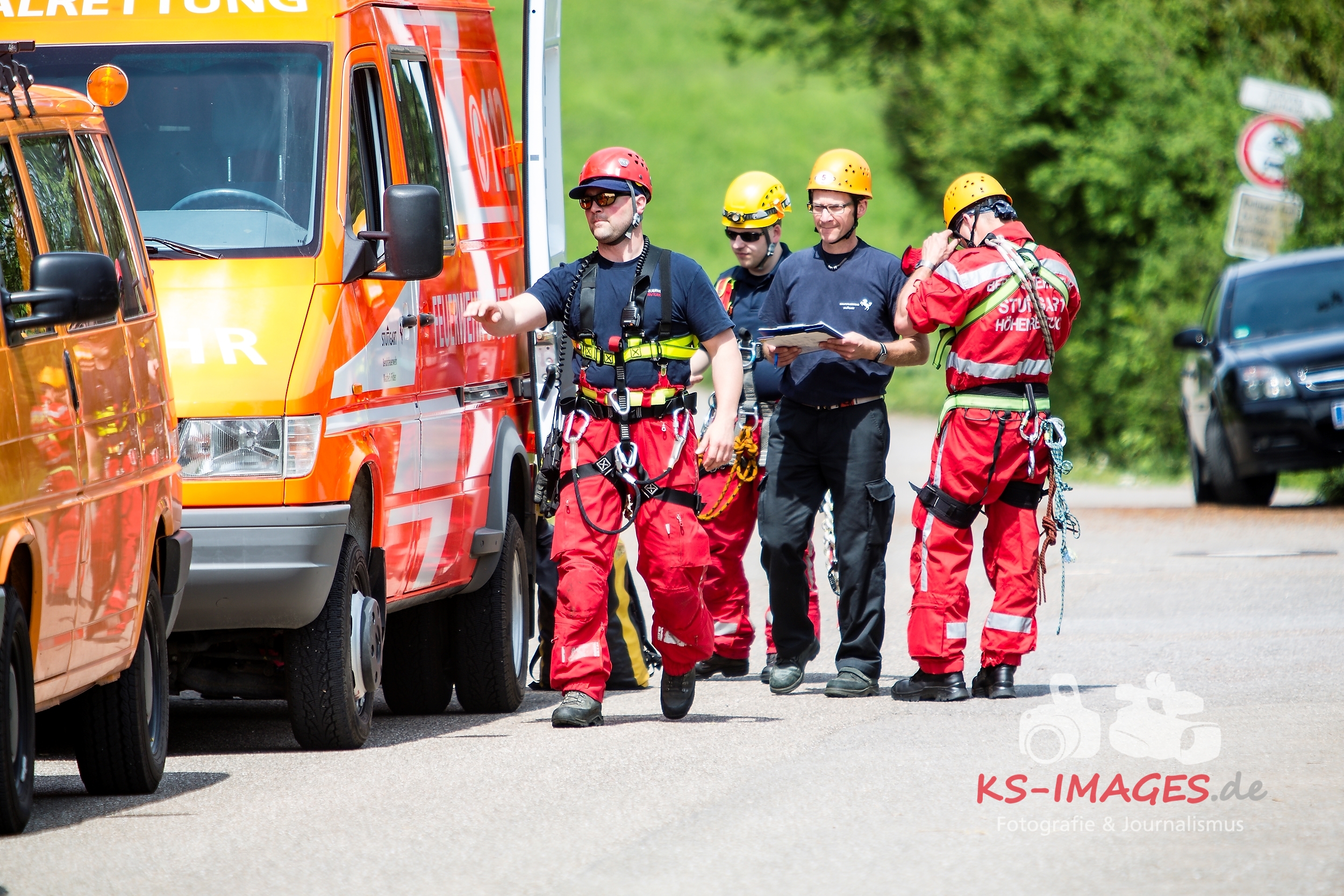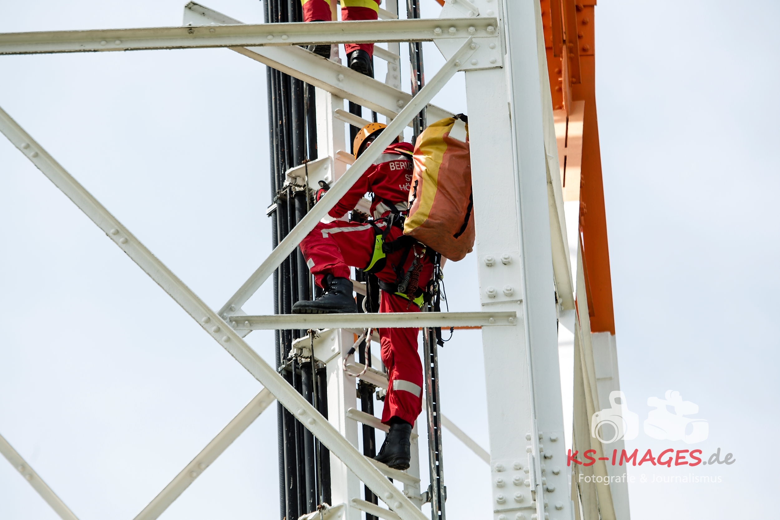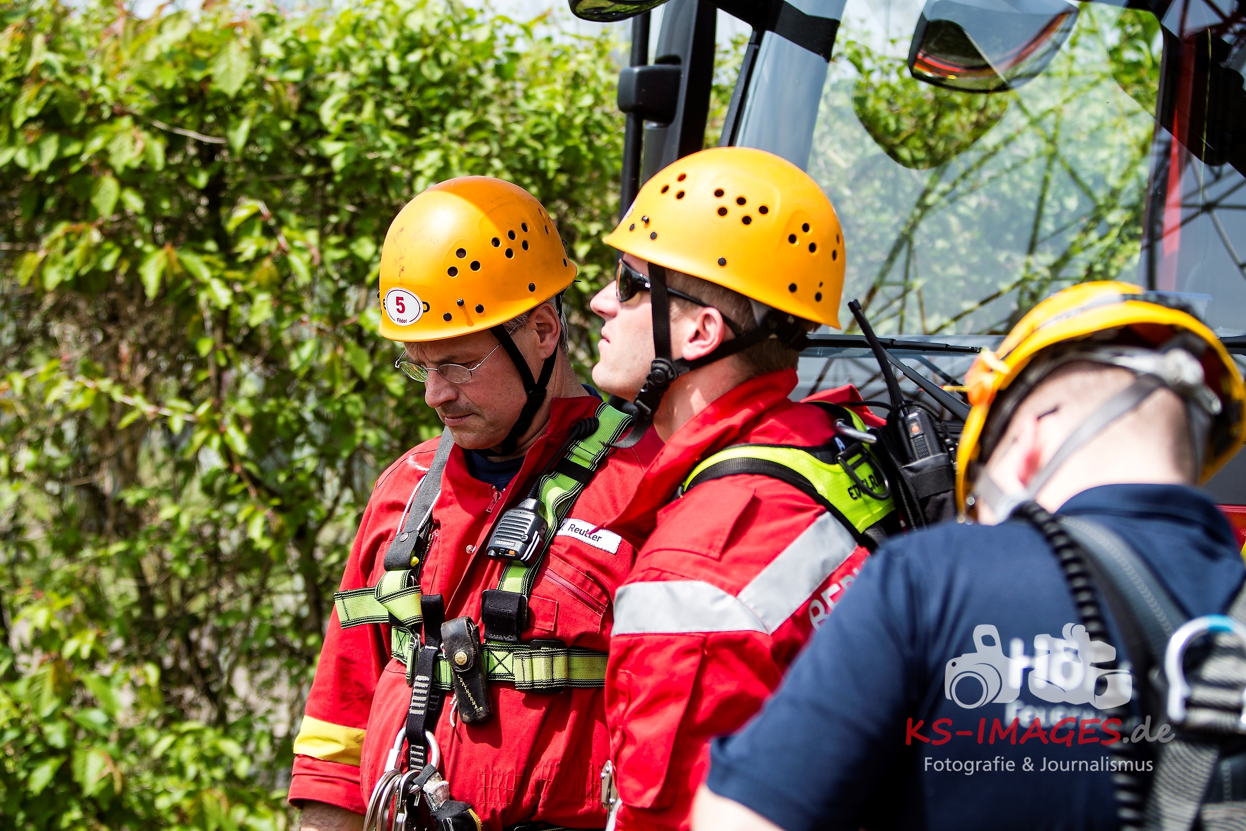 Herr Bläse von der Feuerwehr Ludwigsburg hatte sich zusammen mit der Firma Amprion ein Übung Szenarium auserarbeitet. Es sollte hier die Zusammenarbeit mit der Höhenrettungsgruppe aus Stuttgart geübt werden.