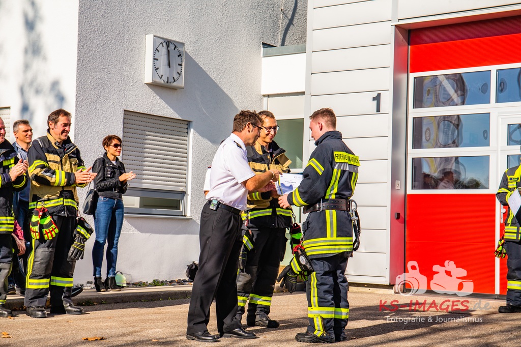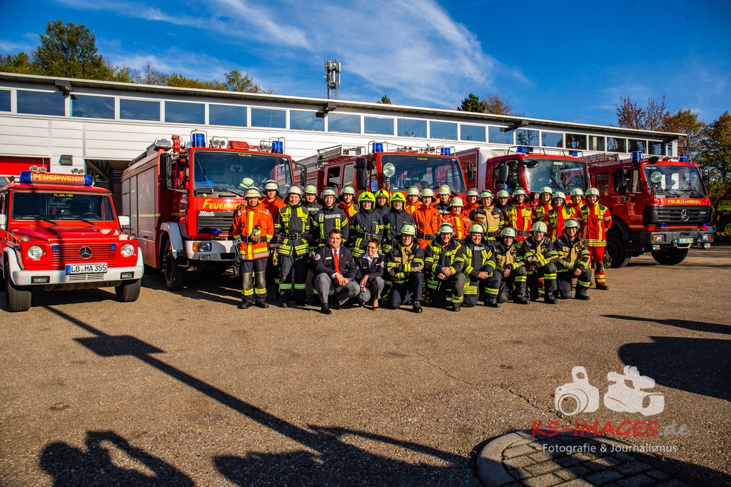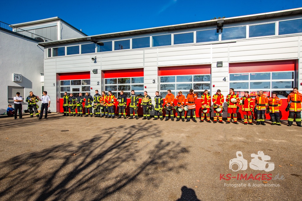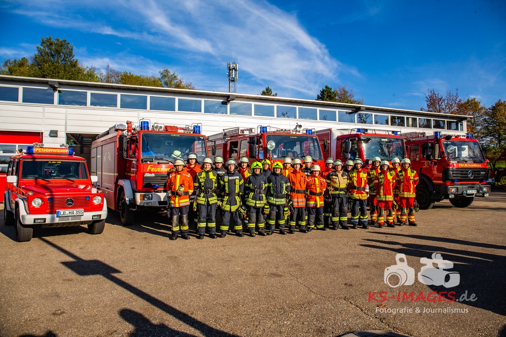 MARBACH AM NECKAR: Auch in diesem Jahr gab es wieder eine Grundausbildung in der Feuerwache Marbach, bei der wir mit insgesamt 22 Teilnehmer ausgebildet wurden. Die Gruppe bestand aus 21 Männer und einer Frau aus insgesamt zwölf verschiedenen Feuerwehren. Der Lehrgang fand im Zeitraum vom 17. September bis 26. Oktober, immer Dienstag und Donnerstag abends 3 Stunden und samstags 8 Stunden statt.