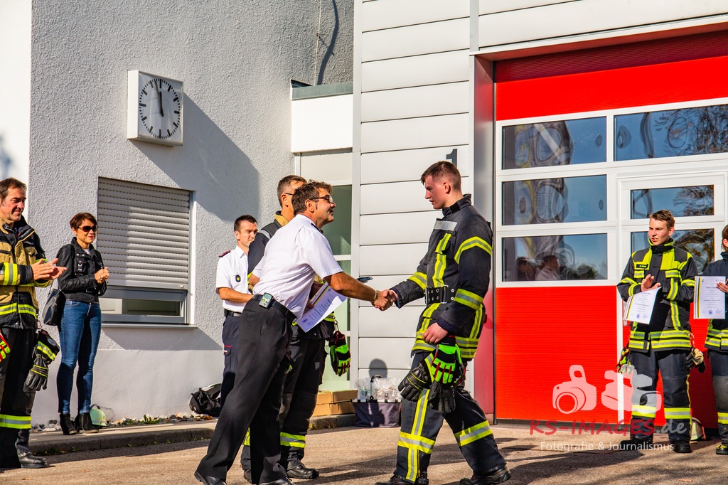 Nach der Übung wurde uns, nach einigen Worten unseres Lehrgangsleiter Lars Meyer und unserem Kreisbrandmeister Andy Dorroch, unsere Urkunden überreicht. Alle 22 Teilnehmer haben den Lehrgang bestanden. Herzlichen Glückwunsch euch allen.