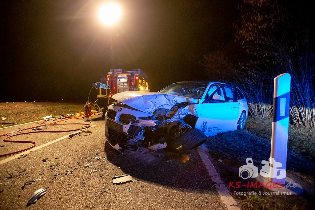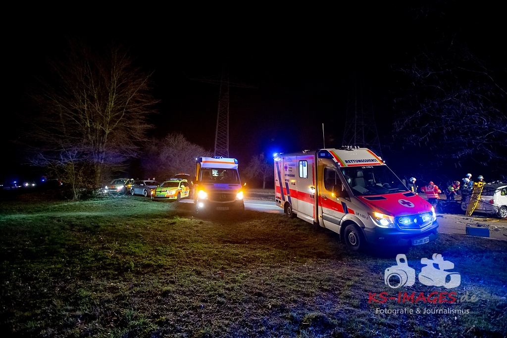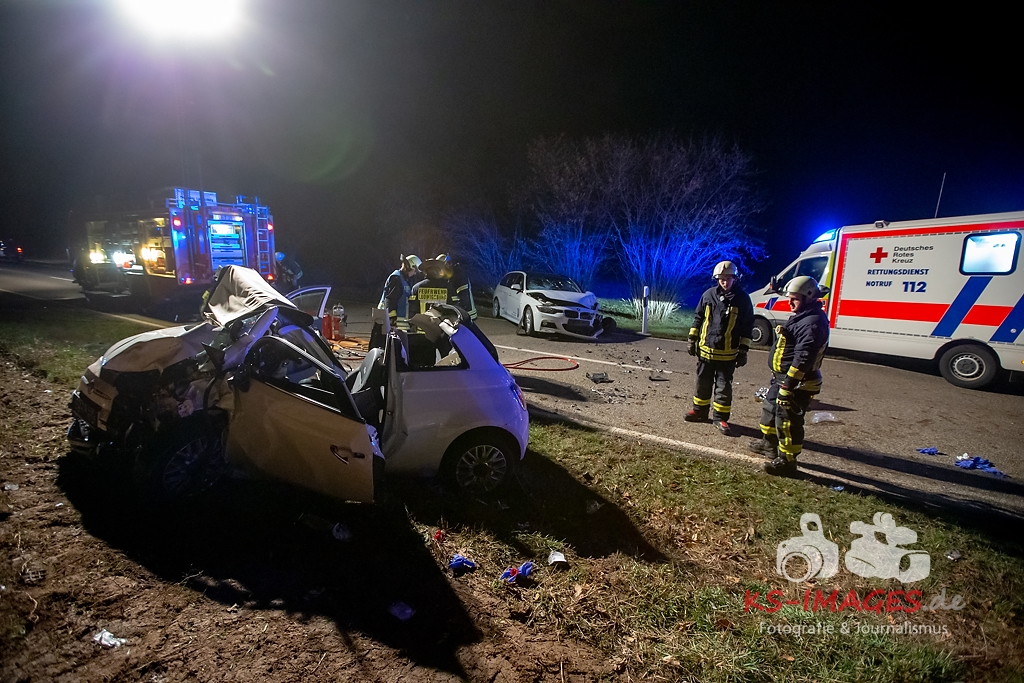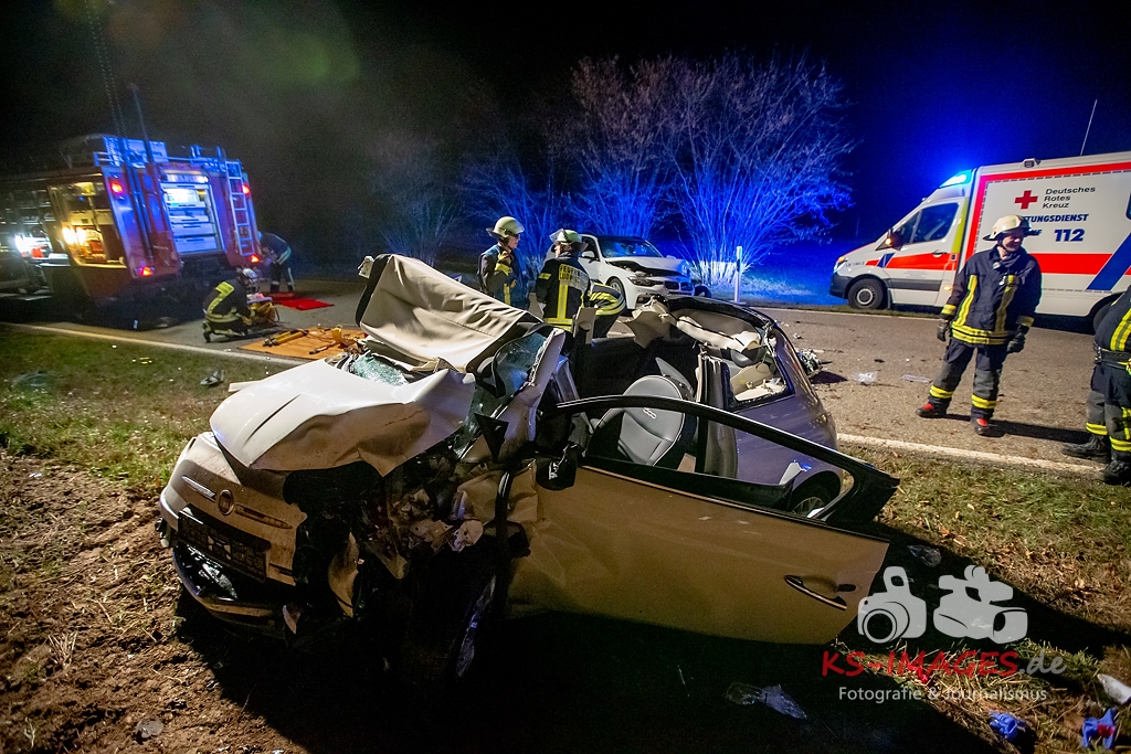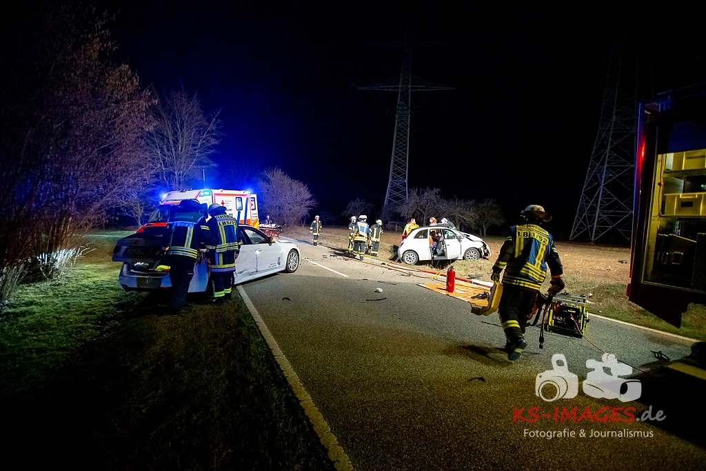 Der 49 Jahre alte Fahrer eines BMW fuhr hinter einem Mercedes, der von einem 52 Jahre alten Mann gelenkt wurde, in Richtung Benningen. Auf gerader Strecke setzte er zum Überholen an und übersah hierbei den entgegen kommenden Fiat einer 20-jährigen Frau, die mit ihrer Freundin, 19 Jahre alt, in Richtung Ludwigsburg unterwegs war. Es kam zum Frontalzusammenstoß, bei dem die beiden Insassinnen im Fiat eingeklemmt und schwer verletzt wurden. Der 49-jährige Fahrer des BMW sowie dessen 62-jähriger Beifahrer wurden leicht verletzt. Der BMW wurde durch den Aufprall abgewiesen und stieß noch gegen den Mercedes, dessen Fahrer unverletzt blieb. Die Insassinnen im Fiat mussten von der Feuerwehr aus dem Auto befreit werden und wurden durch den Rettungsdienst in nahe gelegene Krankenhäuser verbracht. Durch den Verkehrsunfall entstand Sachschaden in Höhe von etwa 46.000 Euro. Die Feuerwehren Ludwigsburg und Freiberg waren mit insgesamt 11 Fahrzeugen und 42 Wehrleuten vor Ort, der Rettungsdienst mit sechs Fahrzeugen und 13 Mitarbeitern. Zur Bergung der Fahrzeuge und Unfallaufnahme war die Strecke bis 01:40 Uhr gesperrt. Das Polizeipräsidium Ludwigsburg hatte hierzu vier Streifenwagen im Einsatz.