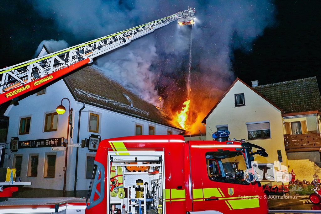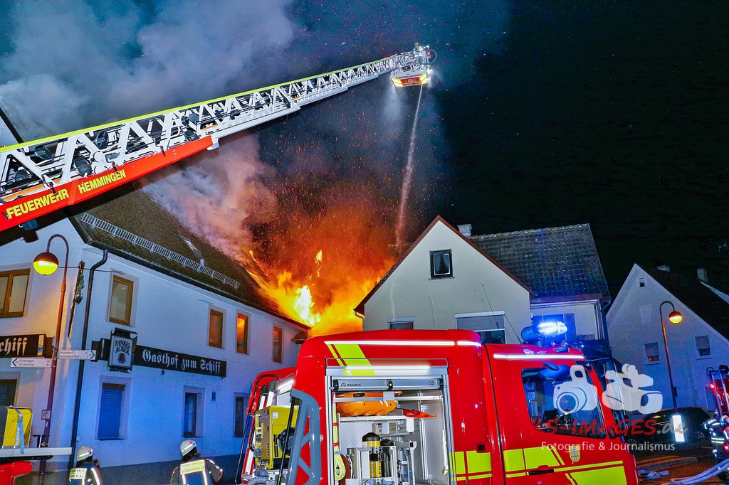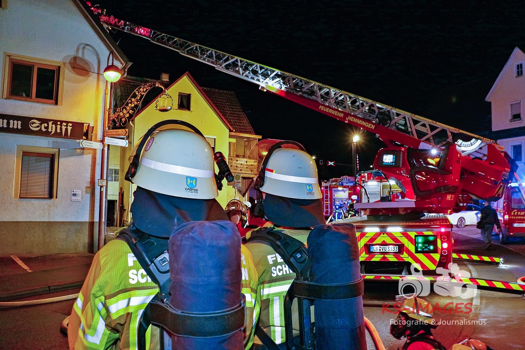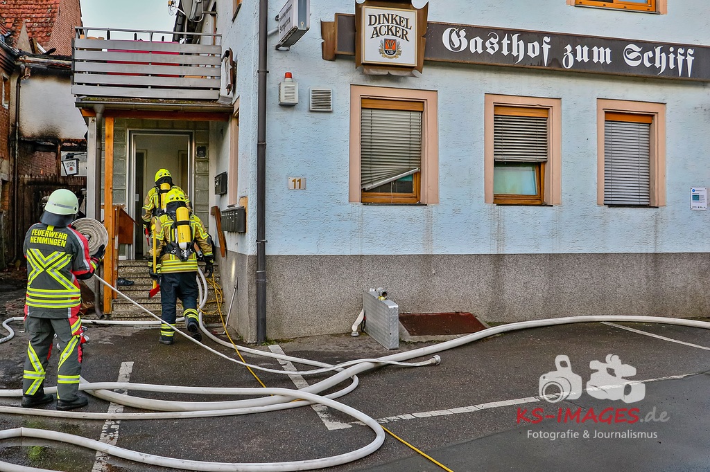 HEMMINGEN: Am Mittwoch gegen 02:45 Uhr bemerkte ein Bewohner eines ehemaligen Gasthauses in der Hochdorfer Straße ein Feuer im Haus. Beim Eintreffen von Polizei und Feuerwehr stand das Gebäude bereits in Vollbrand. Fünf Bewohner im Alter zwischen 24 und 36 Jahren konnten selbständig ihre Wohnungen verlassen und sich ins Freie retten.