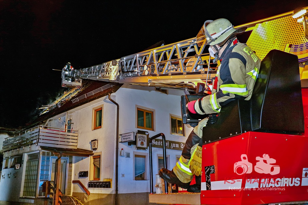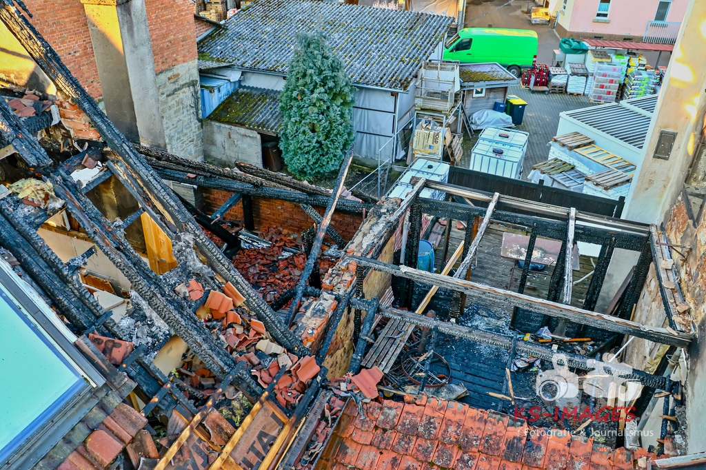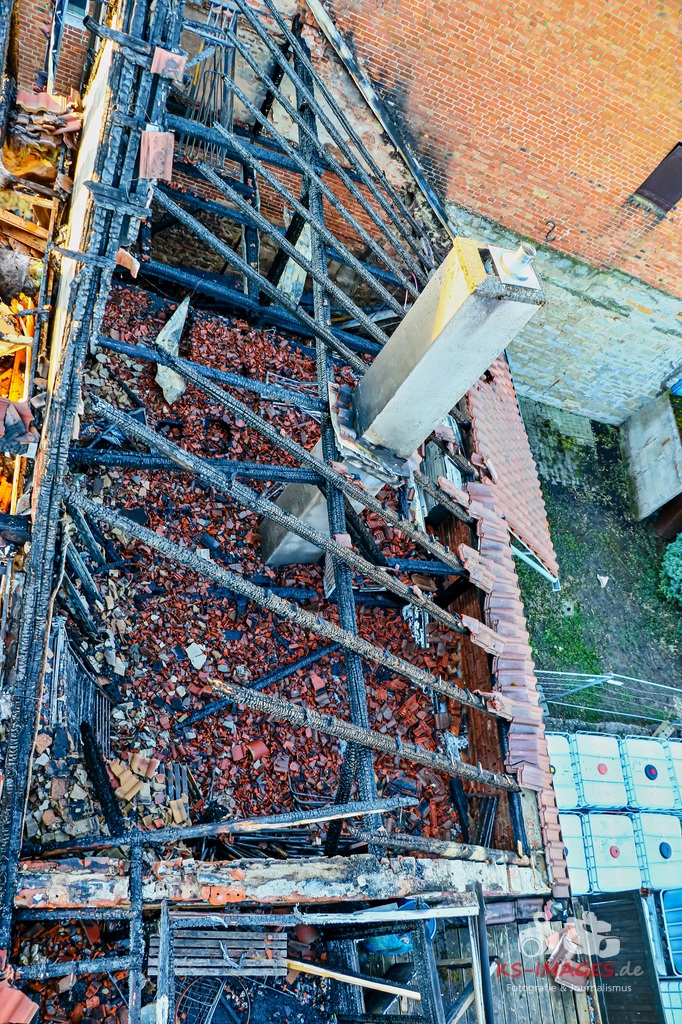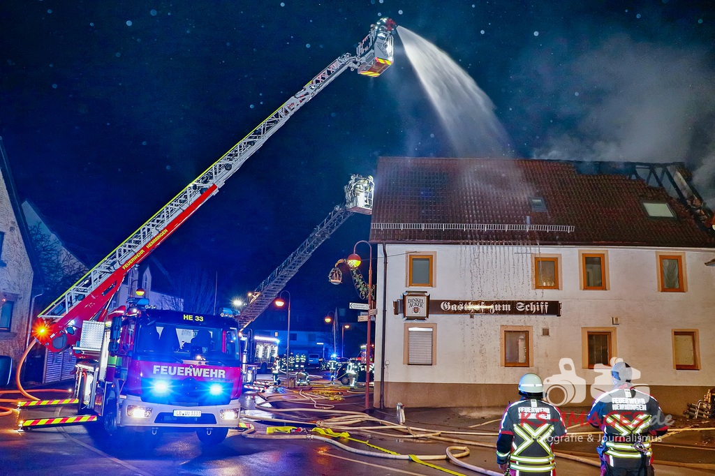 Fotostrecke: Dachstuhlbrand eines ehemaligen Gasthauses welches als Gemeinschfatsunterkunft bis zum Brand genutzt wurde. Hemmingen Hochdorfer Straße 09.02.2022