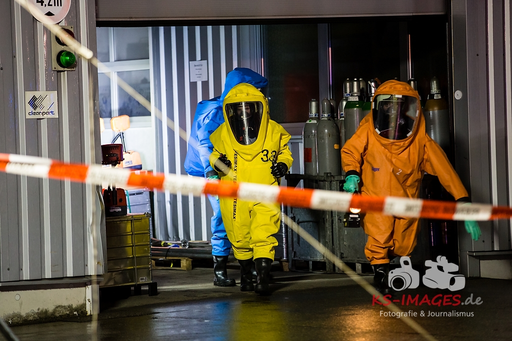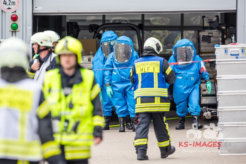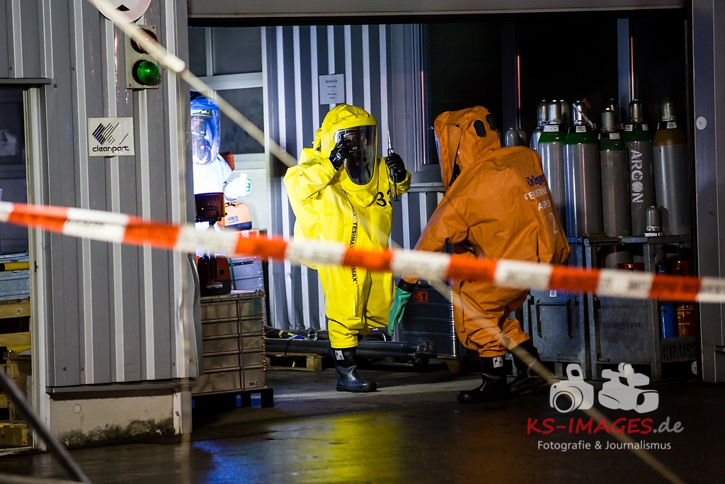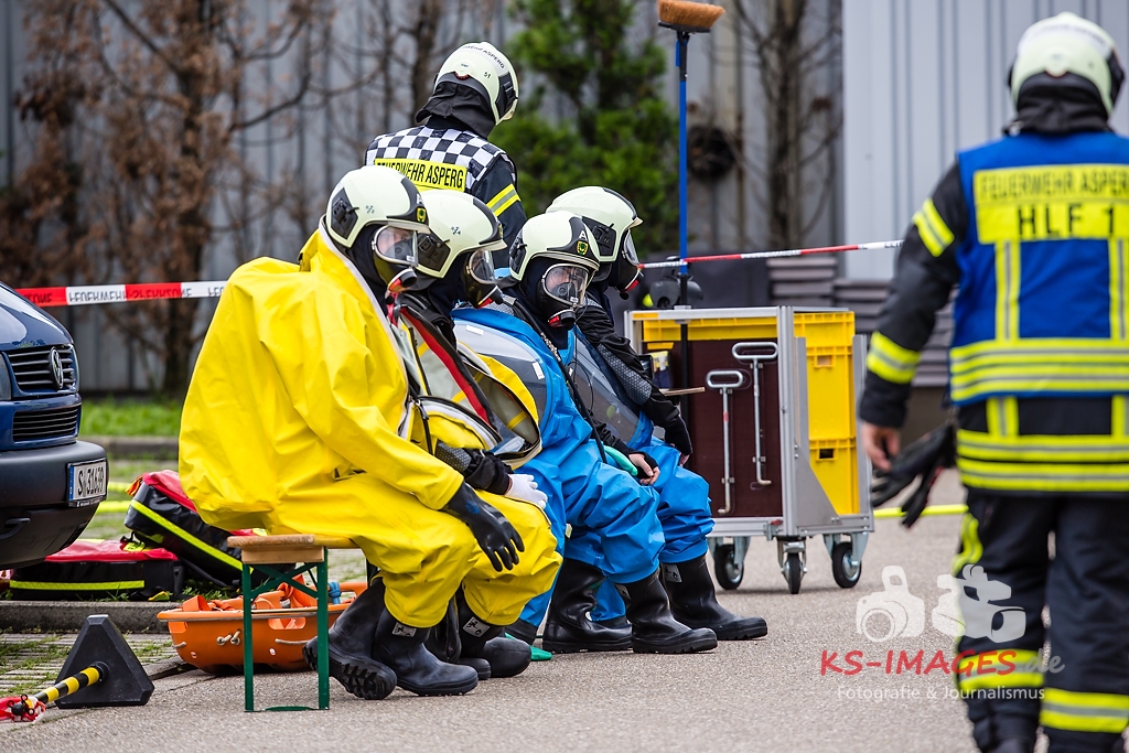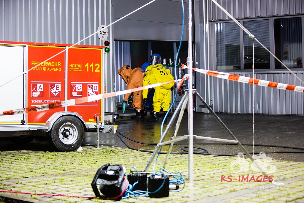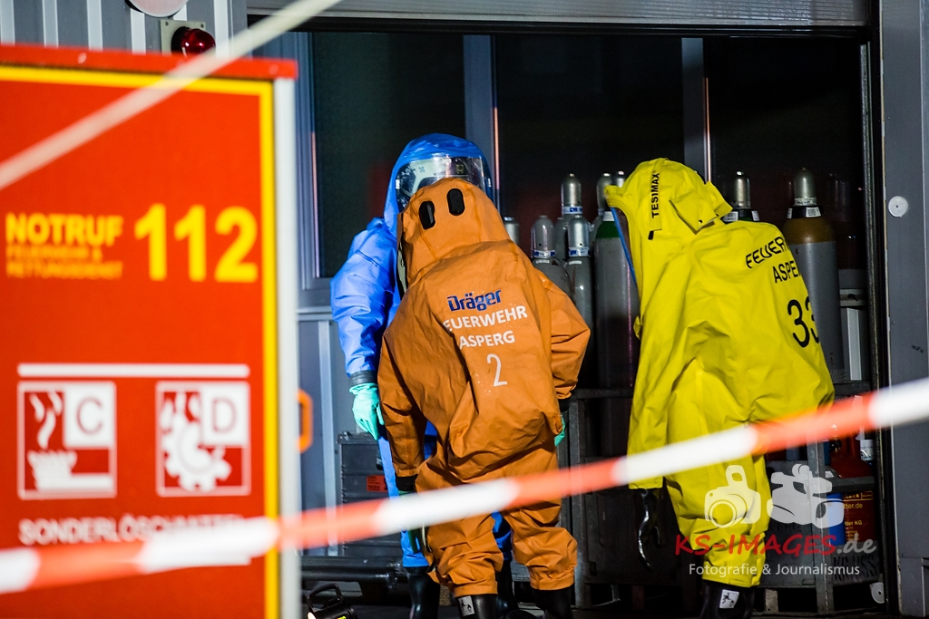 ASPERG: Rund 100 Einsatzkräfte der Feuerwehren aus Asperg, Tamm, Schwieberdingen und Ludwigsburg sowie des Rettungsdienstes und der Polizei waren in der Nacht zum Freitag bei einem Gefahrgutunfall auf einem Betriebsgelände in der Siemensstraße in Asperg im Einsatz. In einem Betriebsgebäude war es gegen 23:20 Uhr aus noch ungeklärter Ursache in drei Tauchbecken zu einer chemischen Reaktion gekommen, in deren Verlauf sich ätzender Dampf aus Borfluorwasserstoffsäure und Kalilauge entwickelte. Eine Umweltgefahr bestand nicht, da der Dampf das Gebäude nicht verlassen konnte. Evakuierungsmaßnahmen waren daher nicht erforderlich. Einsatzkräfte der Feuerwehr mit entsprechender Schutzausrüstung unterbrachen die Wärmezufuhr zu den betroffenen Becken und neutralisierten die in ein Auffangbecken übergelaufene Flüssigkeit. Gegen 03:00 Uhr waren die Einsatzmaßnahmen beendet. Personen kamen nicht zu Schaden. Wie hoch der entstandene Sachschaden ist, steht derzeit noch nicht fest Beamte des Fachbereichs Umwelt und Gewerbe beim Polizeipräsidium Ludwigsburg haben die weiteren Ermittlungen zur Ursache des Unfalls übernommen.
