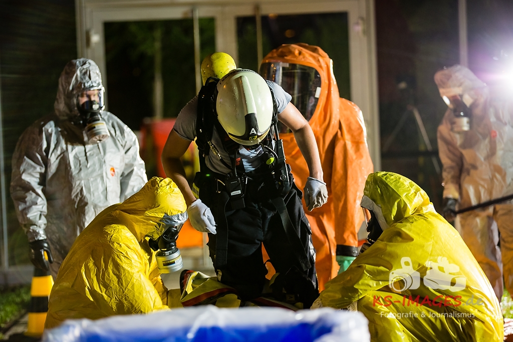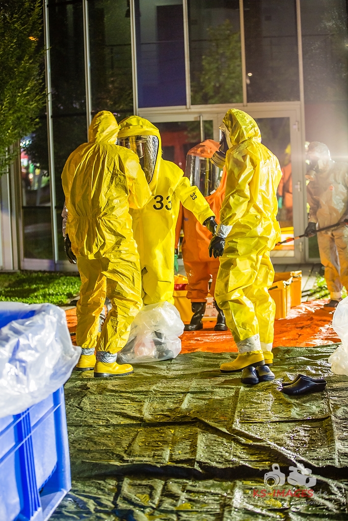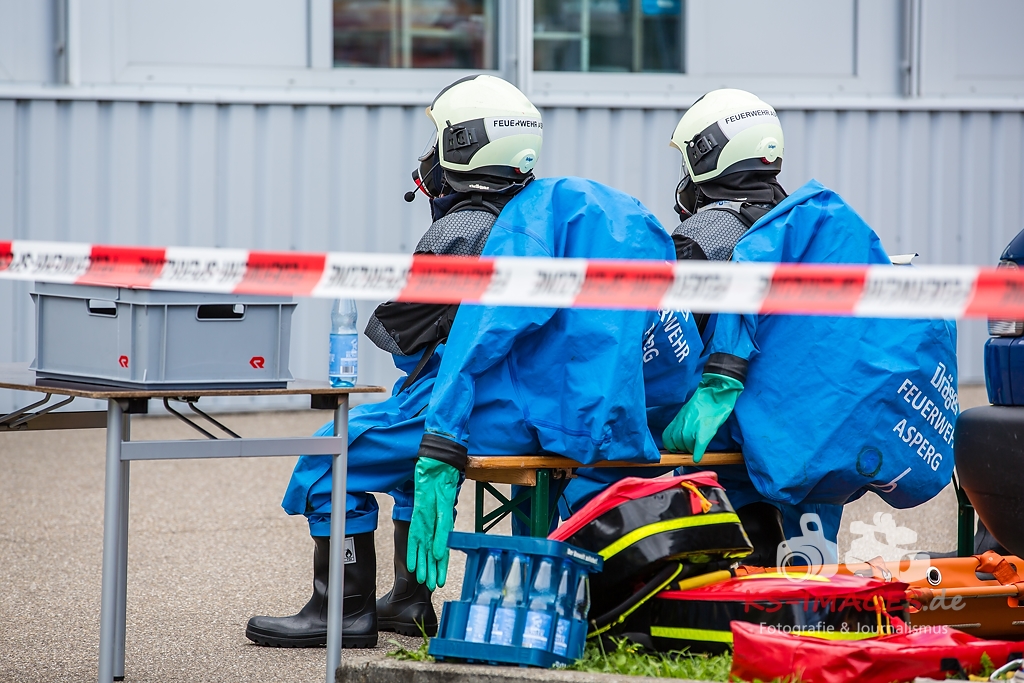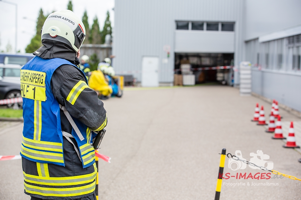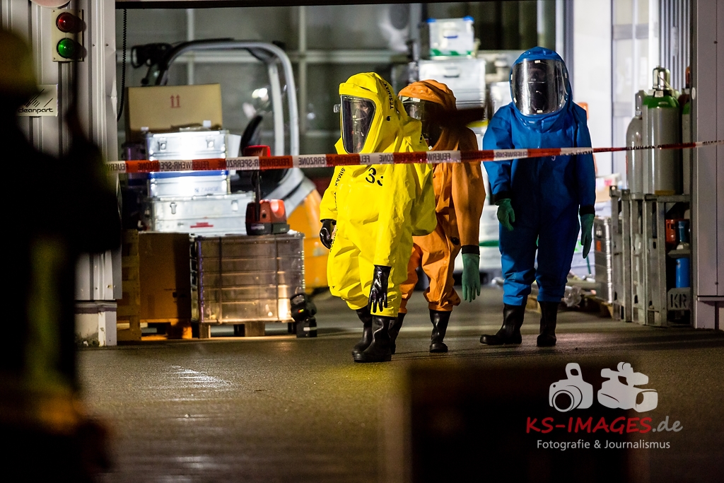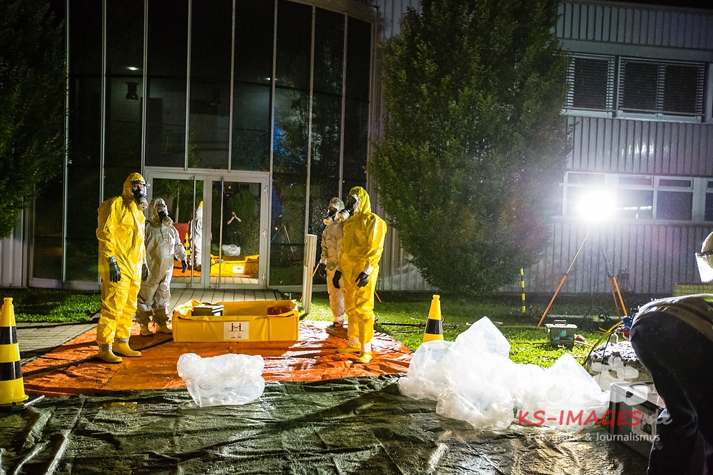 ASPERG: Rund 100 Einsatzkräfte der Feuerwehren aus Asperg, Tamm, Schwieberdingen und Ludwigsburg sowie des Rettungsdienstes und der Polizei waren in der Nacht zum Freitag bei einem Gefahrgutunfall auf einem Betriebsgelände in der Siemensstraße in Asperg im Einsatz. In einem Betriebsgebäude war es gegen 23:20 Uhr aus noch ungeklärter Ursache in drei Tauchbecken zu einer chemischen Reaktion gekommen, in deren Verlauf sich ätzender Dampf aus Borfluorwasserstoffsäure und Kalilauge entwickelte. Eine Umweltgefahr bestand nicht, da der Dampf das Gebäude nicht verlassen konnte. Evakuierungsmaßnahmen waren daher nicht erforderlich. Einsatzkräfte der Feuerwehr mit entsprechender Schutzausrüstung unterbrachen die Wärmezufuhr zu den betroffenen Becken und neutralisierten die in ein Auffangbecken übergelaufene Flüssigkeit. Gegen 03:00 Uhr waren die Einsatzmaßnahmen beendet. Personen kamen nicht zu Schaden. Wie hoch der entstandene Sachschaden ist, steht derzeit noch nicht fest Beamte des Fachbereichs Umwelt und Gewerbe beim Polizeipräsidium Ludwigsburg haben die weiteren Ermittlungen zur Ursache des Unfalls übernommen.