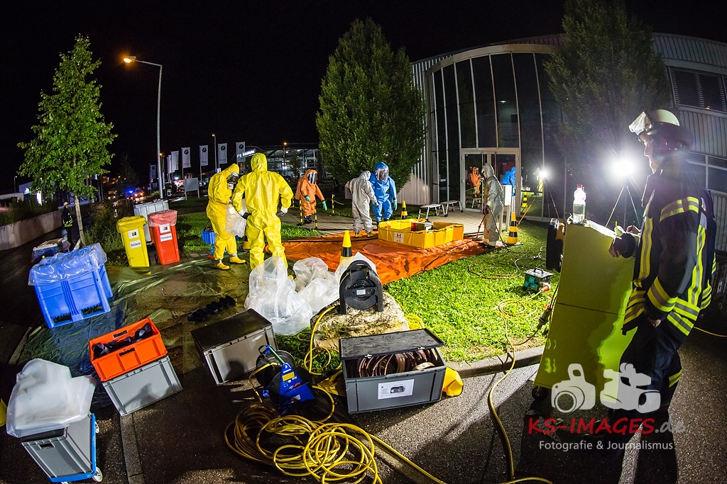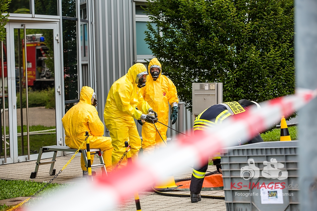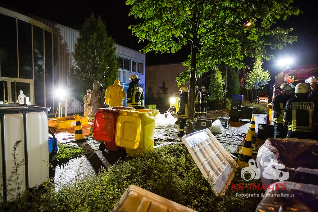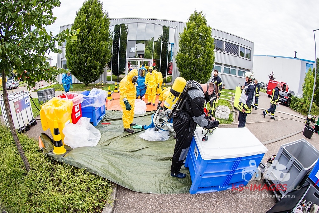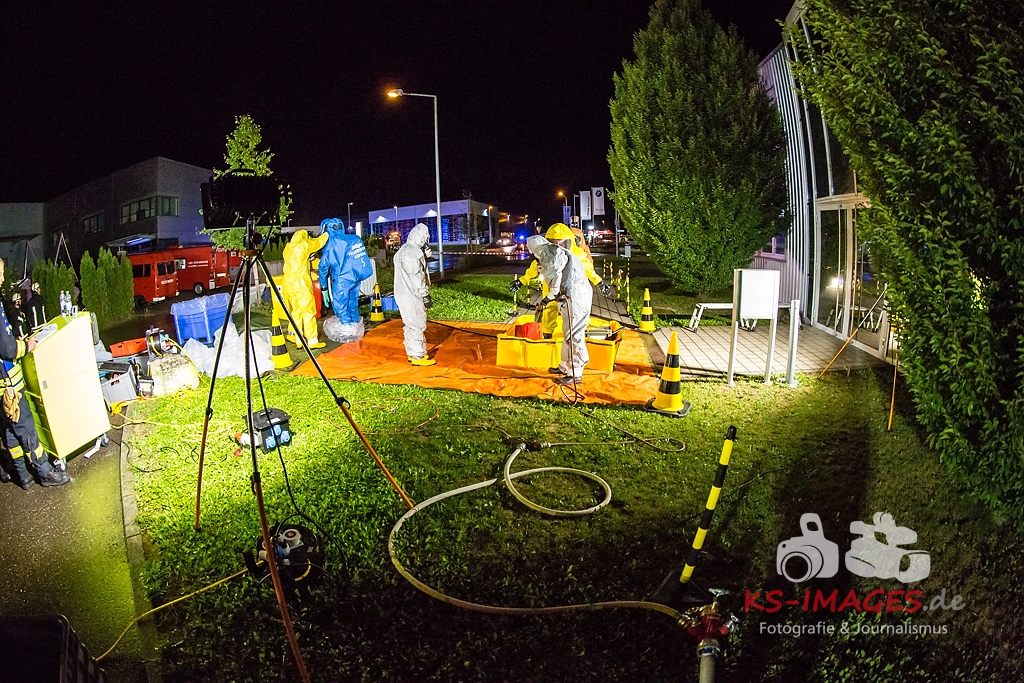 Fotostrecke: Chemische Reaktion in einem Tauchbecken – Gefahrguteinsatz in Asperg Siemensstraße 27.07.2017