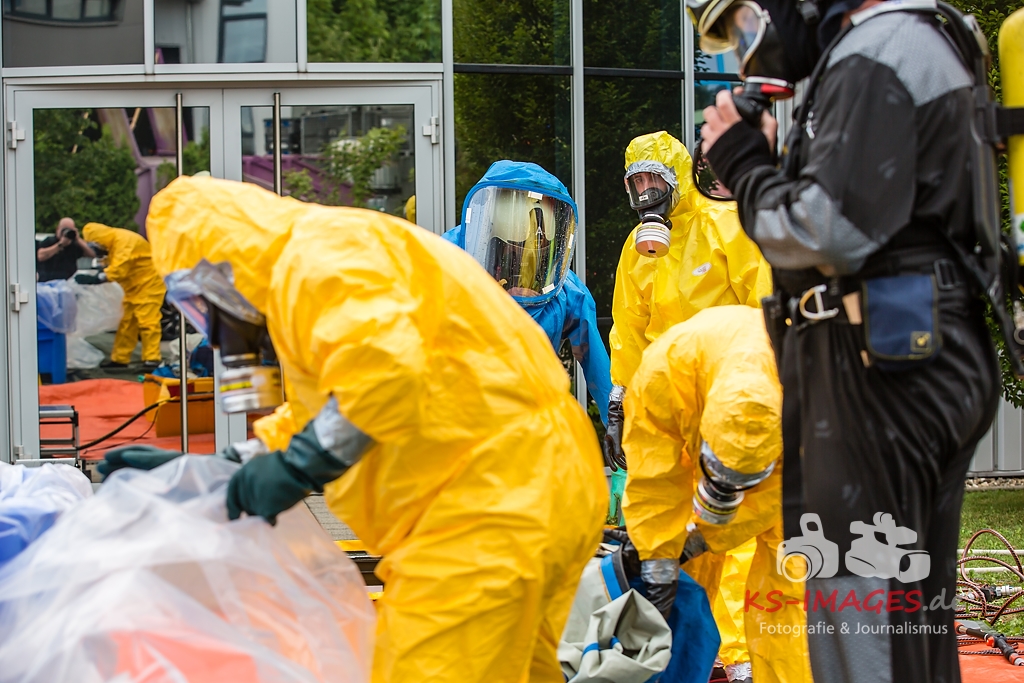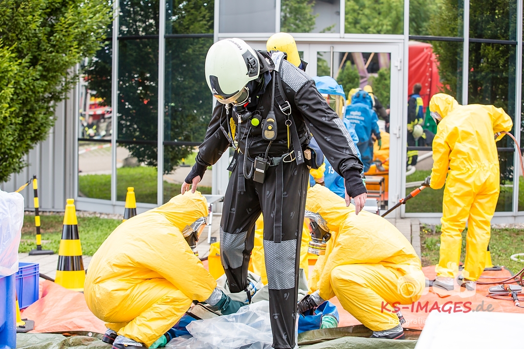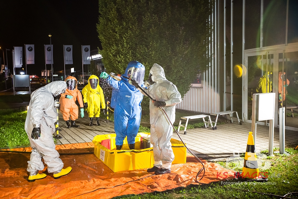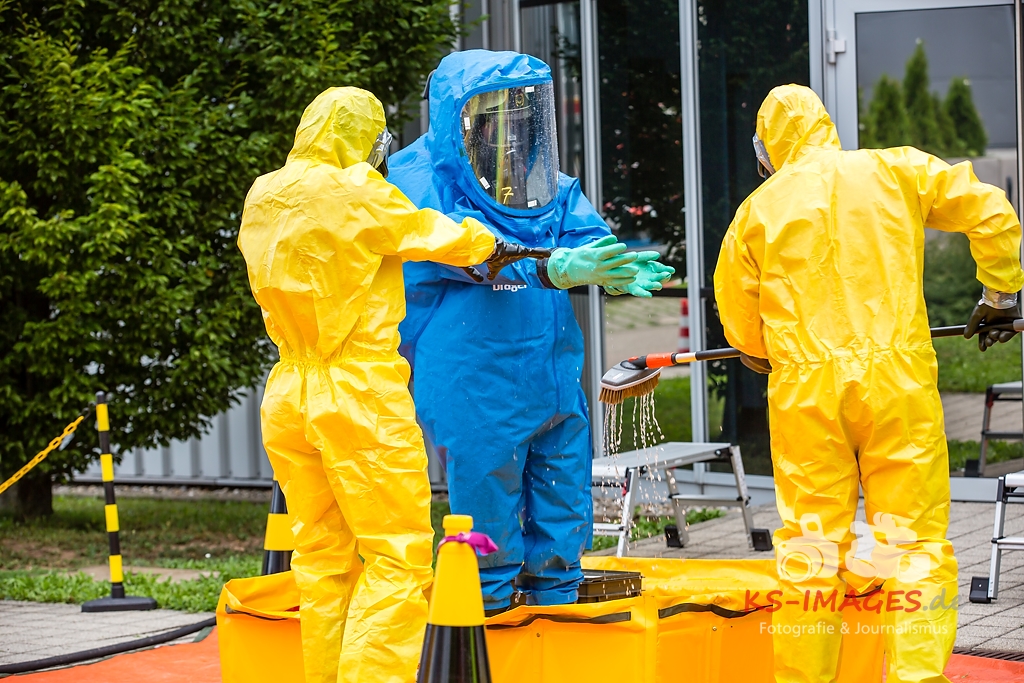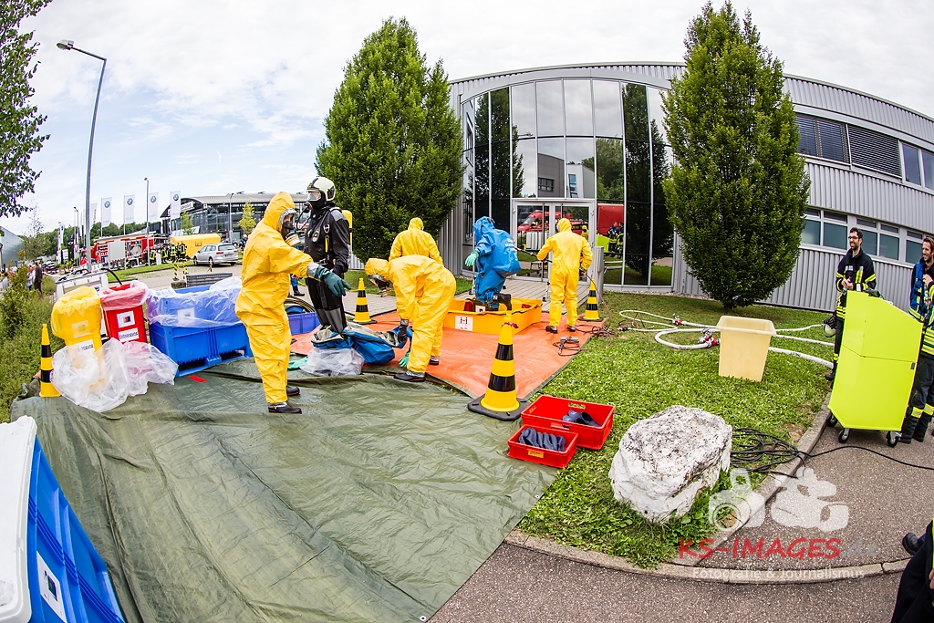 Fotostrecke: Chemische Reaktion in einem Tauchbecken – Gefahrguteinsatz in Asperg Siemensstraße 27.07.2017