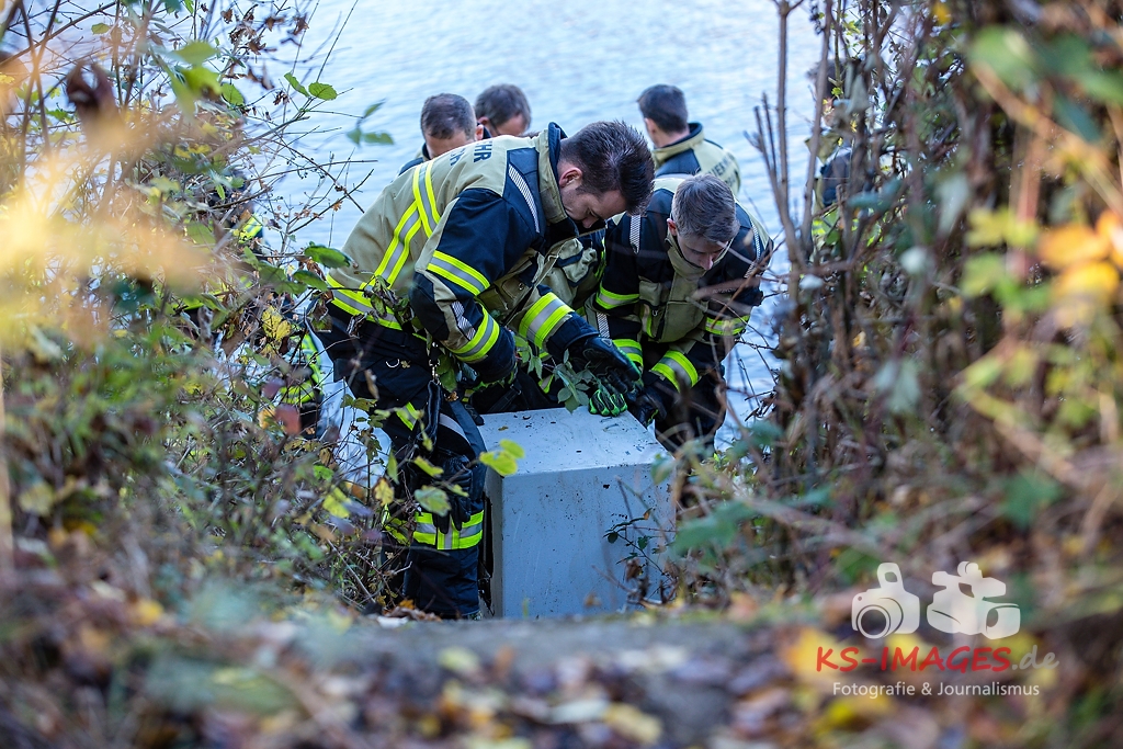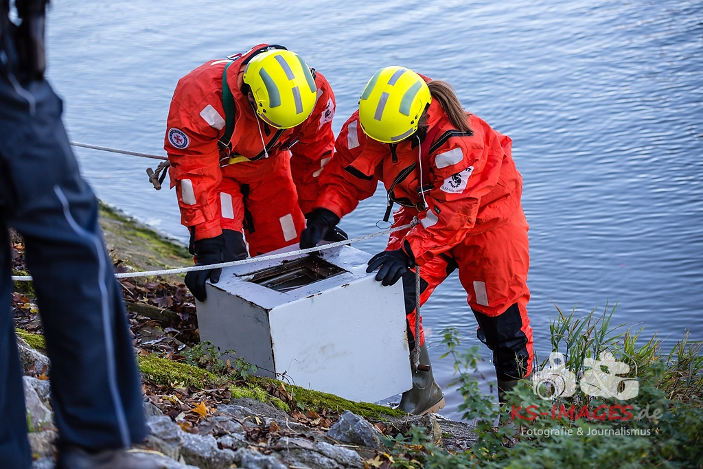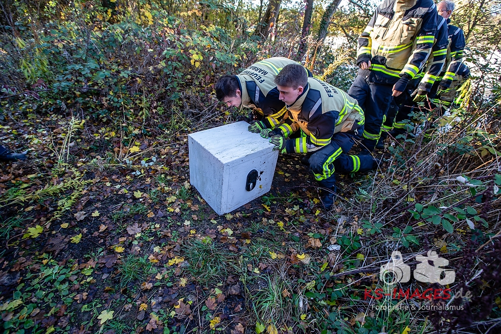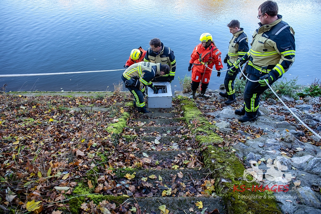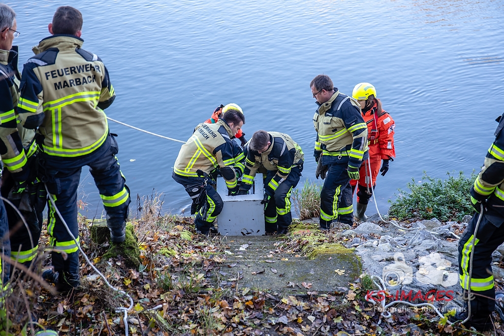 Fotostrecke: Geldschrank im Neckar bei Marbach aufgefunden Feuerwehr Marbach muss den Tresor bergen 01.11.2018