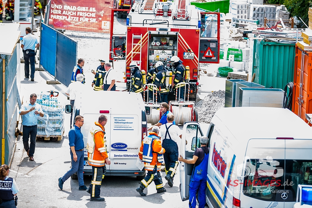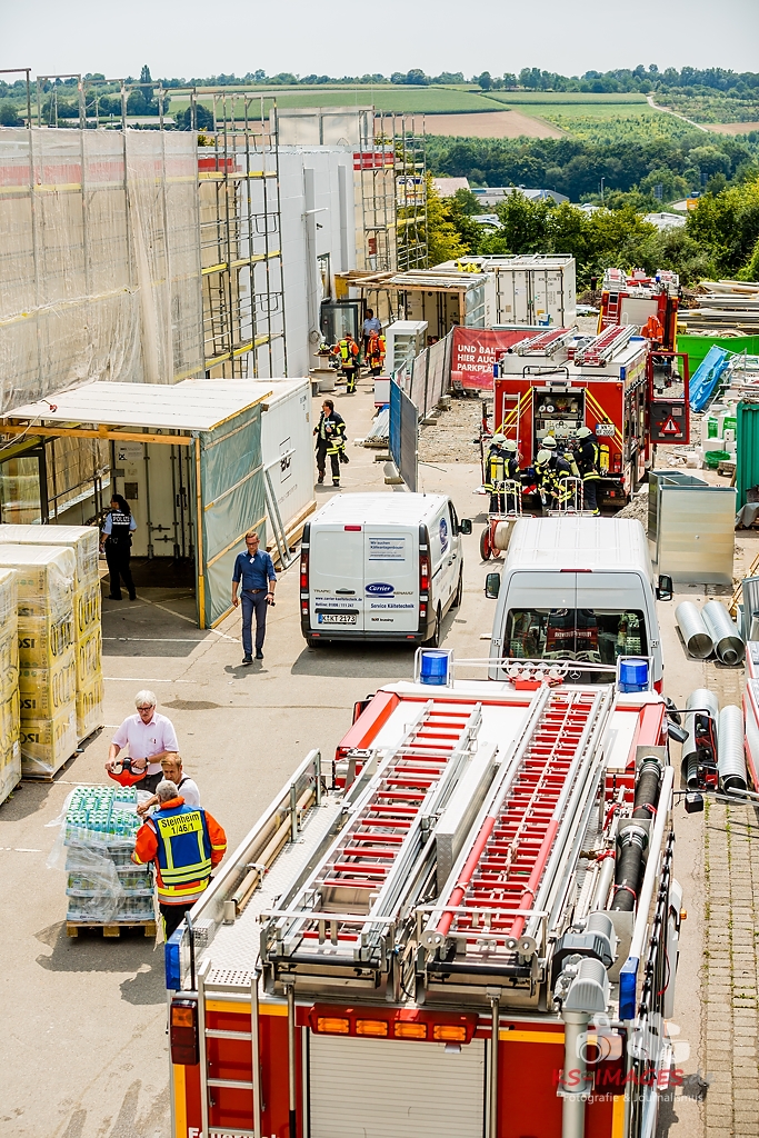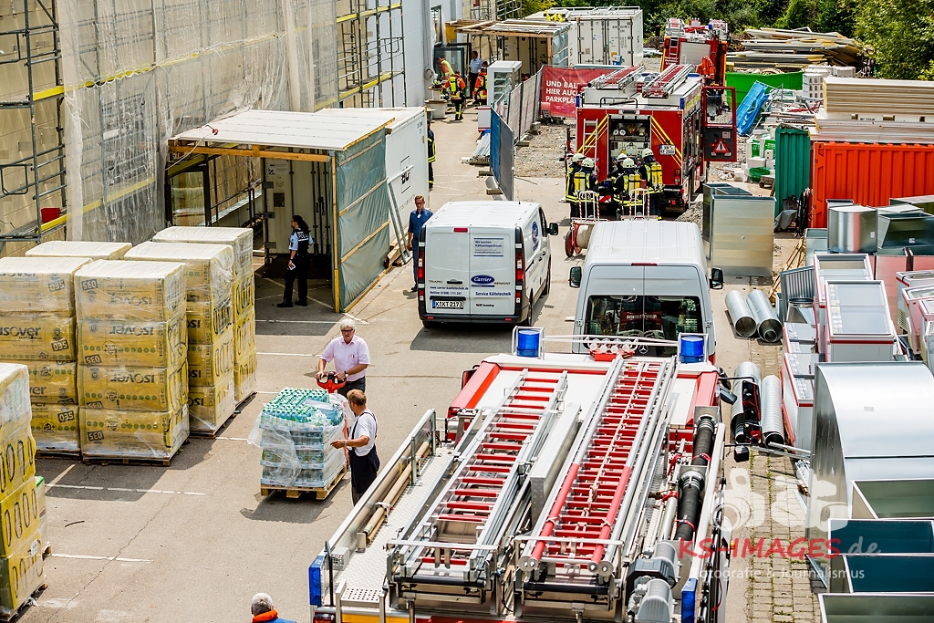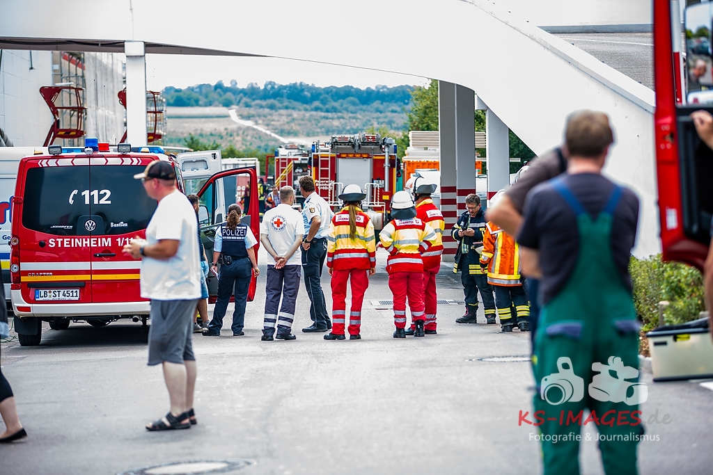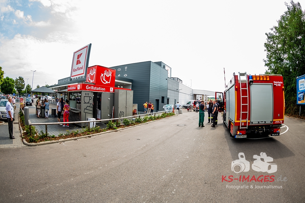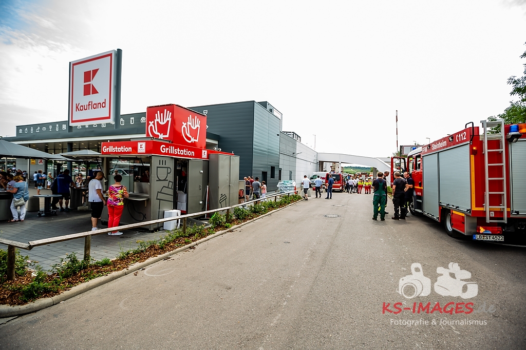 Fotostrecke: Kältemittel-austritt führt zu Evakuierung eines Einkaufmarktes – Feuerwehr dichtet Leck ab Steinheim an der Murr Kaufland Steinbeisstraße 09.08.2018
