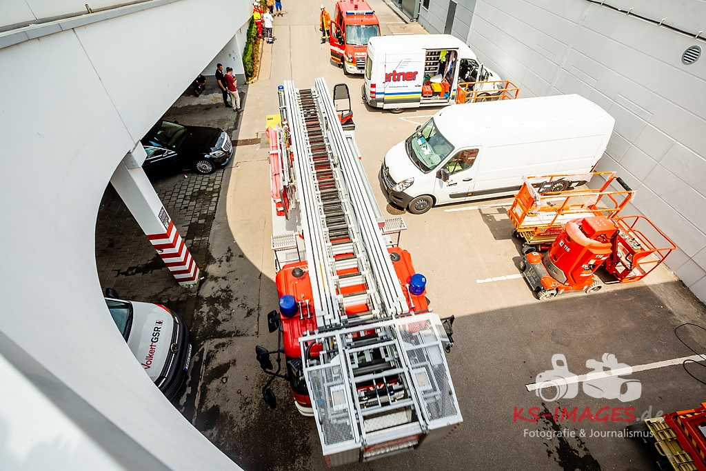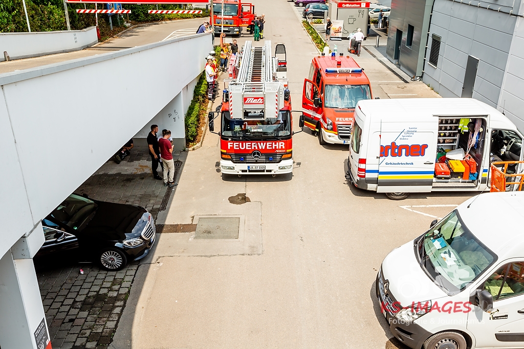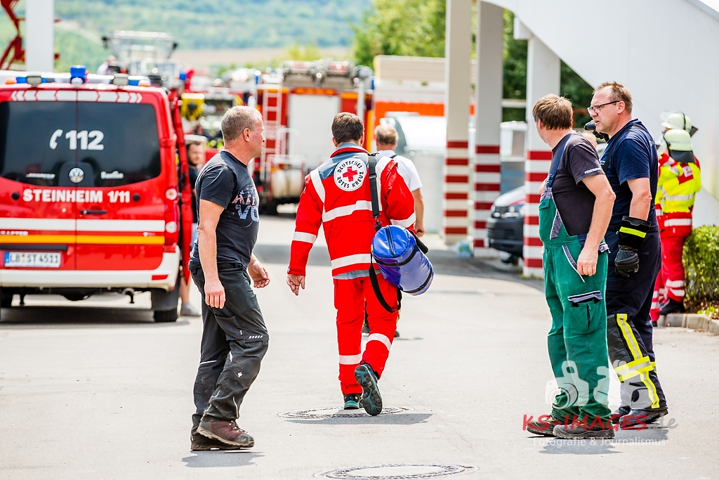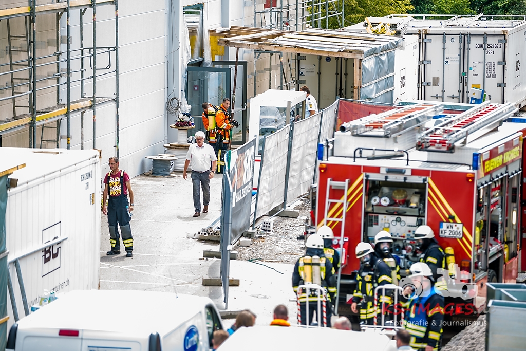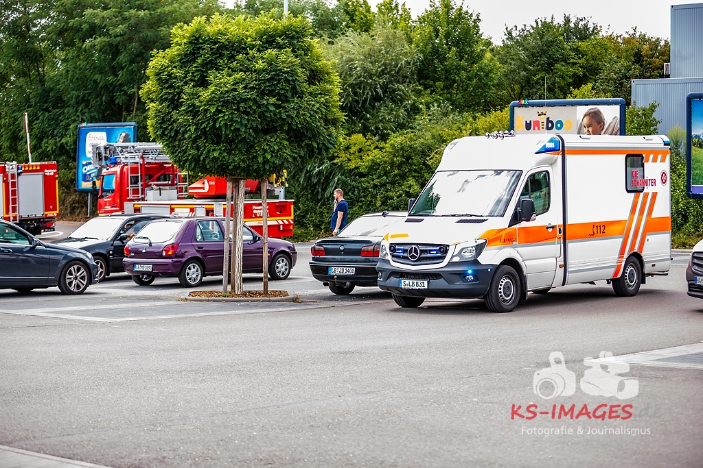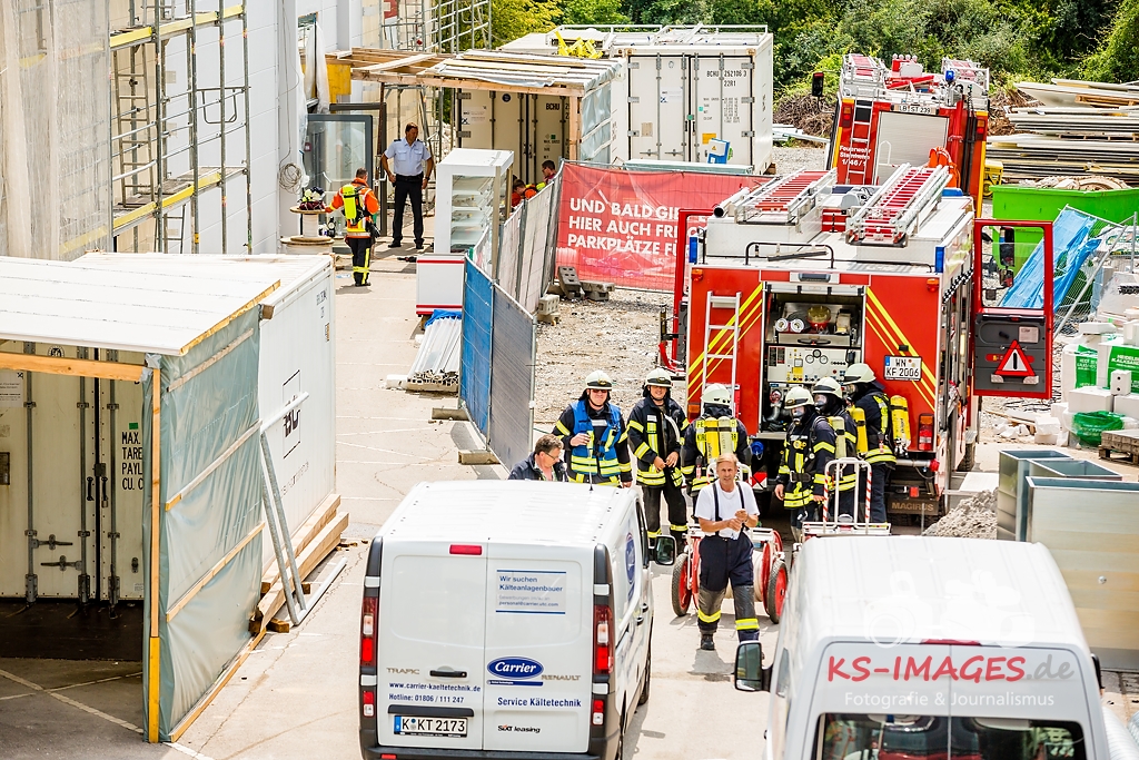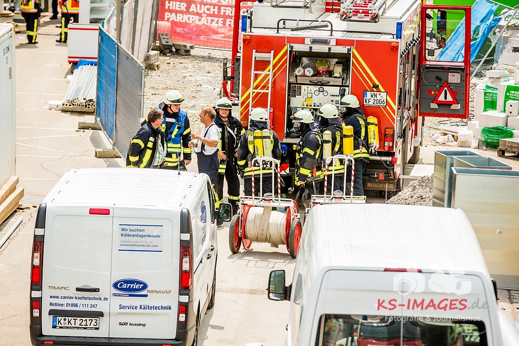 Fotostrecke: Kältemittel-austritt führt zu Evakuierung eines Einkaufmarktes – Feuerwehr dichtet Leck ab Steinheim an der Murr Kaufland Steinbeisstraße 09.08.2018