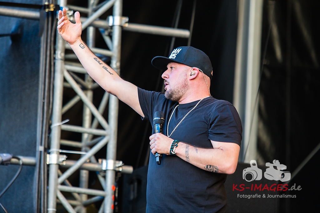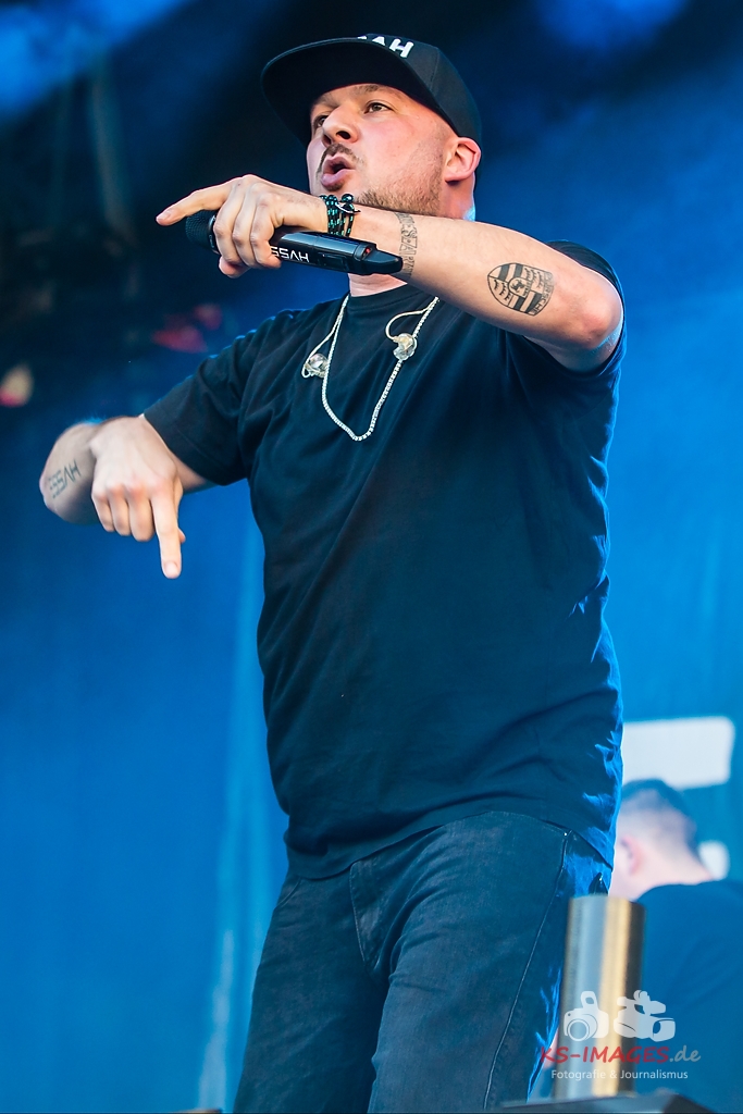 LUDWIGSBURG: KOOL SAVAS: Zwanzig Jahre im Game, Drei Nummer-1-Alben in Folge, Gold- und Platinauszeichnungen in Deutschland, Österreich und in der Schweiz, sowie seit Jahren ausverkaufte Tourneen. Sich auf seinen Lorbeeren auszuruhen und erst mal kürzer zu treten, kommt für einen Kool Savas jedoch nicht in Frage. Dass er den Titel des King of Rap völlig zurecht trägt, hat Kool Savas in der letzten Dekade mehr als eindrucksvoll unter Beweis gestellt. Am 14.11.2014 veröffentlichte Kool Savas sein neues Album „Märtyrer“ und enterte erneut die Charts. Platz 1 in Deutschland und in der Schweiz und Platz 3 in Österreich und eine weitere Goldauszeichnung zeigen das Kool Savas weiterhin einer der relevantesten deutschsprachigen Künstler im Hiphop Genre ist. Wer schon mal ein Kool Savas Konzert besucht hat, der weiß: Dieser Rapper mit dieser ganz besonderen Aura ist der Mittelpunkt des Geschehens, die mächtigste Stimme im Raum, die pure Energie und vor allem der mit Abstand beste Live-MC des Landes. Die Vehemenz, mit der Kool Savas Bühnen abreißt und Hallen zum Kochen bringt, sucht weltweit ihresgleichen, nicht umsonst sind seine Fans nach einem Savas-Auftritt mindestens so durchgeschwitzt und heiser wie der Protagonist selbst. Wenn Kool Savas sich nun anschickt am 7.8. das KSK music open in Schutt und Asche zu legen, sollte man sich rechtzeitig um Tickets bemühen. Denn wenn der King of Rap in der Stadt ist, dann kommen die Rap-Fans – und zwar alle – und zollen dem König Tribut. (Quelle: Veranstalter)