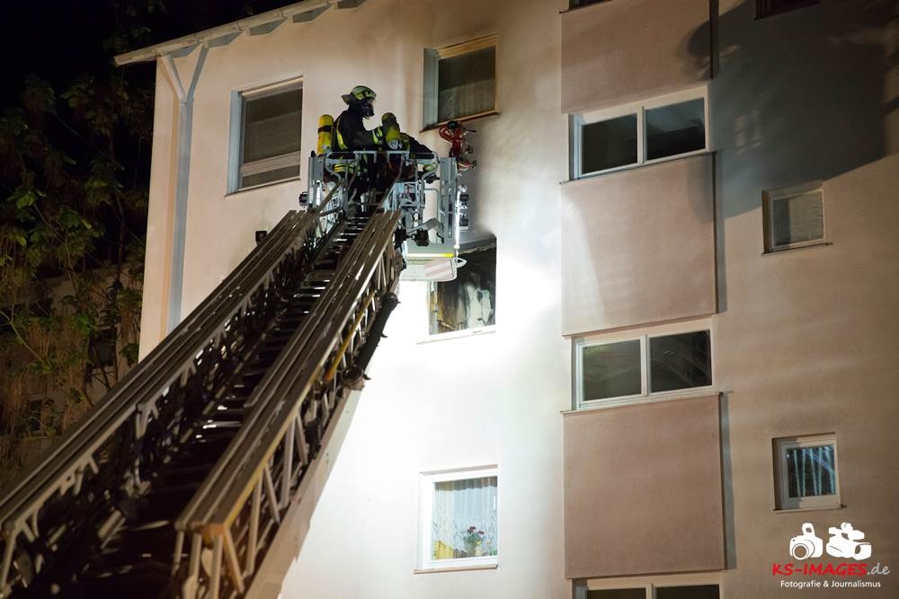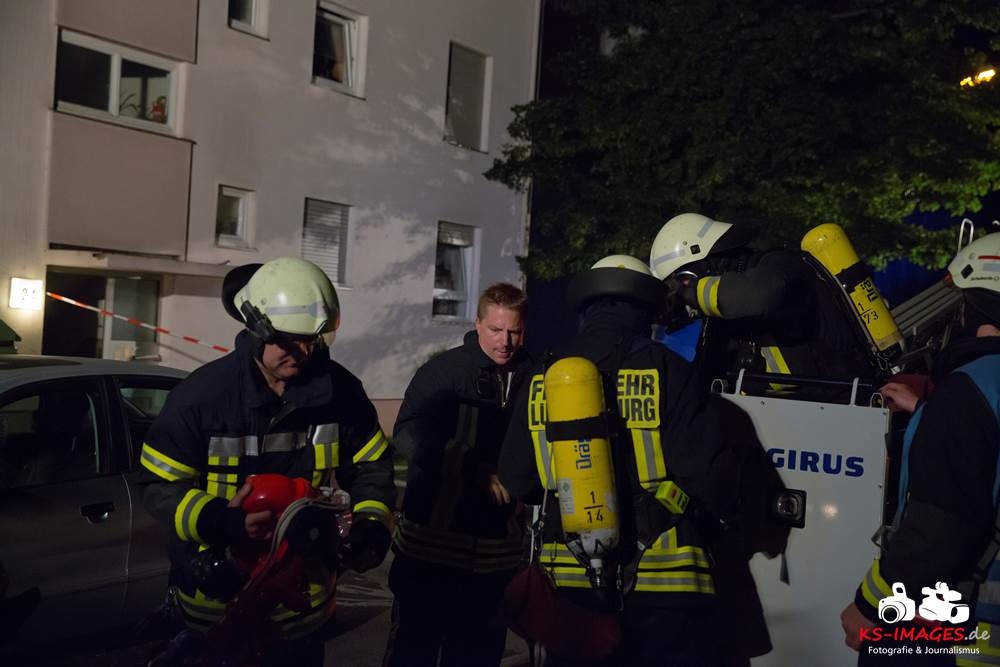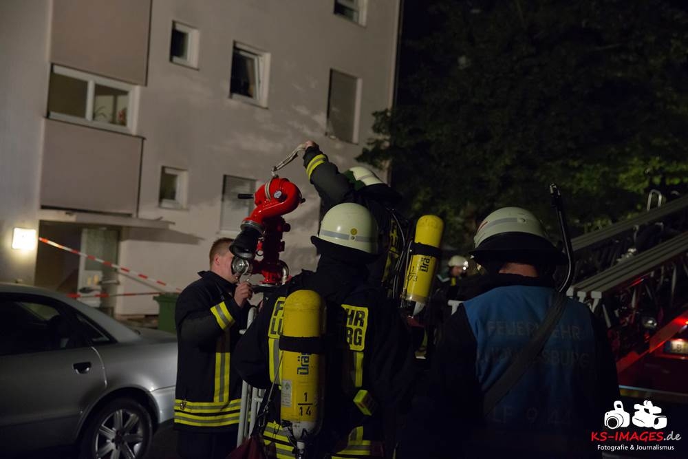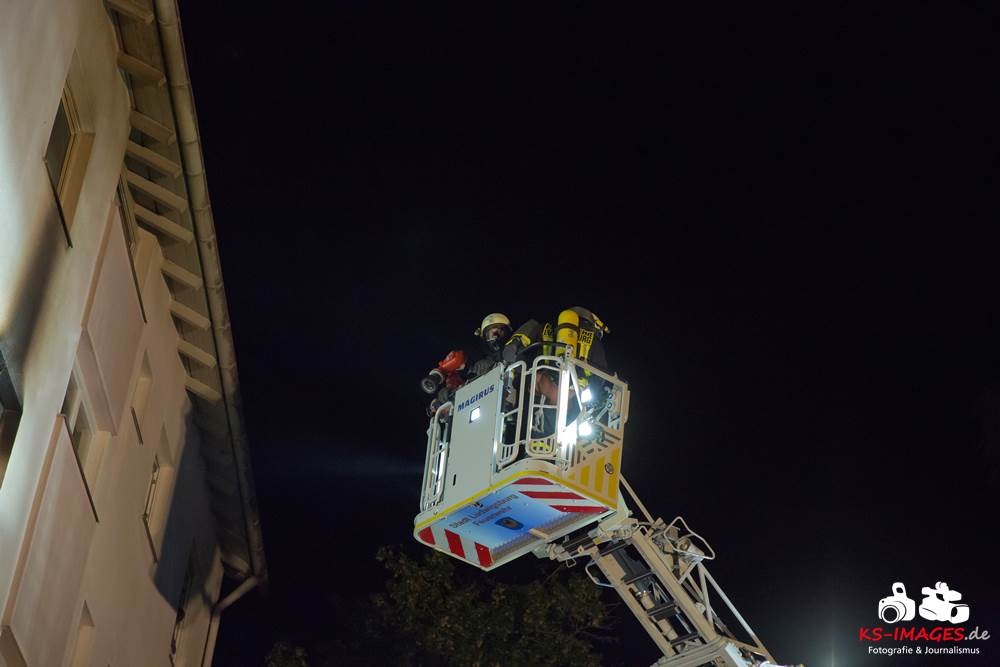 Eine 47-jährige Frau sowie ihr 49-jähriger Freund wurden bei einem Wohnungsbrand in der Laurentiusstraße leicht verletzt. Gegen 01.20 Uhr wachten sie auf Grund von Rauchentwicklung auf und bemerkten in der Küche, dass die Cerankochfelder glühten und verließen daraufhin die Wohnung. Beim Eintreffen der Feuerwehr schlugen die Flammen aus dem Küchenfenster. Zur Brandbekämpfung hatte die Feuerwehr sieben Fahrzeuge sowie 25 Einsatzkräfte eingesetzt und gegen 01.40 Uhr das Feuer gelöscht. Durch den Brand entstand ein Sachschaden von rund 70.000 Euro. Der Rettungsdienst, welcher mit zwei Fahrzeugen vor Ort war, verbachte die Wohnungsinhaberin und ihren Freund mit Verdacht auf Rauchgasvergiftung ins Krankenhaus. Drei in der Wohnung befindliche Katzen konnten gerettet und einer Tierklinik zugeführt werden. Ein Fahrzeug, welches über einem Hydranten parkte, musste zurSeite geschoben werden, wobei dieses leicht beschädigt wurde. Ein weiteres Fahrzeug welches im Kurvenbereich parkte und die Einsatzfahrzeuge der Feuerwehr behinderte wurde noch vor Ort beanstandet. Da die Ermittlungen zur genauen Brandursache noch andauern wurde die Wohnung nach Beendigung der Löscharbeiten versiegelt.