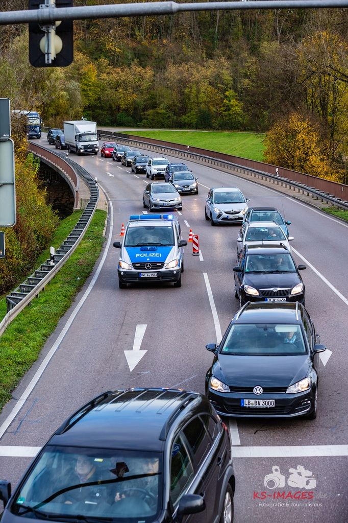 Die Feuerwehren aus Murr und Marbach sind derzeit mit 15 Einsatzkräften am Unfallort und unterstützen die Polizei bei der Verkehrsregelung. Mitarbeitende der Straßenmeisterei Ludwigsburg kümmern sich um die beschädigte Ampelanlage.
