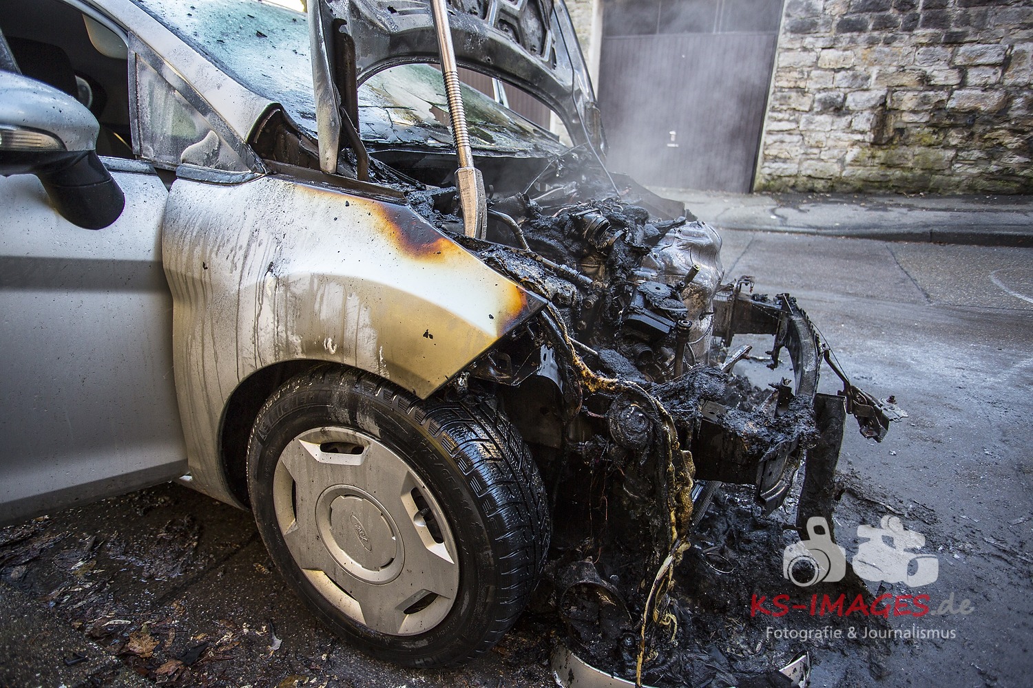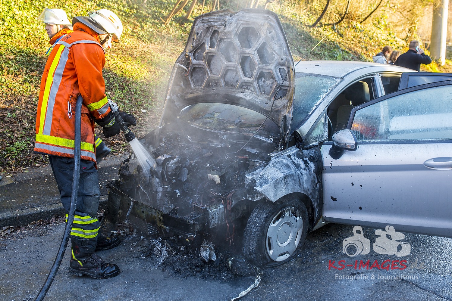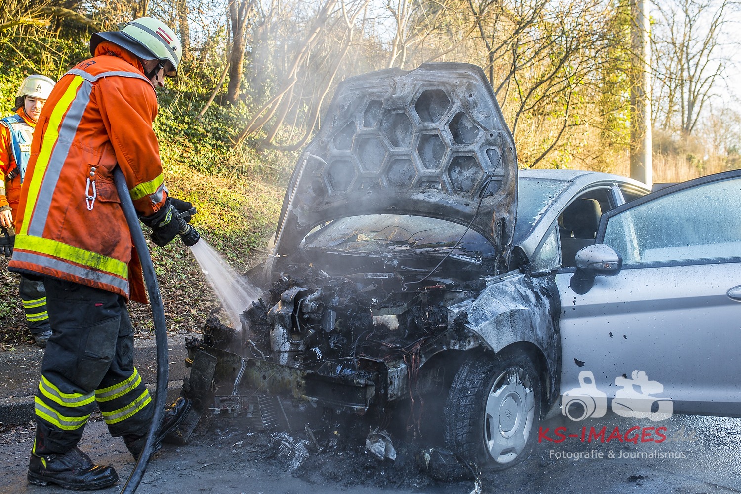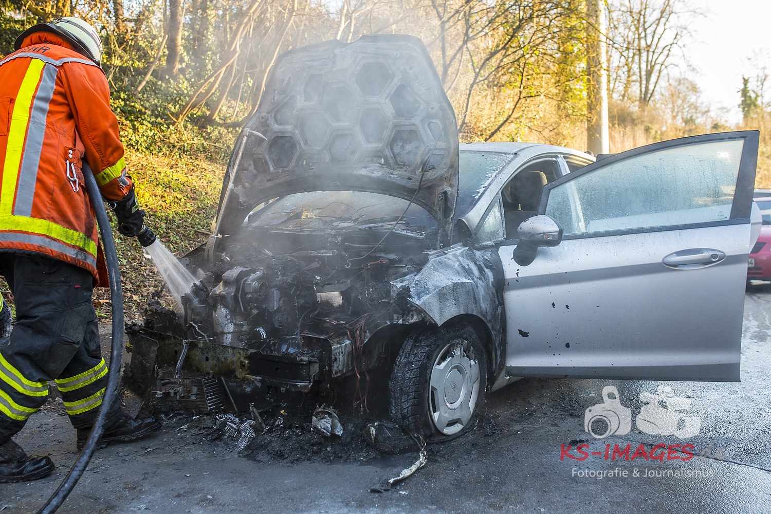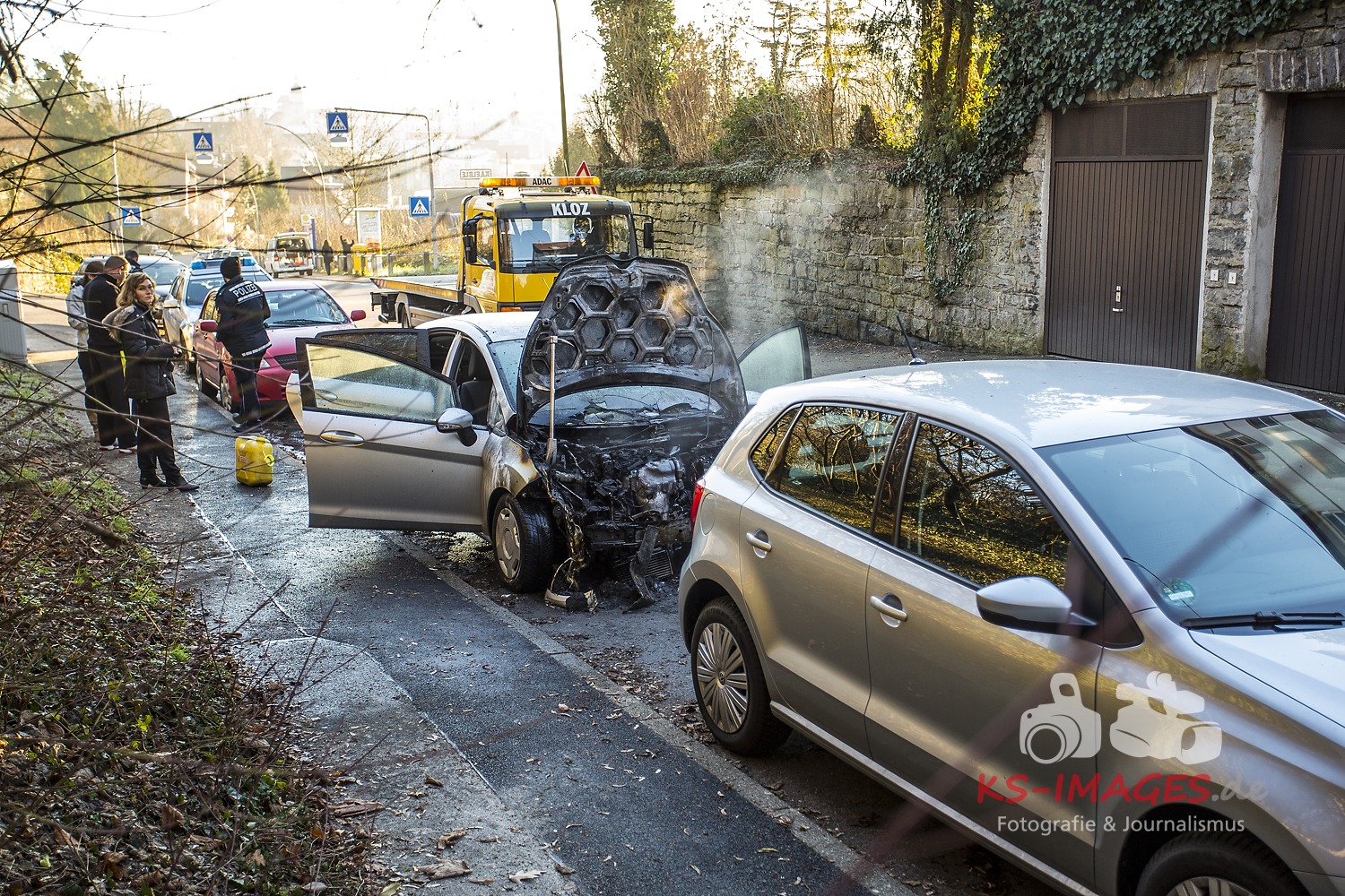 Fotostrecke: Fahrzeugbrand durch technischen Defekt in Backnang Schöntaler Straße 13.01.2015