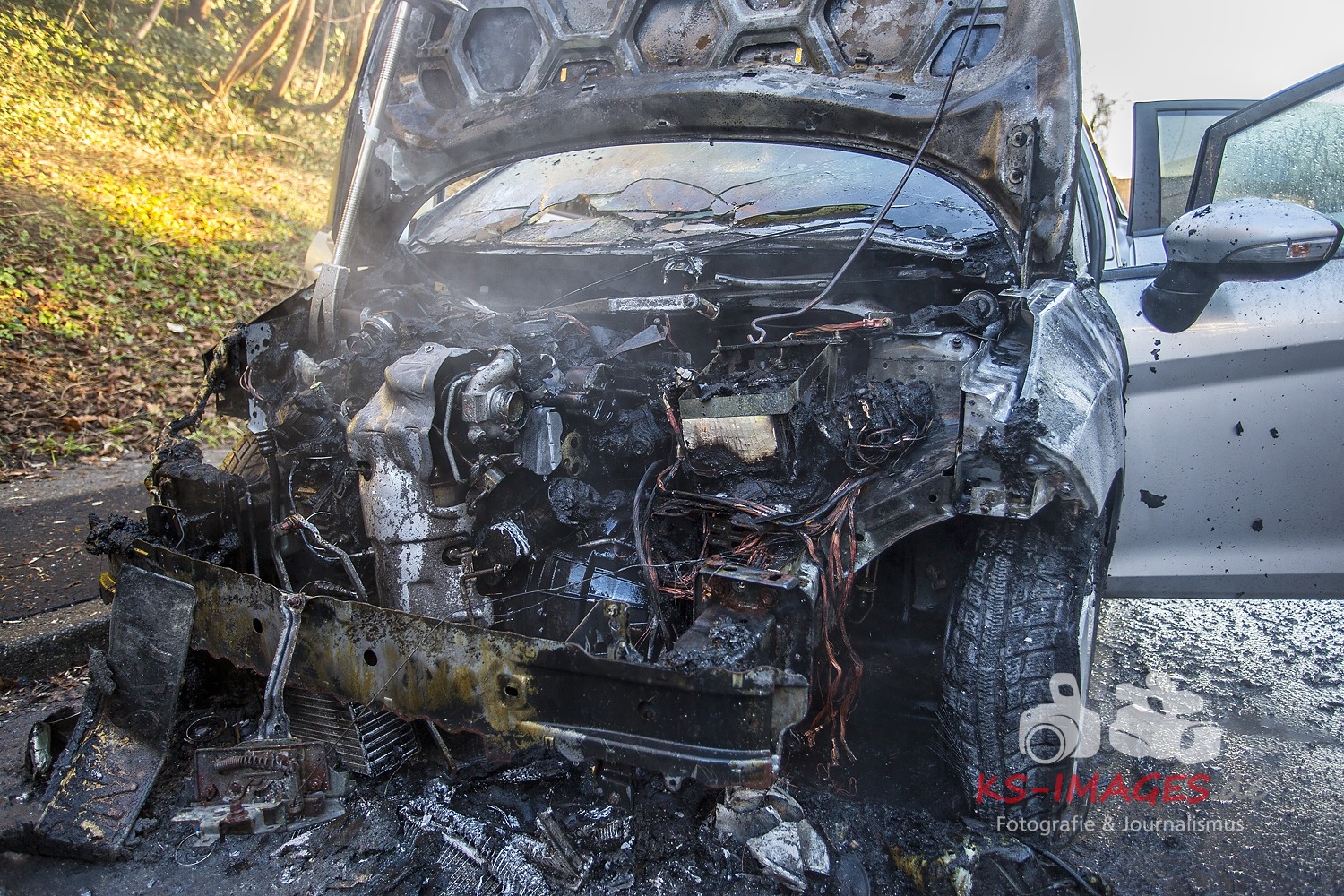 Durch einen technischen Defekt, geriet am Dienstagmorgen, gegen 8:30 Uhr, der Ford einer 29-Jährigen in Brand. Die Frau befuhr die Schöntaler Straße in Richtung Stadtmitte, als sie Rauch aus dem Motorraum wahrnahm. Sie schaffte es noch, ihren Ford am Fahrbahnrand abzustellen, welcher daraufhin in Flammen aufging. Die Feuerwehr Backnang war mit sieben Einsatzkräften im Einsatz, um den Brand zu löschen. Zudem war eine Streife der Polizei vor Ort. Durch den Brand entstand am Ford Totalschaden in Höhe von etwa 10.000 Euro. Ein in der Nähe geparkter VW wurde durch die starke Hitzeentwicklung ebenfalls beschädigt. An diesem beträgt der Sachschaden circa 2500 Euro. Um den Einsatzkräften die reibungslose Brandbekämpfung zu ermöglichen, musste die Schöntaler Straße Zeitweise gesperrt werden.