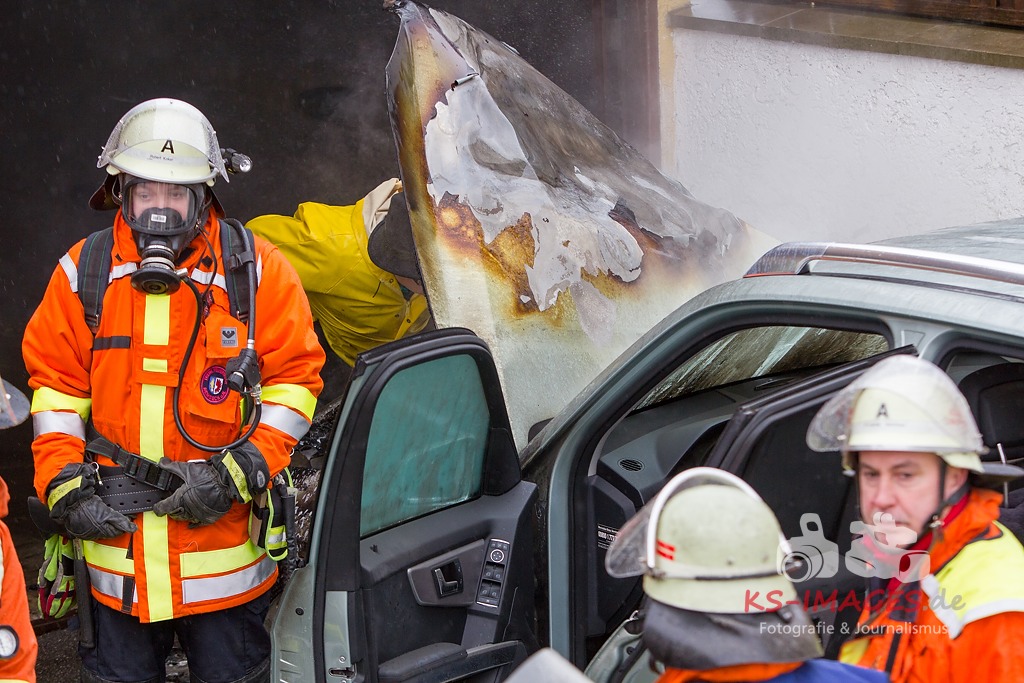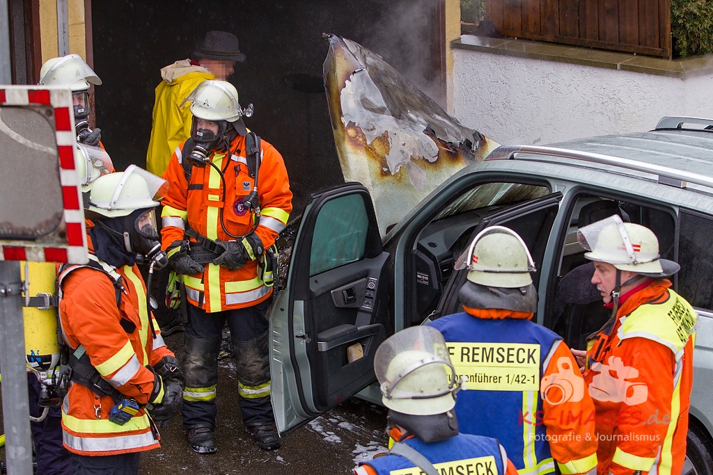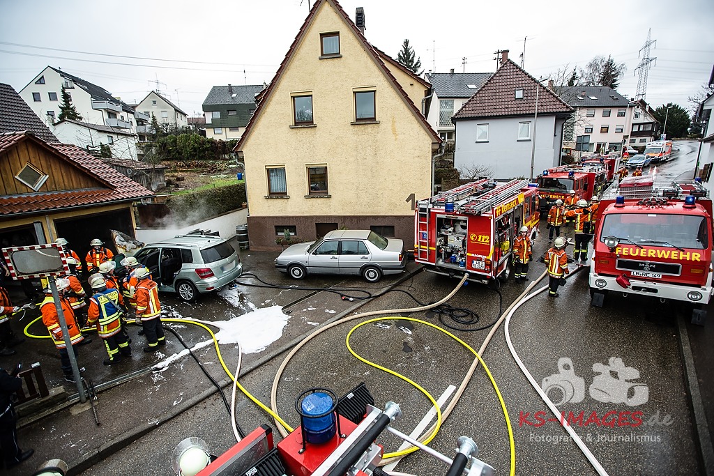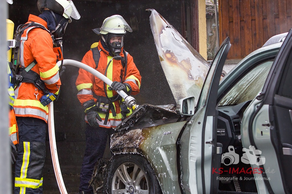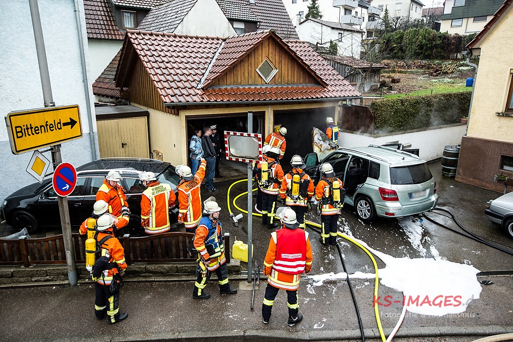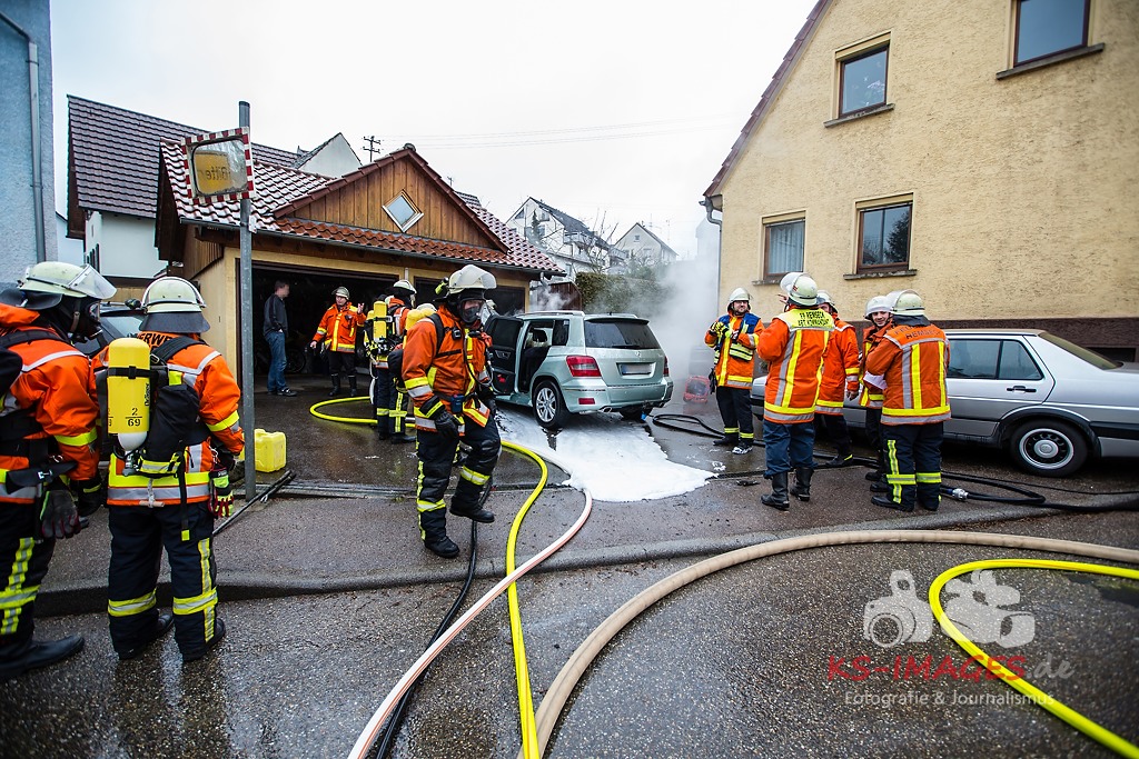 REMSECK: Vermutlich aufgrund eines technischen Defekts entzündete sich am Dienstag gegen 09.45 Uhr ein Mercedes Geländewagen, der in einer Garage in der Hochberger Straße stand, selbst. Die Freiwillige Feuerwehr Remseck rückte daraufhin mit 28 Einsatzkräften und vier Fahrzeugen zum Brandort aus und löschte die Flammen. Am Garagengebäude, an das keine Wohneinheiten angrenzen, entstand glücklicherweise kein Schaden. Allerdings beläuft sich der Sachschaden am PKW auf etwa 25.000 Euro.