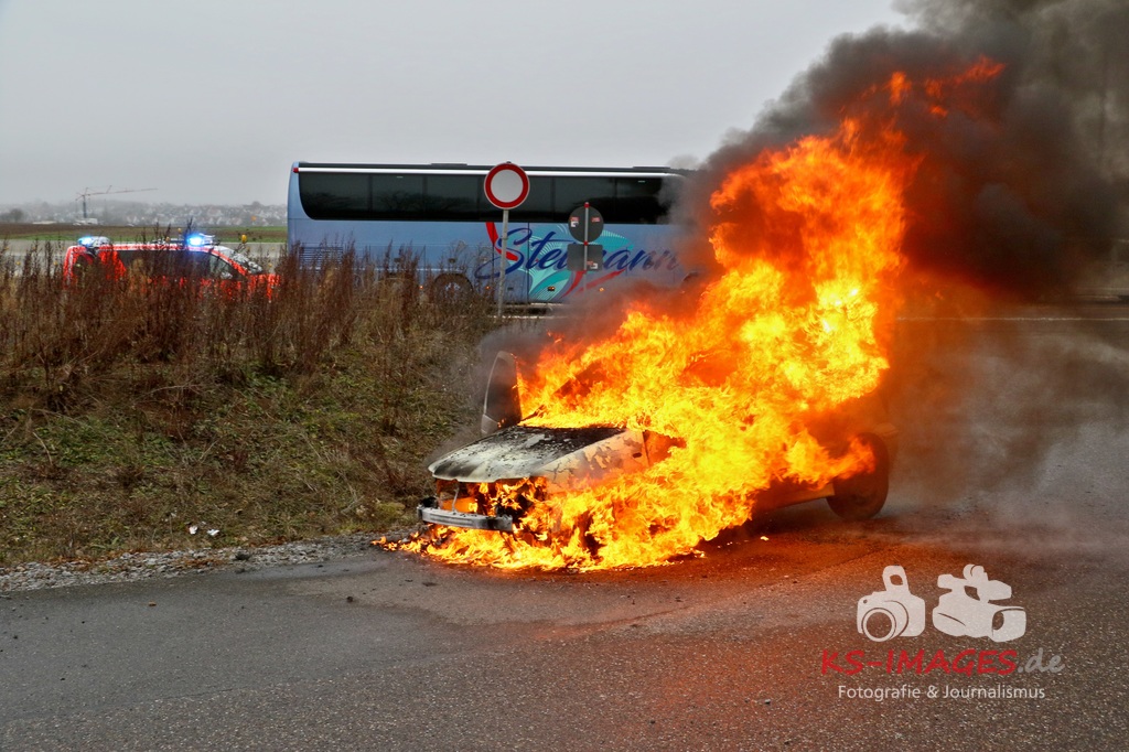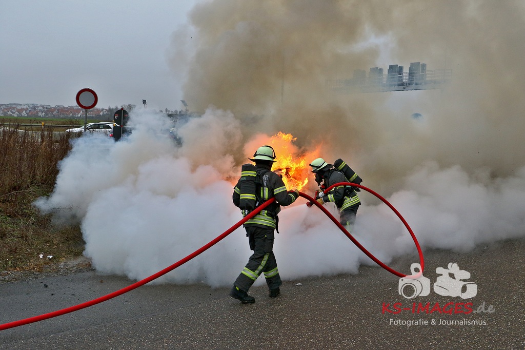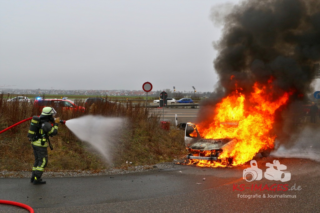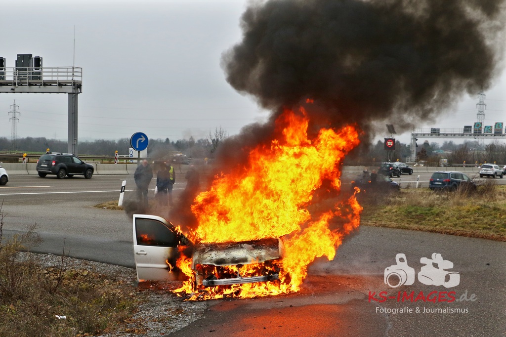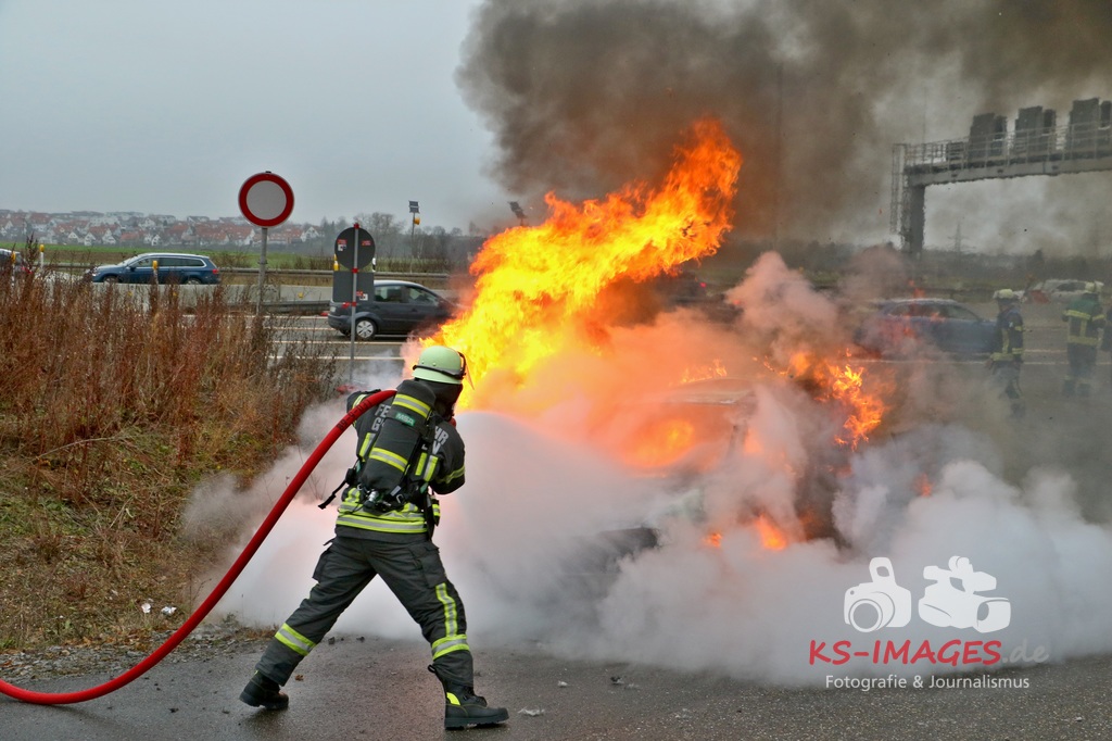 Der 18-jährige Fahrer, der zwischen dem Autobahndreieck Leonberg und der Autobahnanschlussstelle Stuttgart-Feuerbach unterwegs war, stellte seinen Wagen, nachdem er den Brand bemerkt hatte, in der Behelfsumfahrt nach dem Engelbergtunnel ab. Anschließend verließen er und sein Beifahrer das brennende Auto. Der VW brannte nahezu vollständig aus und musste abgeschleppt werden. Durch den Brand wurden auch die Fahrbahn und ein Leitpfosten beschädigt. Die Höhe des entstandenen Sachschadens wird auf etwa 2.000 Euro geschätzt. FOTOS: Andreas Rometsch, Text Polizei Ludwigsburg.
