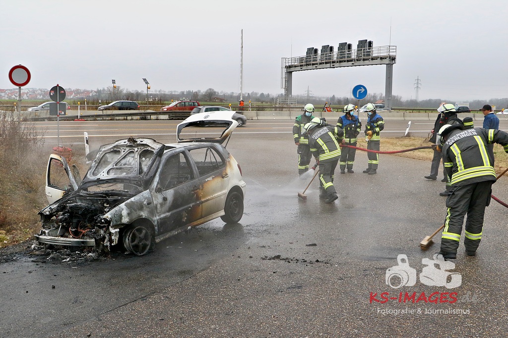 AUTOBAHN A81 GERLINGEN: Zu einem Fahrzeugbrand auf der Bundesautobahn 81 rückte am Montag gegen 05.15 Uhr die Freiwillige Feuerwehr Gerlingen mit vier Fahrzeugen und 16 Wehrleuten aus. Beim Eintreffen der Einsatzkräfte stand ein VW in Vollbrand. Die Wehrleute konnten das Feuer zügig löschen. Vermutlich war ein technischen Defekt ursächlich.