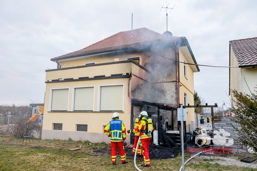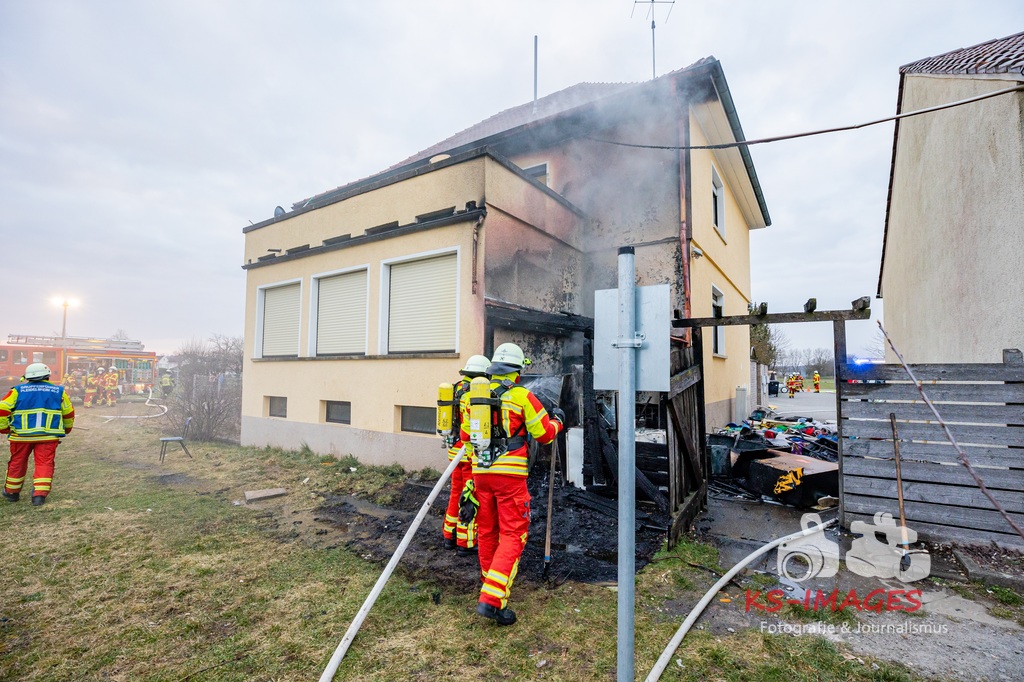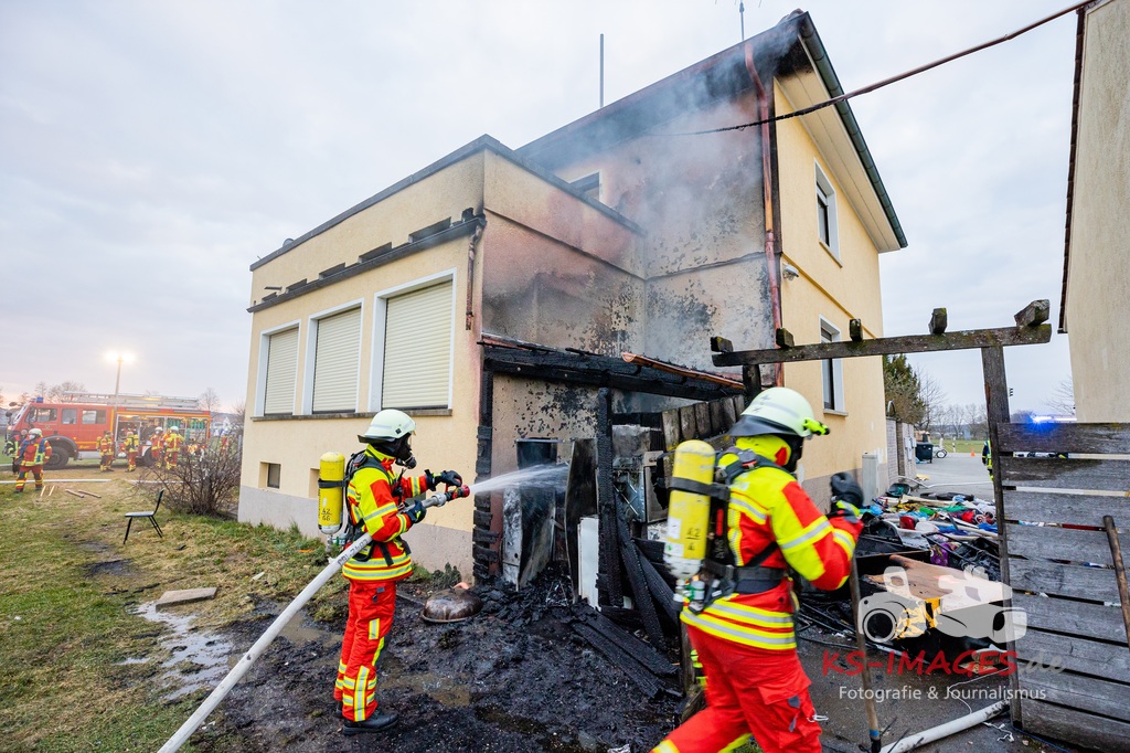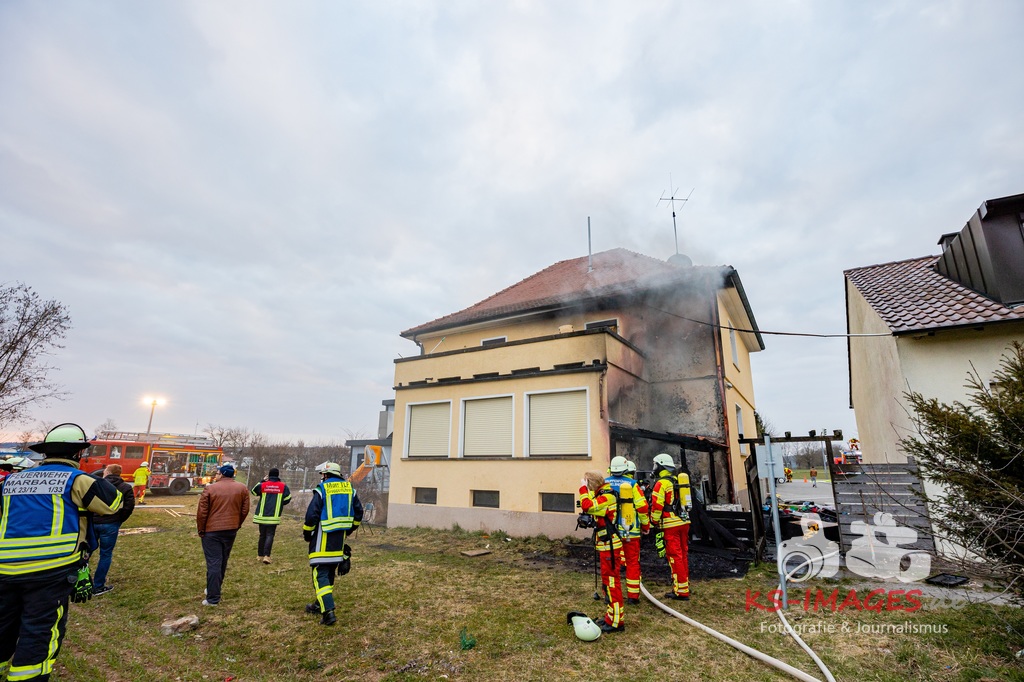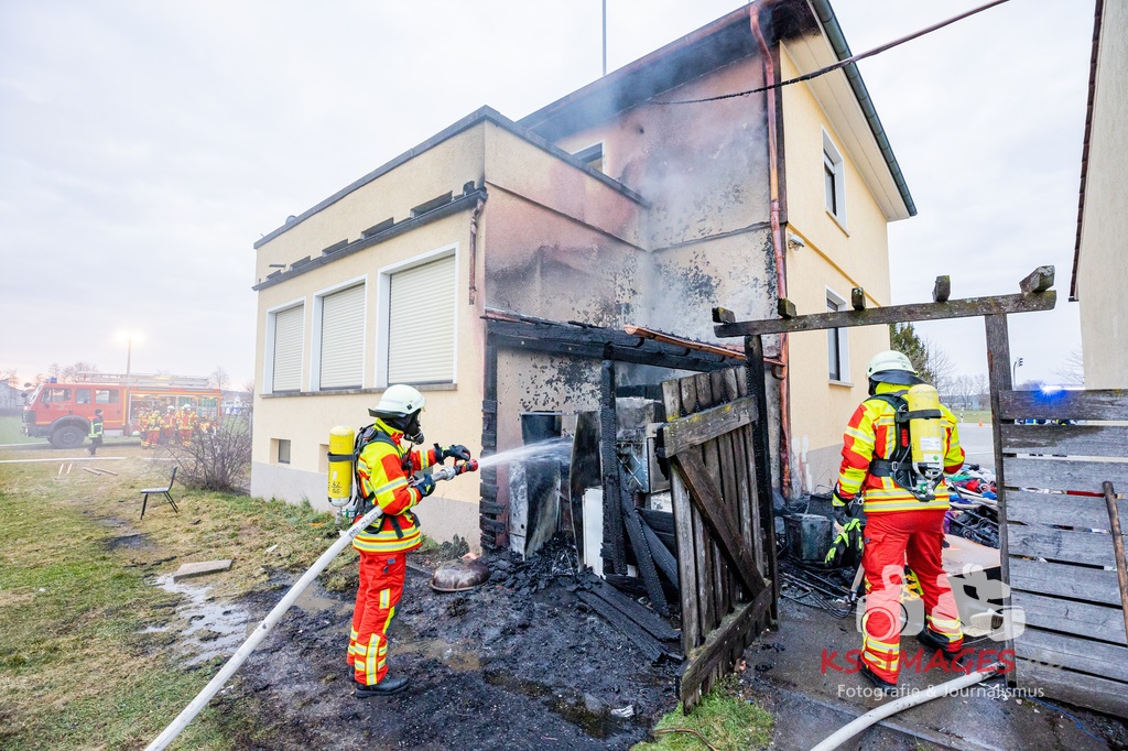 PLEIDELSHEIM: Am frühen Sonntagabend geriet gegen 17.10 Uhr ein neben der Sammelunterkunft in der Marbacher Straße stehender Unterstand aus Holz in Brand. Ursächlich hierfür ist ersten Ermittlungen zufolge ein technischer Defekt an einem Stromverteilerkasten. Der Dachbalken sowie die Fassade der Sammelunterkunft wurden durch die Flammen in Mitleidenschaft gezogen, das Feuer konnte durch das schnelle Eingreifen der Feuerwehr rechtzeitig gelöscht werden.