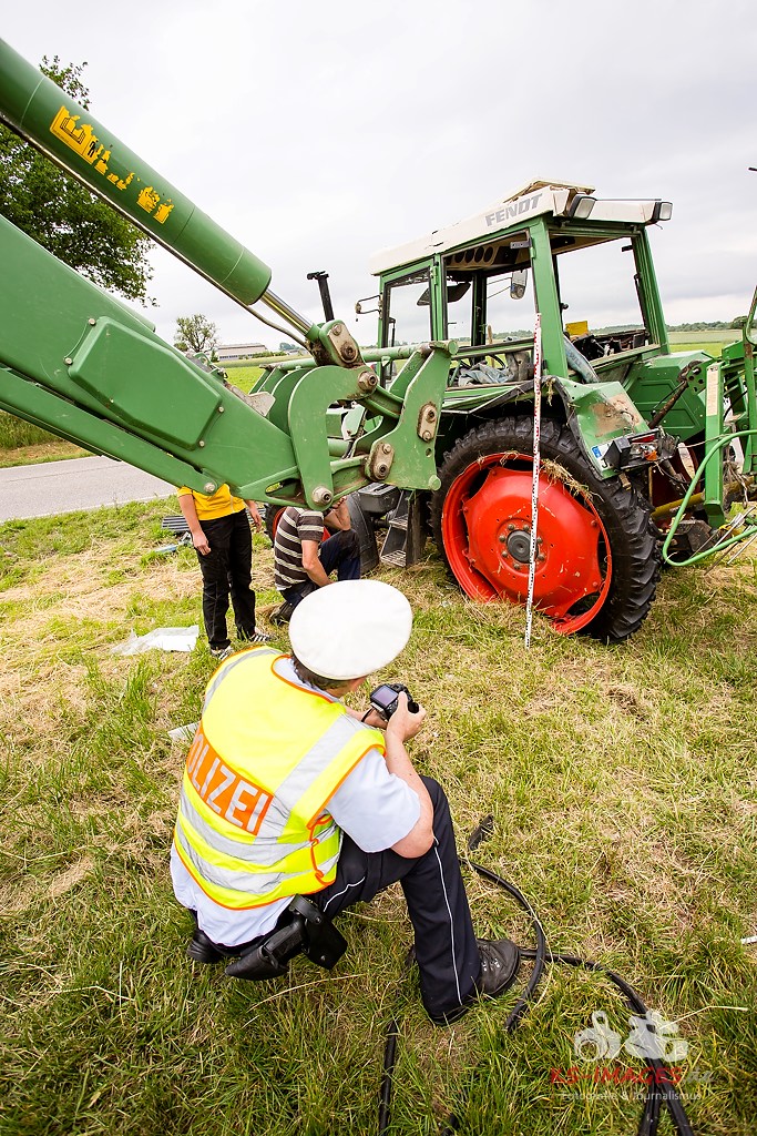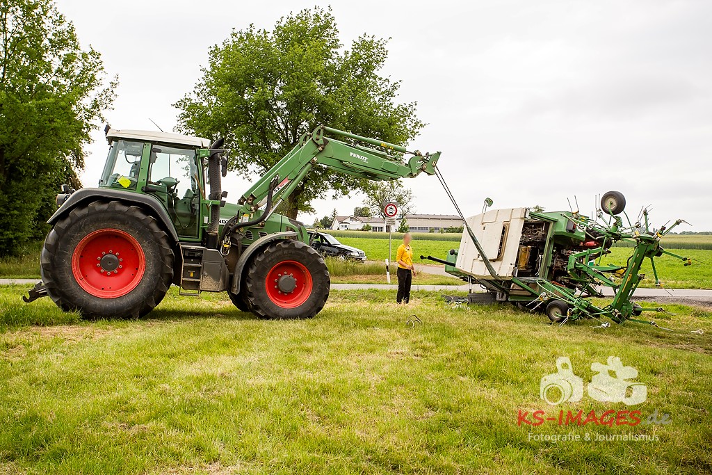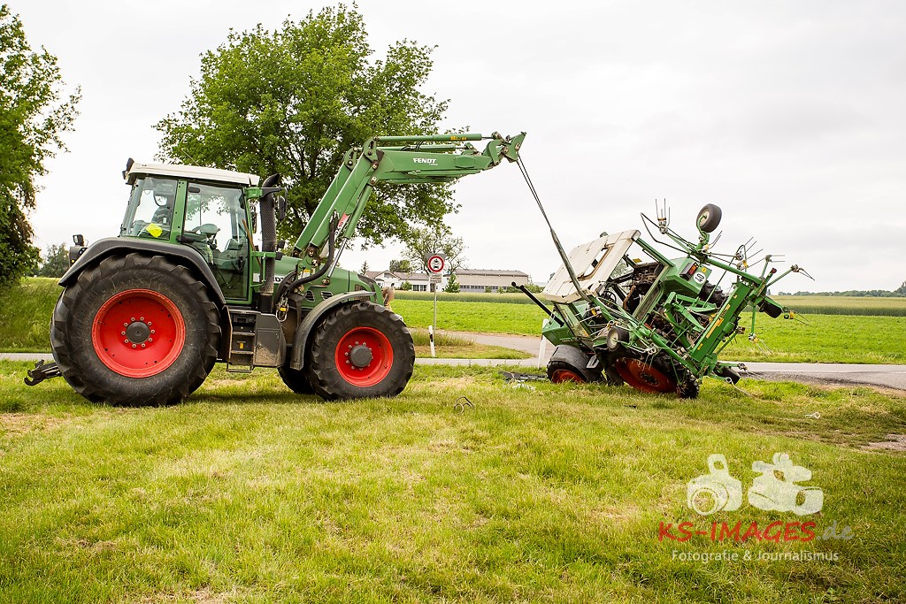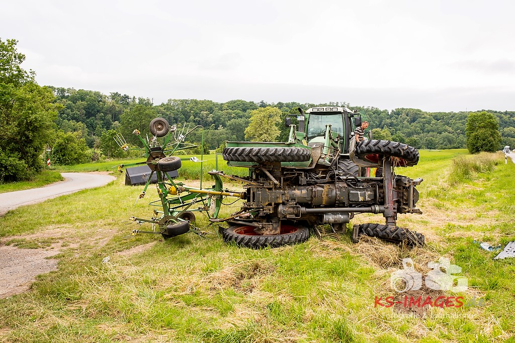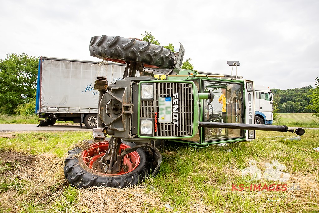 Ludwigsburg: Am 01.06.2015 gegen 11.30 Uhr kam es auf der Bundesstraße 10 im Bereich Vaihingen/Enz zu einem Verkehrsunfall zwischen einem Traktor mit Anhänger und einer Sattelzugmaschine. Der 51-jährige Fahrer der Sattelzugmaschine wollte den vor ihm fahrenden Traktor eines 18-Jährigen überholen, als er in Richtung Pforzheim unterwegs war. Der 18-Jährige wollte während des Überholvorgangs seinerseits nach links auf einen Feldweg abbiegen und stieß mit dem Überholer zusammen. Durch den Aufprall kippte der Traktor nach rechts auf die Seite, wobei sich der 18-Jährige schwer verletzte und vom Rettungsdienst in ein Krankenhaus gebracht wurde. Der Fahrer der Sattelzugmaschine blieb unverletzt. Der umgekippte Traktor wurde mit einem weiteren Traktor wieder auf die Räder gestellt. Der Gesamtschaden liegt bei etwa 15.000 Euro.