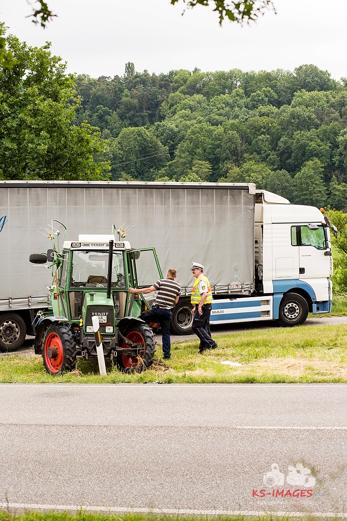 Sattelzug crasht in Traktor B10 01.06.2015