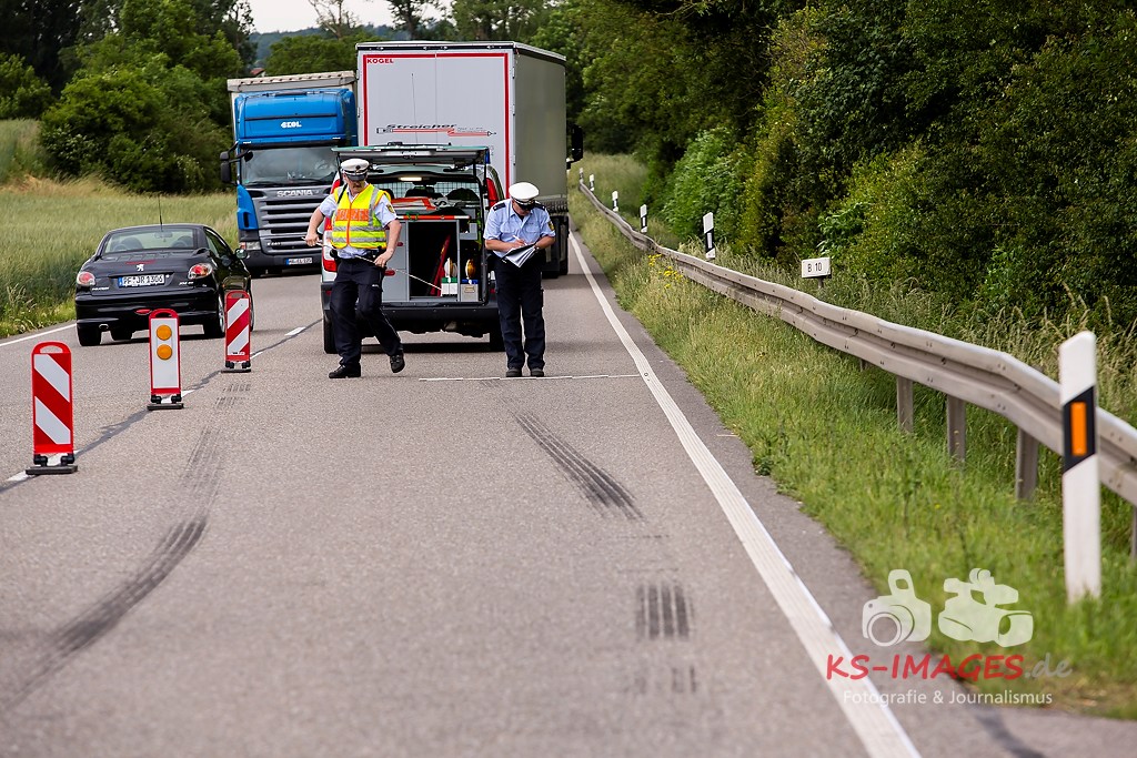 Fotostrecke: Sattelzug crasht in Traktor welcher abbiegen wollte B10 Vaihingen Enz. 01.06.2015