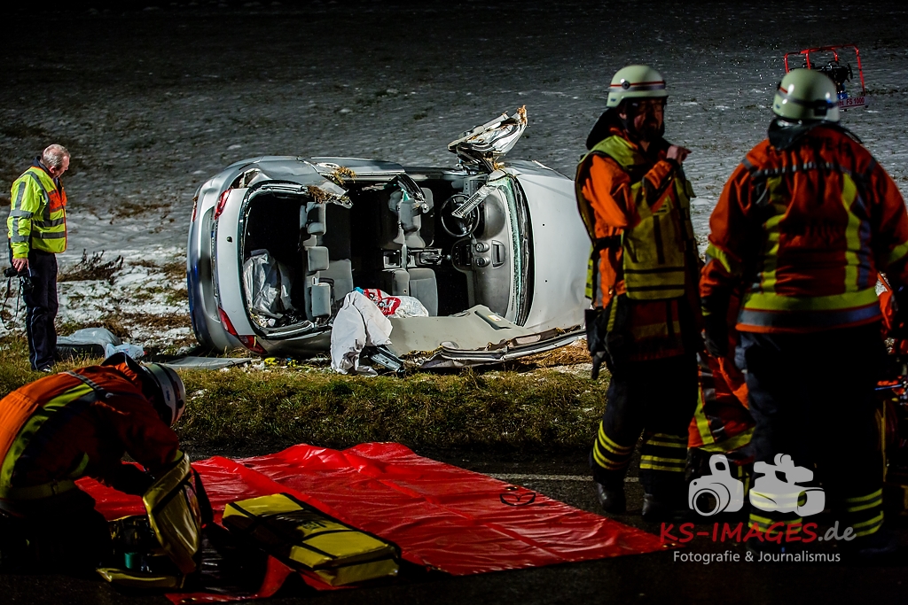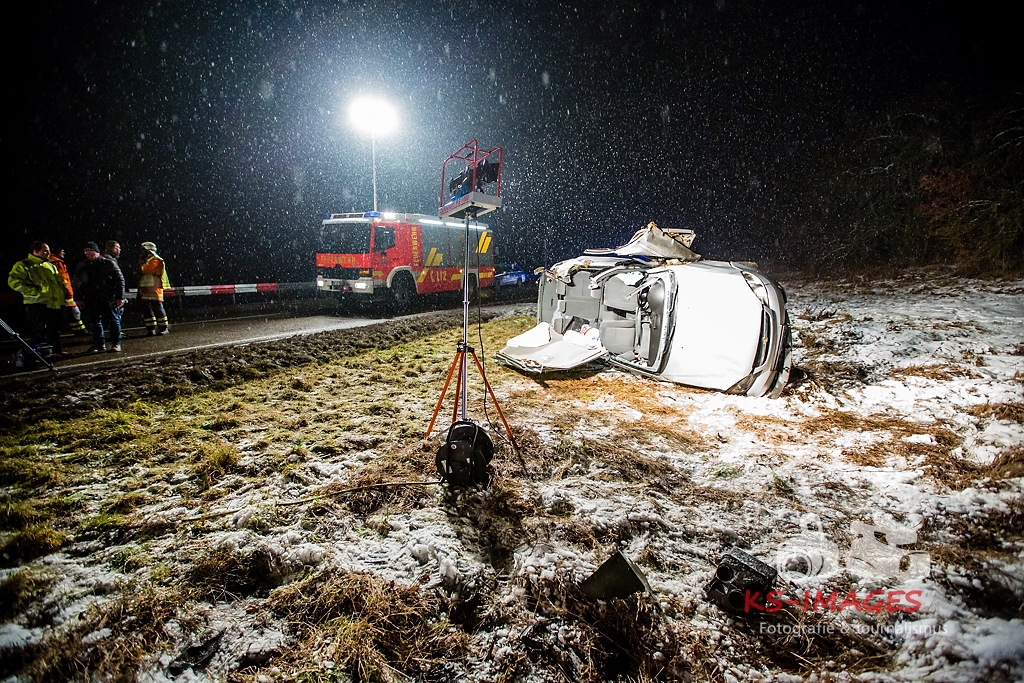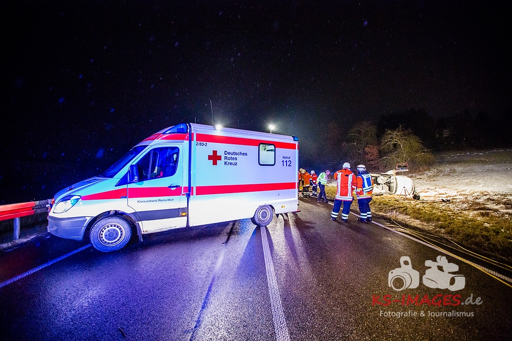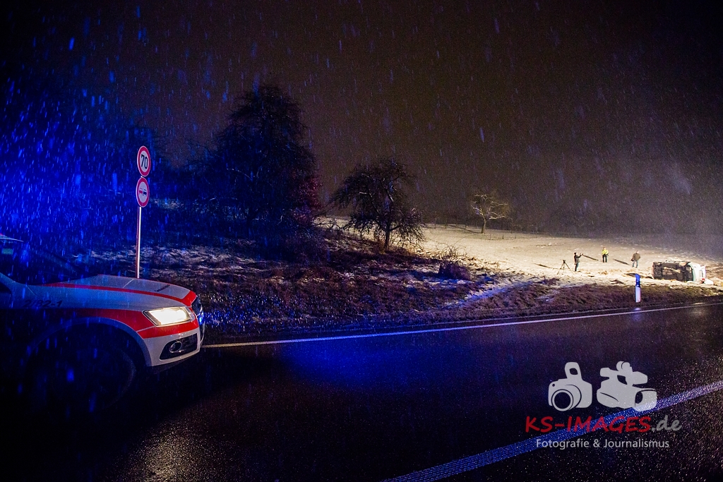 BACKNANG: Am Dienstag, 10.01.2017, um 21.30 Uhr befuhr ein 23 Jahre alter Chevrolet-Fahrer die Bundesstraße 14 von Stuttgart in Richtung Schwäbisch Hall. Auf dem Murrtalviadukt in Backnang geriet der Mann mit seinem Pkw aufgrund Eisglätte ins Schleudern und schließlich nach rechts von der Fahrbahn ab. In der Folge überschlug sich der Pkw und blieb auf der Beifahrerseite liegen. Der Fahrer wurde eingeklemmt und musste von der Feuerwehr befreit werden. Er wurde schwerverletzt in eine Klinik eingeliefert. Am Pkw entstand Totalschaden in Höhe von ca. 5.000 Euro. Die B 14 musste im Bereich des Murrtalviaduktes für die Dauer der Bergung / Unfallaufnahme ca. 2 Stunden voll gesperrt werden. Eine örtliche Umleitung war eingerichtet. Am Einsatz beteiligt waren insgesamt vier Streifenwagen der Polizei, 2 Rettungswagen, 1 Notarzt sowie die Feuerwehr Backnang mit 3 Fahrzeugen und 20 Mann.