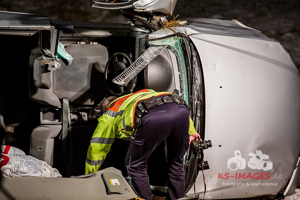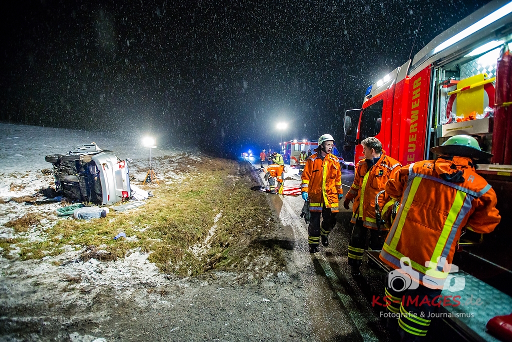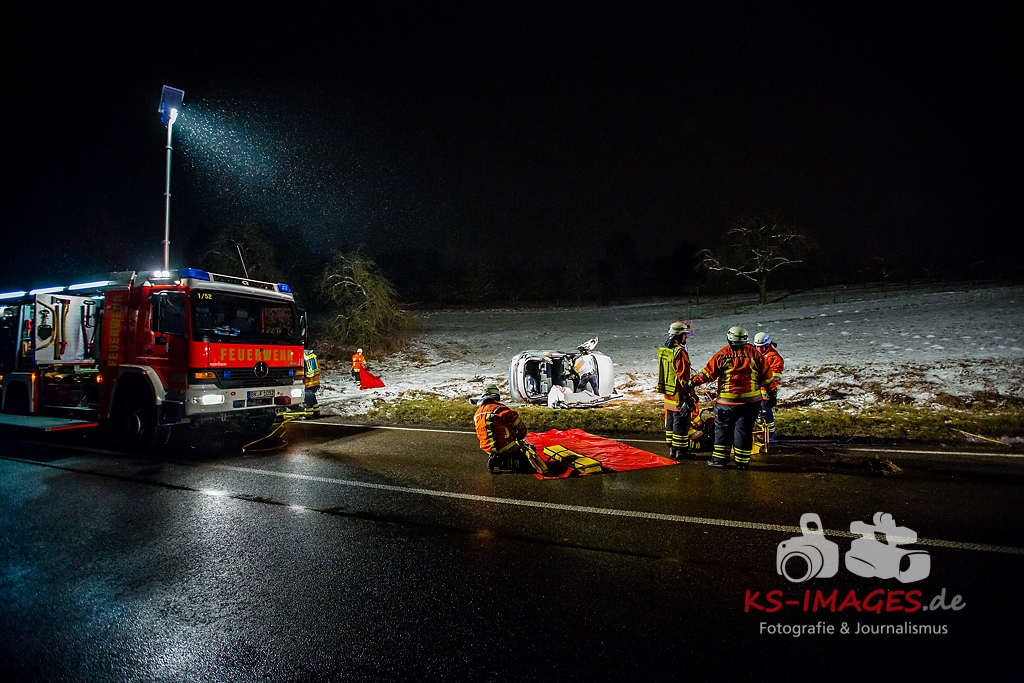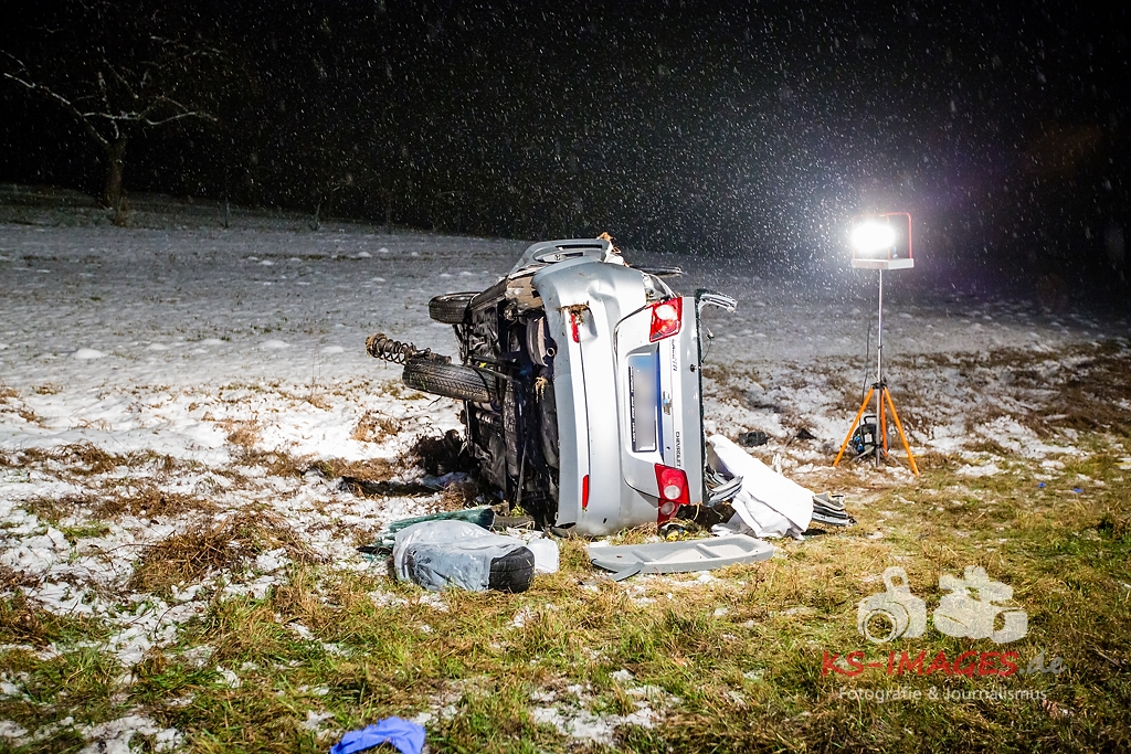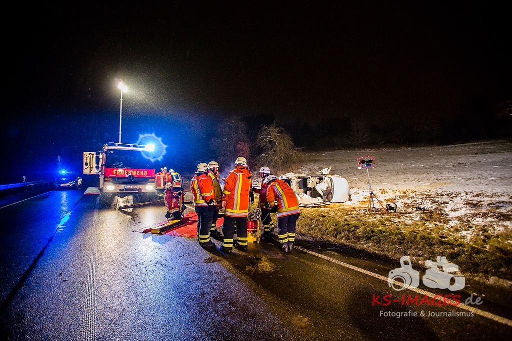 BACKNANG: Am Dienstag, 10.01.2017, um 21.30 Uhr befuhr ein 23 Jahre alter Chevrolet-Fahrer die Bundesstraße 14 von Stuttgart in Richtung Schwäbisch Hall. Auf dem Murrtalviadukt in Backnang geriet der Mann mit seinem Pkw aufgrund Eisglätte ins Schleudern und schließlich nach rechts von der Fahrbahn ab. In der Folge überschlug sich der Pkw und blieb auf der Beifahrerseite liegen. Der Fahrer wurde eingeklemmt und musste von der Feuerwehr befreit werden. Er wurde schwerverletzt in eine Klinik eingeliefert. Am Pkw entstand Totalschaden in Höhe von ca. 5.000 Euro. Die B 14 musste im Bereich des Murrtalviaduktes für die Dauer der Bergung / Unfallaufnahme ca. 2 Stunden voll gesperrt werden. Eine örtliche Umleitung war eingerichtet. Am Einsatz beteiligt waren insgesamt vier Streifenwagen der Polizei, 2 Rettungswagen, 1 Notarzt sowie die Feuerwehr Backnang mit 3 Fahrzeugen und 20 Mann.