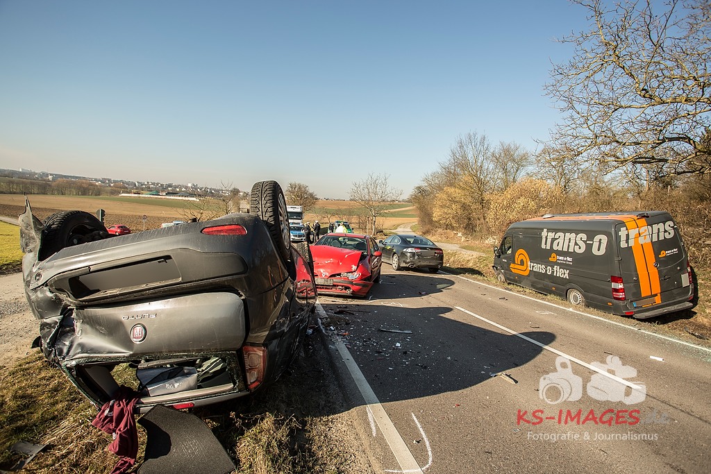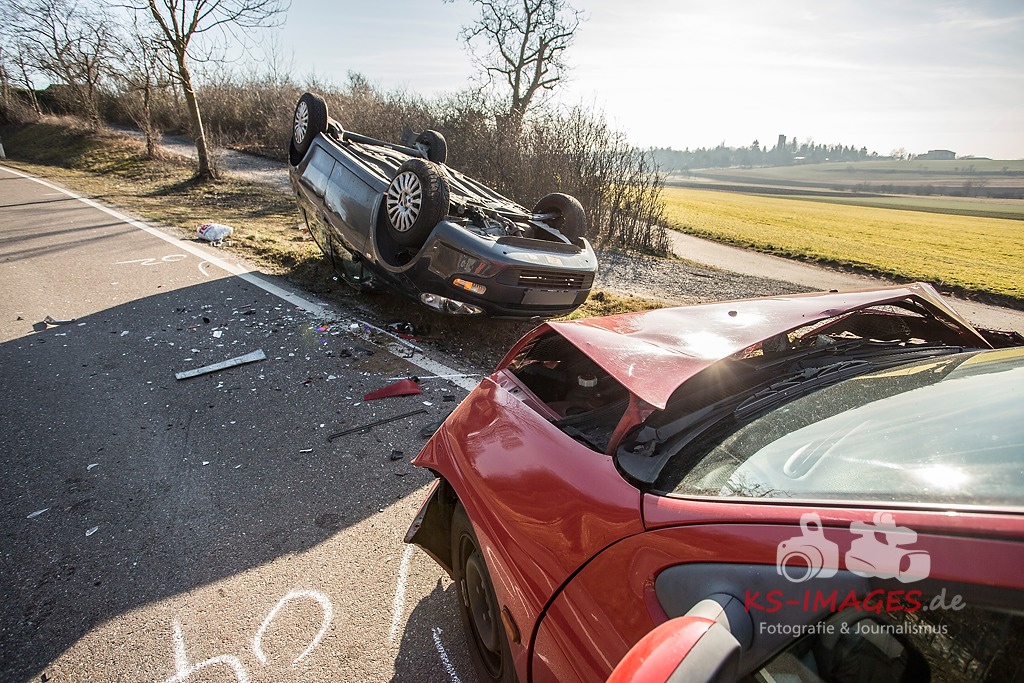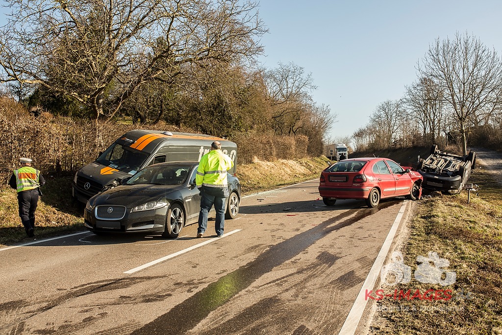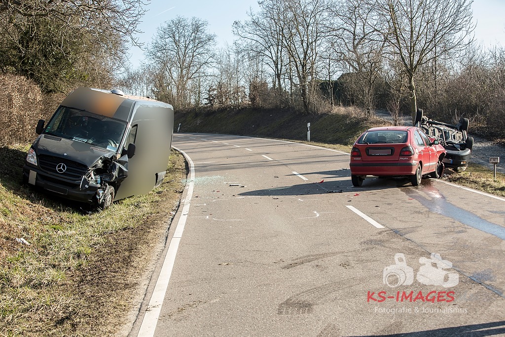Fotostrecke: Schwerer Unfall mit 4 Fahrzeugen auf der K1671 zwischen Tamm und Markgröningen 09.03.2015