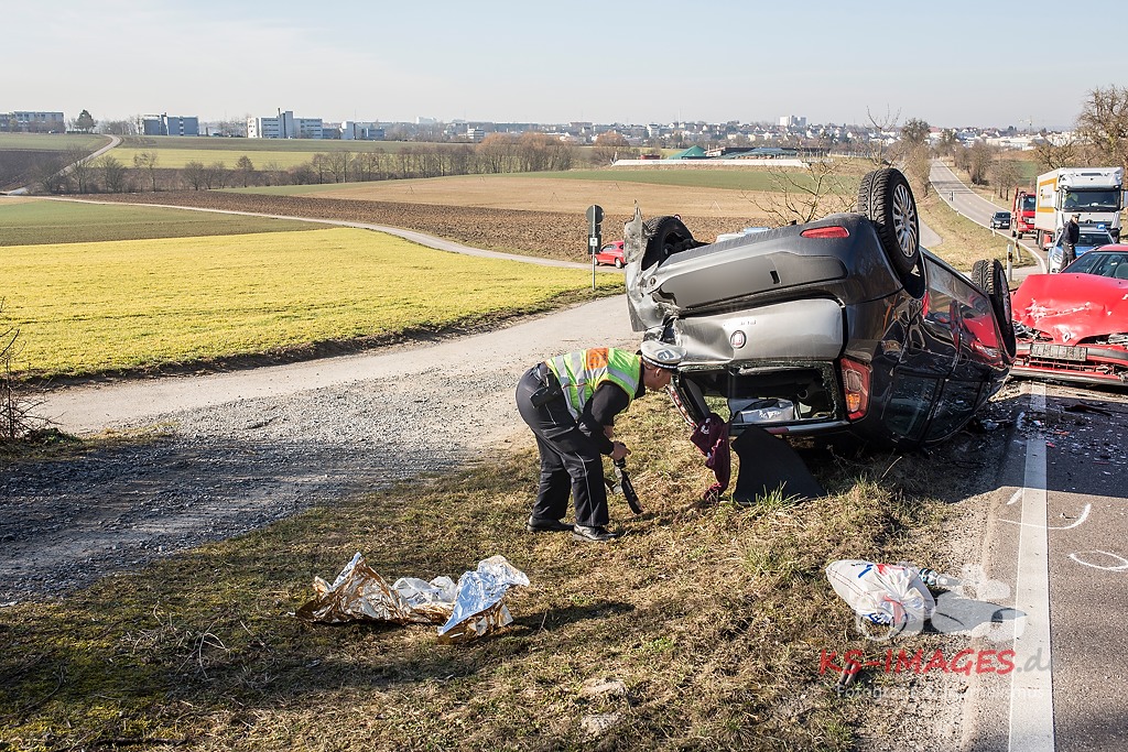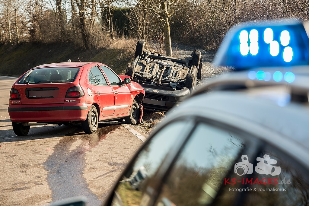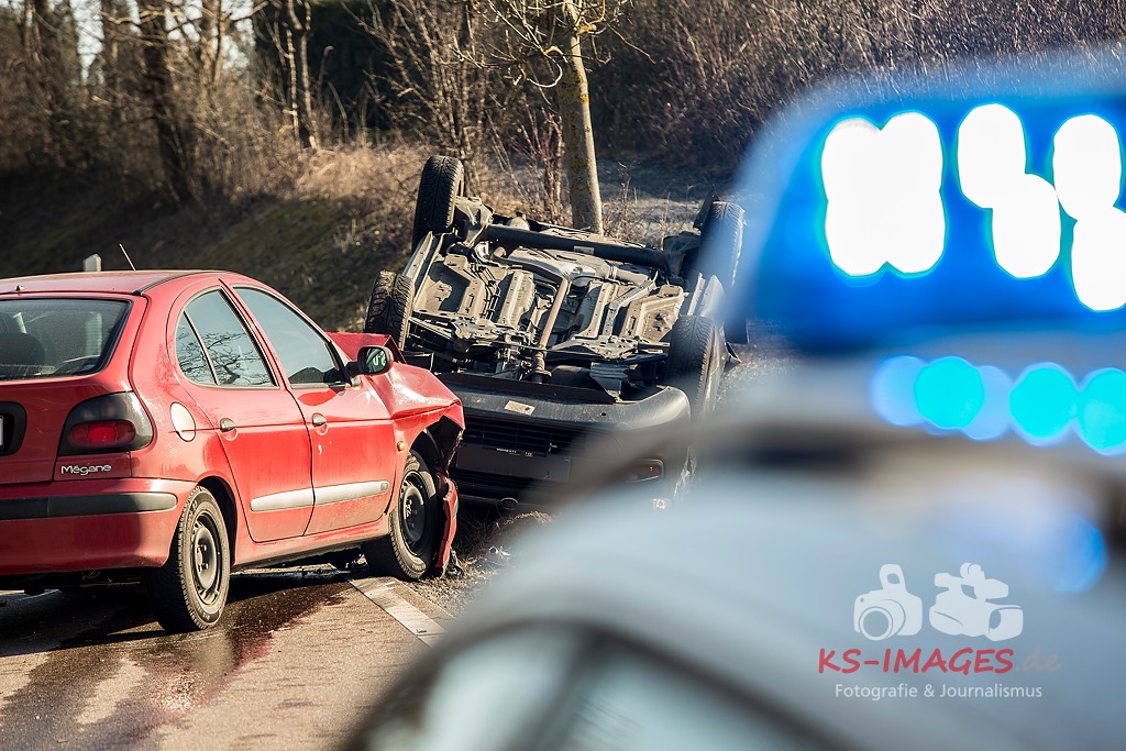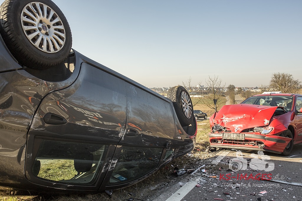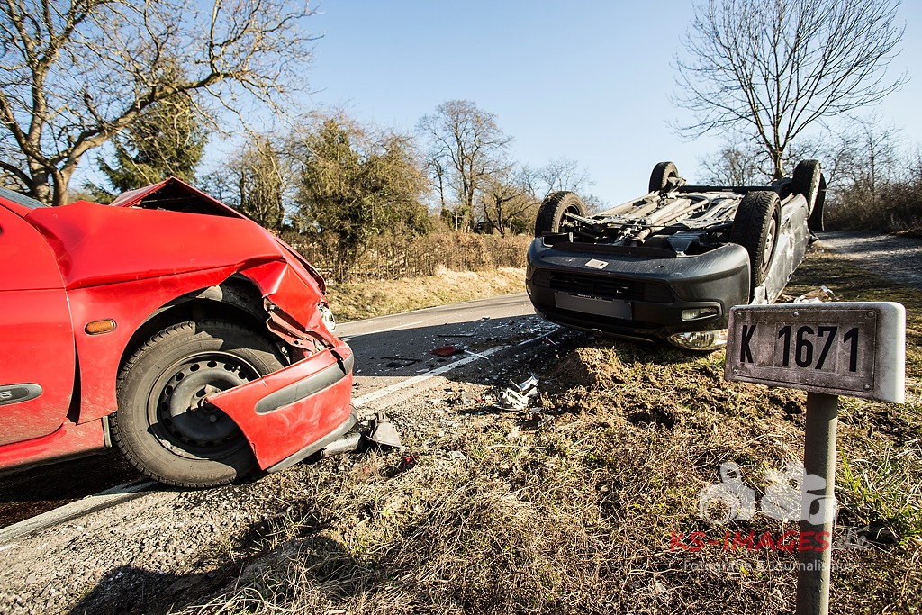 Fotostrecke: Schwerer Unfall mit 4 Fahrzeugen auf der K1671 zwischen Tamm und Markgröningen 09.03.2015