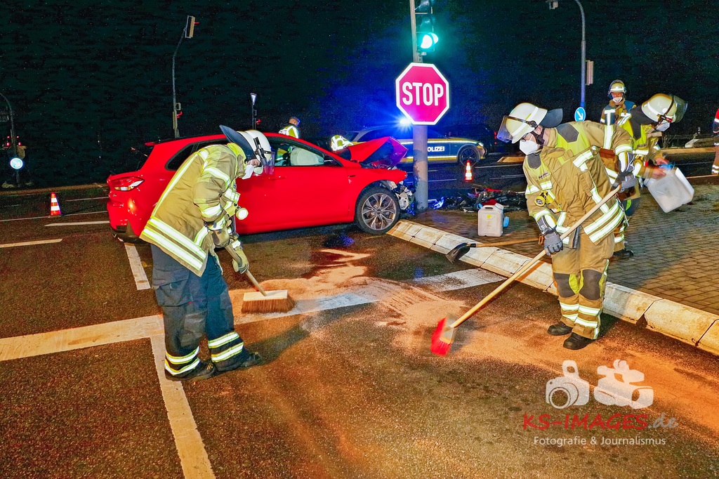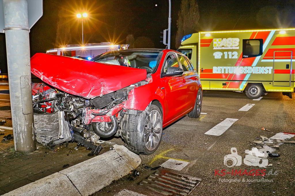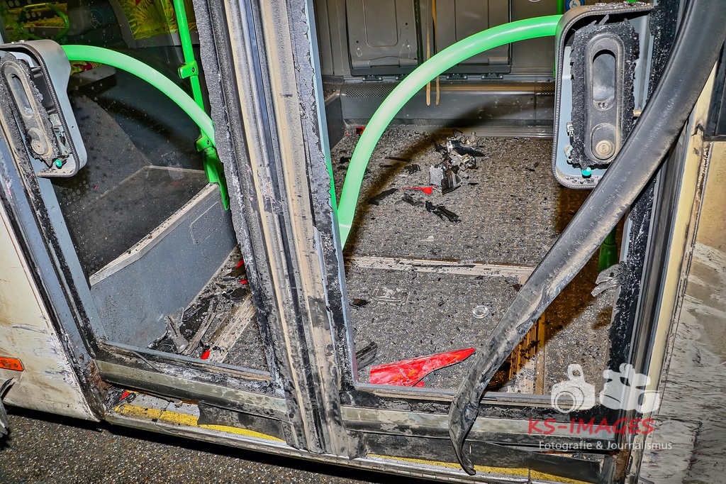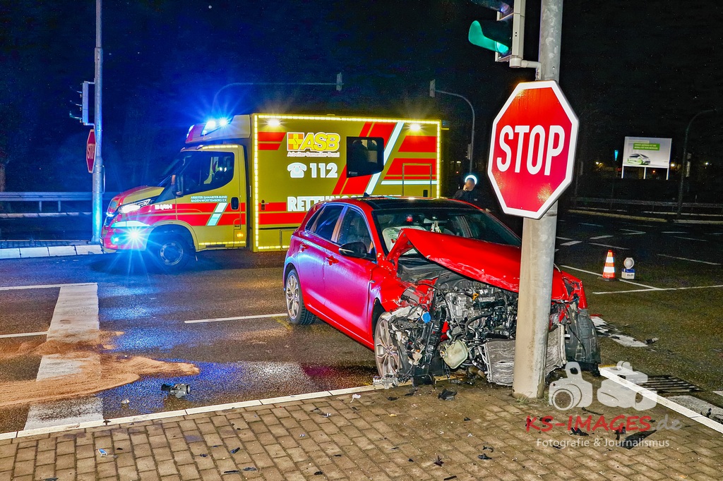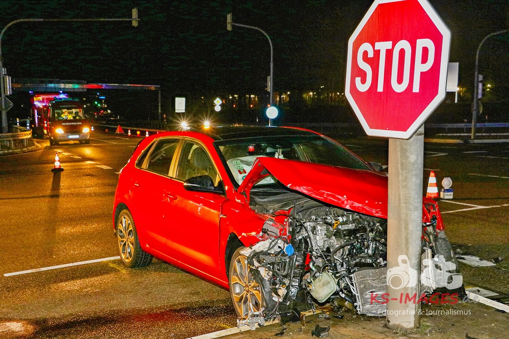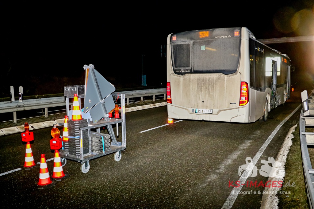 Der 57-jährige Busfahrer sowie die vier Businsassen blieben unverletzt, wohingegen die 27-jährige Unfallverursacherin durch die Kollision leicht verletzt wurde und durch die Rettungskräfte vor Ort in ein umliegendes Krankenhaus verbracht wurde. Die Feuerwehr Schwieberdingen, welche mit drei Fahrzeugen und 16 Einsatzkräften vor Ort war, übernahm zusammen mit der Straßenmeisterei Ludwigsburg die erforderliche Fahrbahnreinigung aufgrund ausgelaufener Betriebsstoffe. Um die Funktionsfähigkeit der Lichtzeichenanlage wiederherzustellen, wurde ein Techniker hinzugerufen, welcher diese wieder bereits während der Unfallaufnahme herstellte. Für die Unfallaufnahme waren zwei Streifenwagenbesatzungen des Polizeireviers Ditzingen eingesetzt. Fotos: Andreas Rometsch Text: Polizeipräsidium Ludwigsburg.