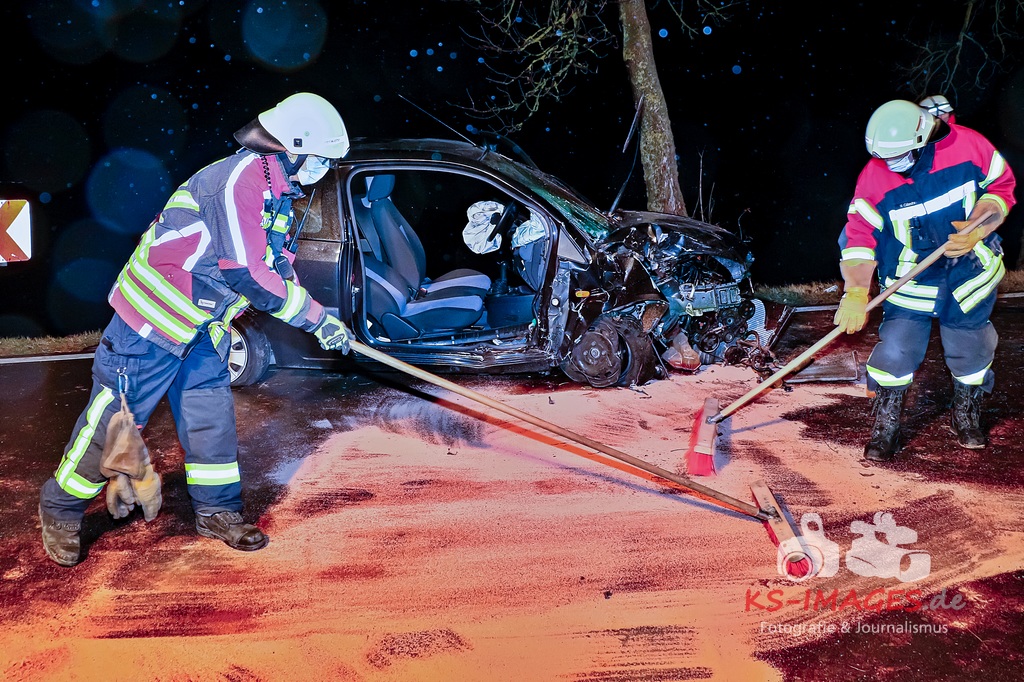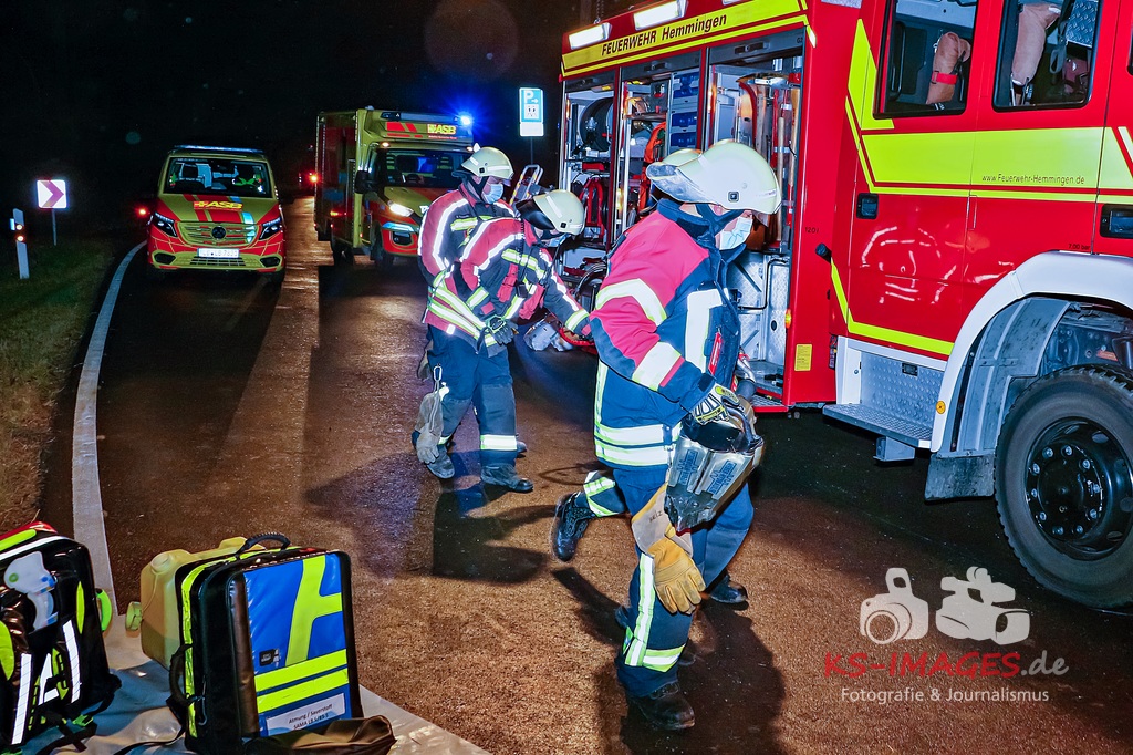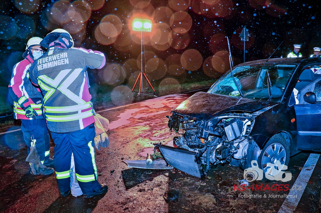 In der Folge stieß sie zunächst gegen ein Verkehrszeichen und prallte anschließend gegen einen Baum. Dabei zog sie sich schwere Verletzungen zu und wurde in ihrem Auto eingeklemmt. Die Feuerwehr Hemmingen war mit drei Fahrzeugen und elf Einsatzkräften an der Unfallstelle und befreite die 76-Jährige. Durch Rettungskräfte wurde sie in ein Krankenhaus gebracht. An dem Opel entstand ein wirtschaftlicher Totalschaden in Höhe von etwa 5.000 Euro. Er war nicht mehr fahrbereit und wurde abgeschleppt. Polizeibeamte stellten bei der 76-Jährigen Anzeichen von Alkoholeinwirkung fest und veranlassten bei ihr die Entnahme einer Blutprobe. (Fotos: Andreas Rometsch)