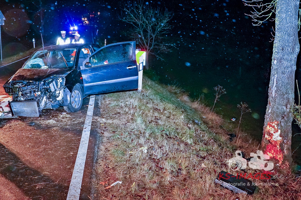 HEMMINGEN: Eine 76-jährige Autofahrerin war am Sonntag gegen 18:10 Uhr auf der die L1136 aus Hemmingen kommend in Fahrtrichtung Hochdorf unterwegs. Kurz nach einem Waldgebiet kam sie auf der regennasse und mit Laub bedeckten Fahrbahn in einer Linkskurve nach rechts von der Fahrbahn ab.